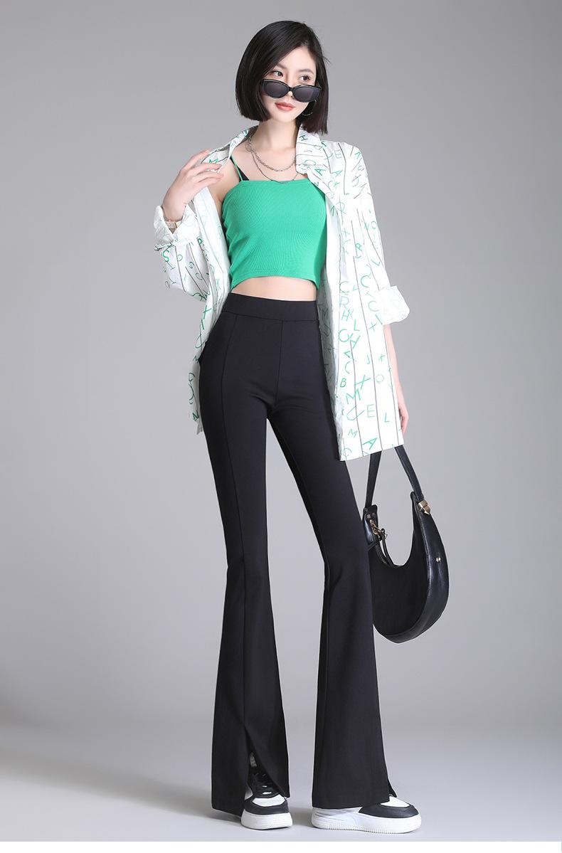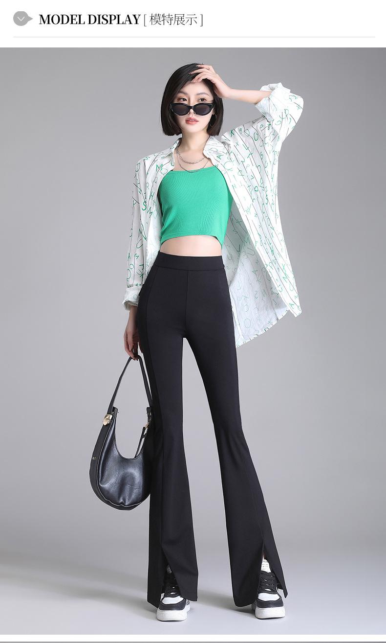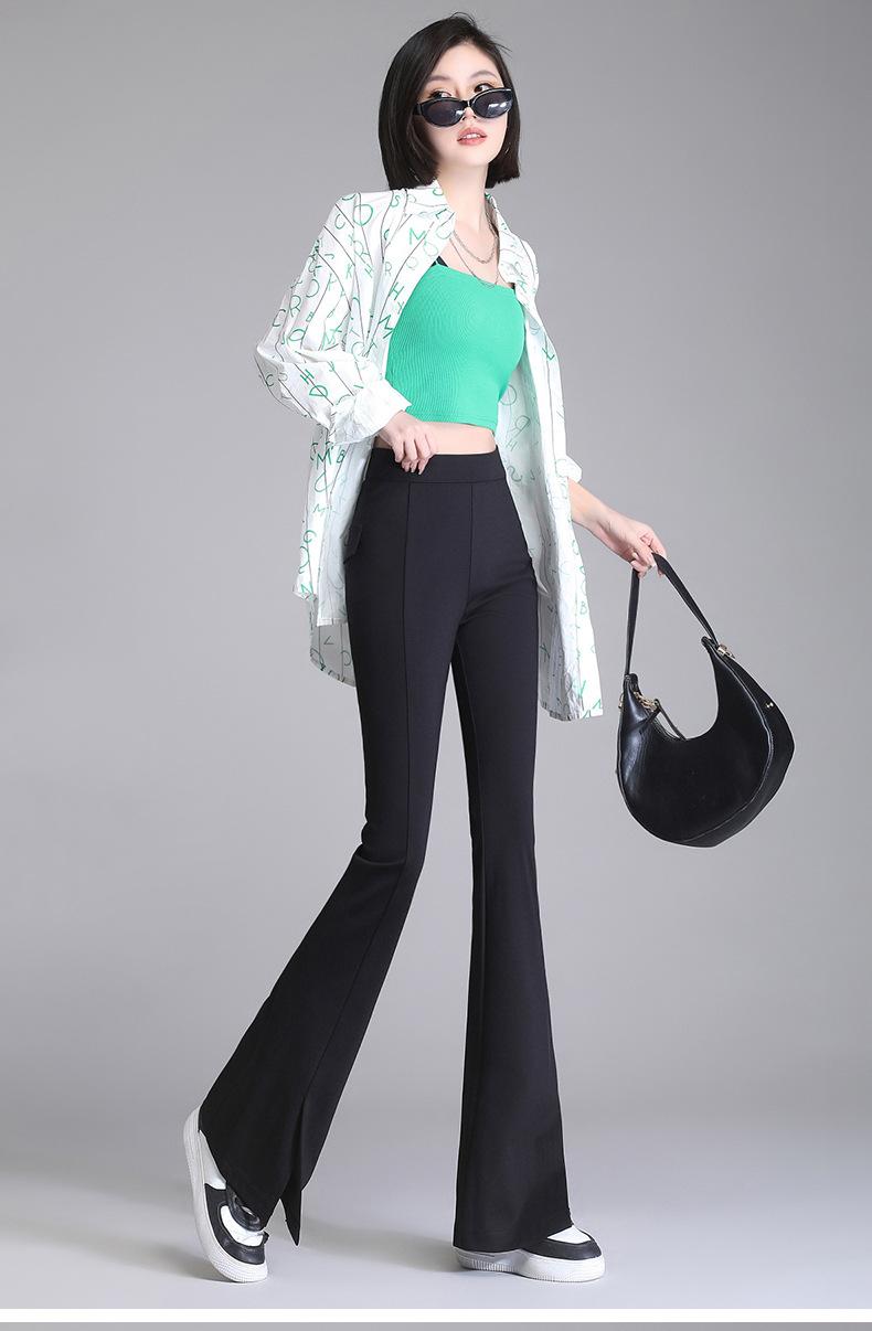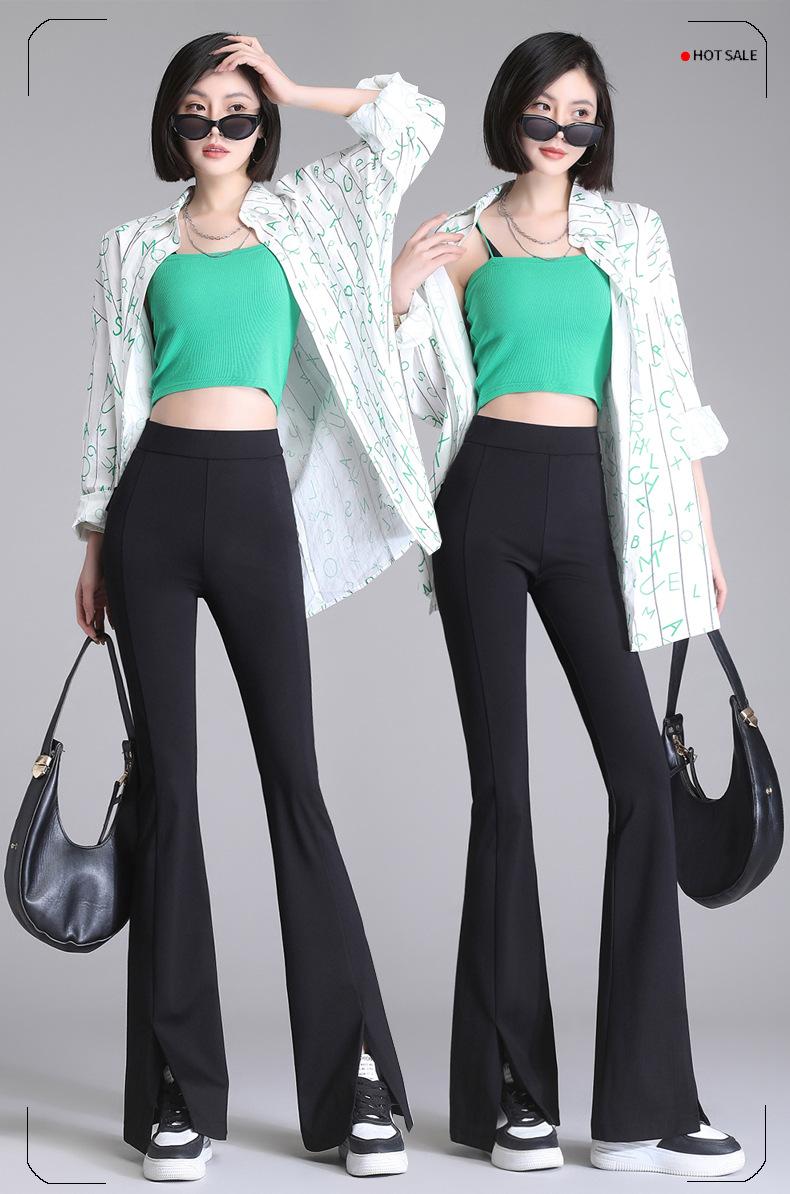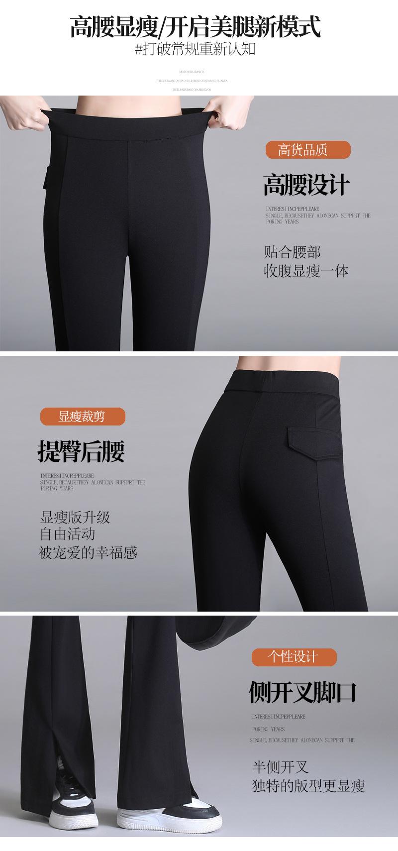 Pantalones acampanados de talle alto europeos y americanos de talla grande para adelgazar piernas 2023 otoño e invierno elásticos negros con abertura pantalones de moda
