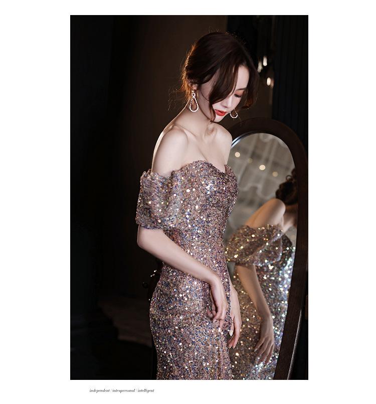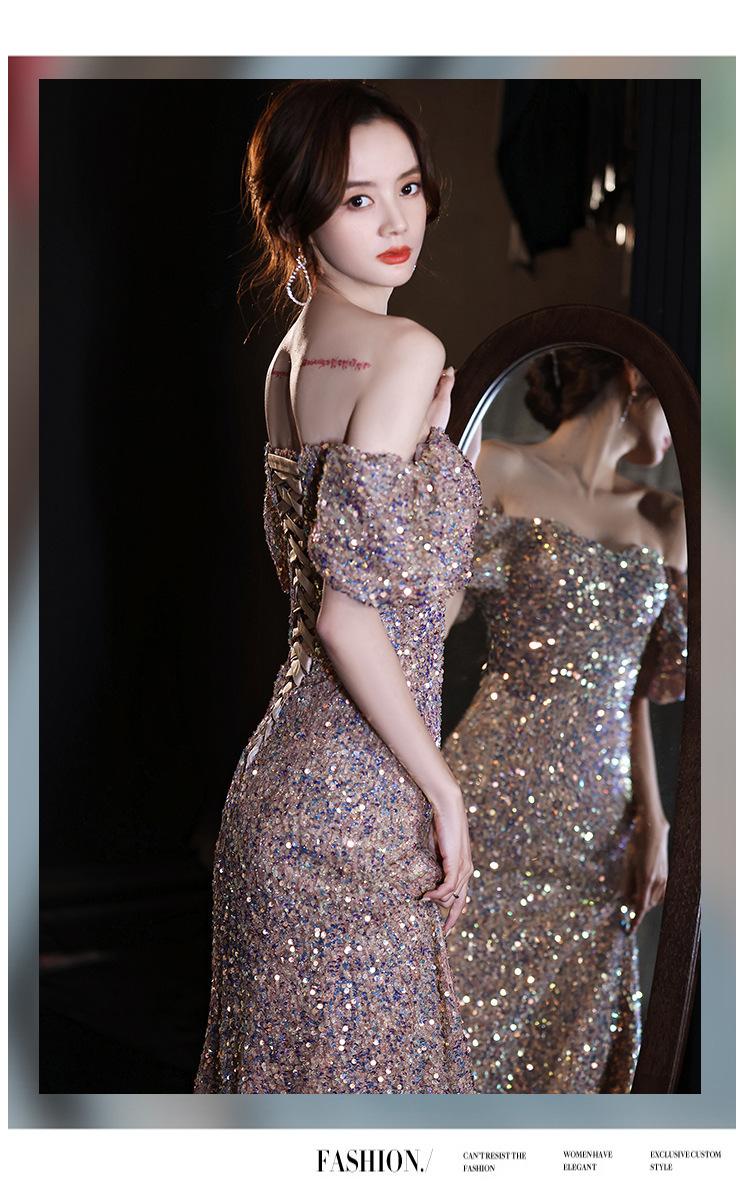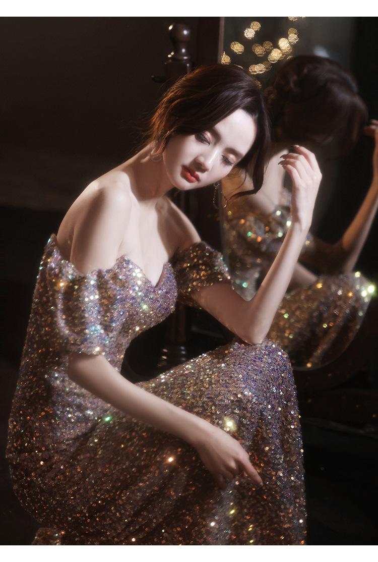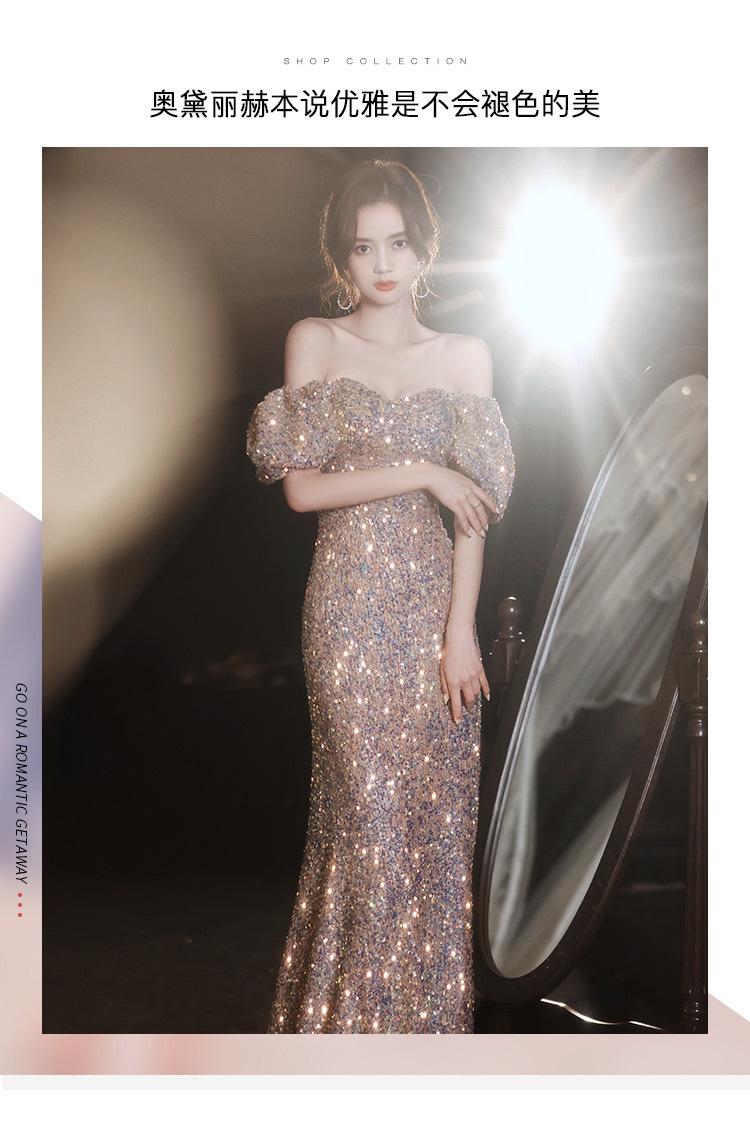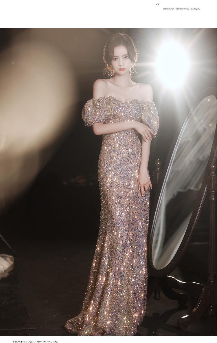 Vestido de Noche para Reunión Anual para Mujer 2025 Nuevo Elegante Vestido de Hada de un Hombro Falda Vestido de Banquete de Anfitrión Verano
