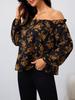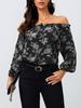 Camisa de mujer con cuello en el hombro, primavera y verano 2025, estilo europeo y americano transfronterizo, elegante top de manga larga con estampado floral para mujer