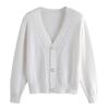Suéter de punto trenzado de botonadura sencilla para mujer