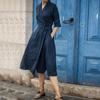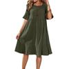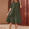 Vestido midi holgado informal de color liso con cuello redondo, plisado, manga corta y acampanado de algodón y lino para mujer, comercio exterior transfronterizo