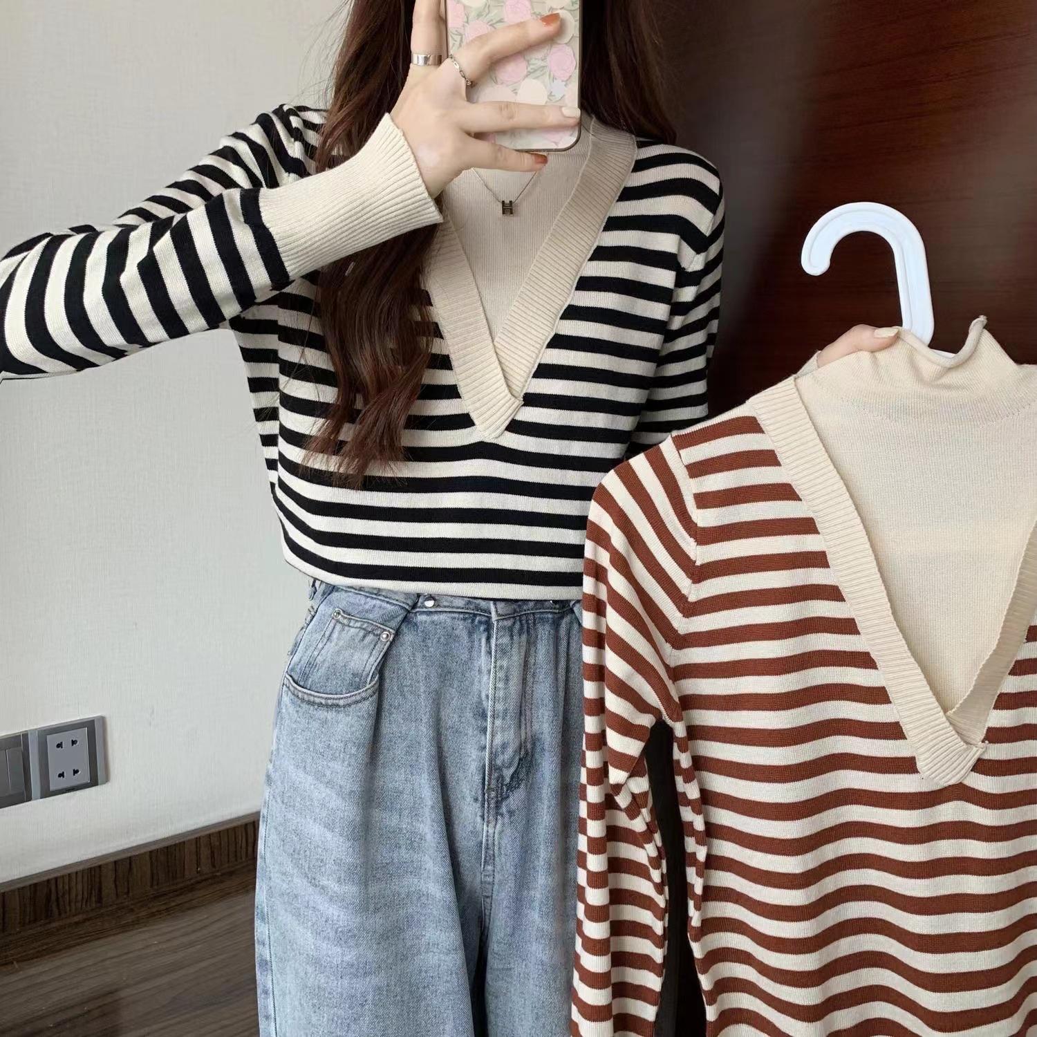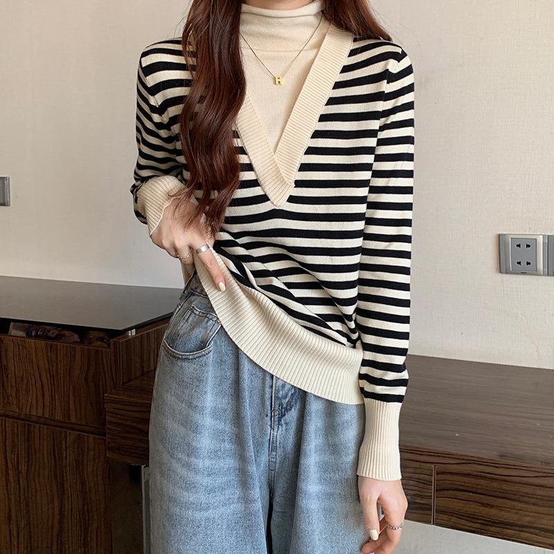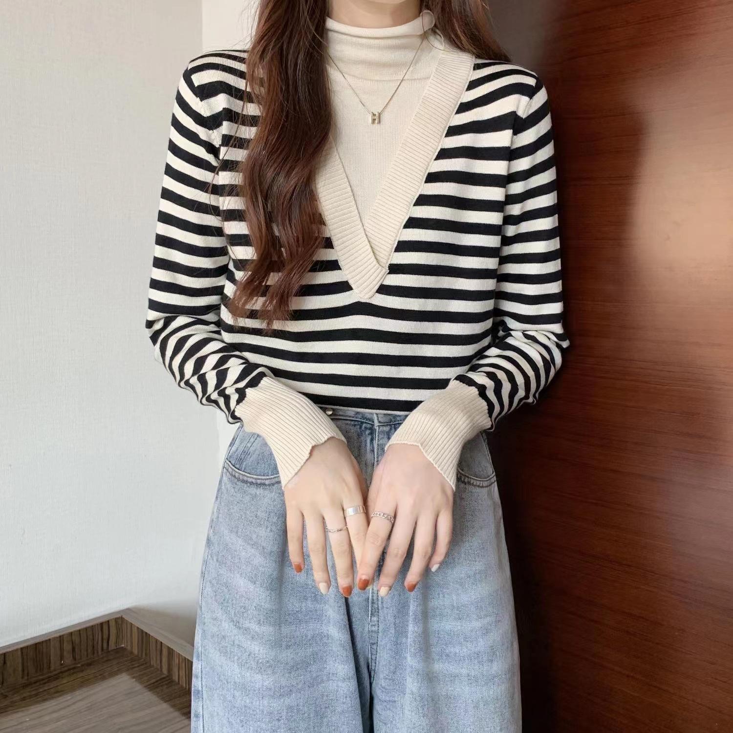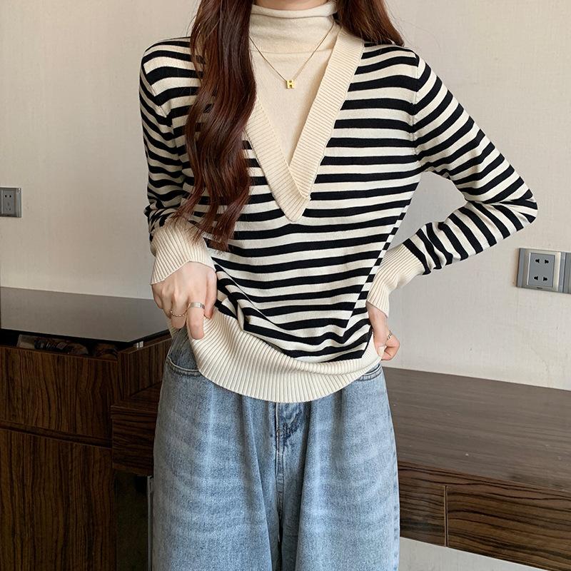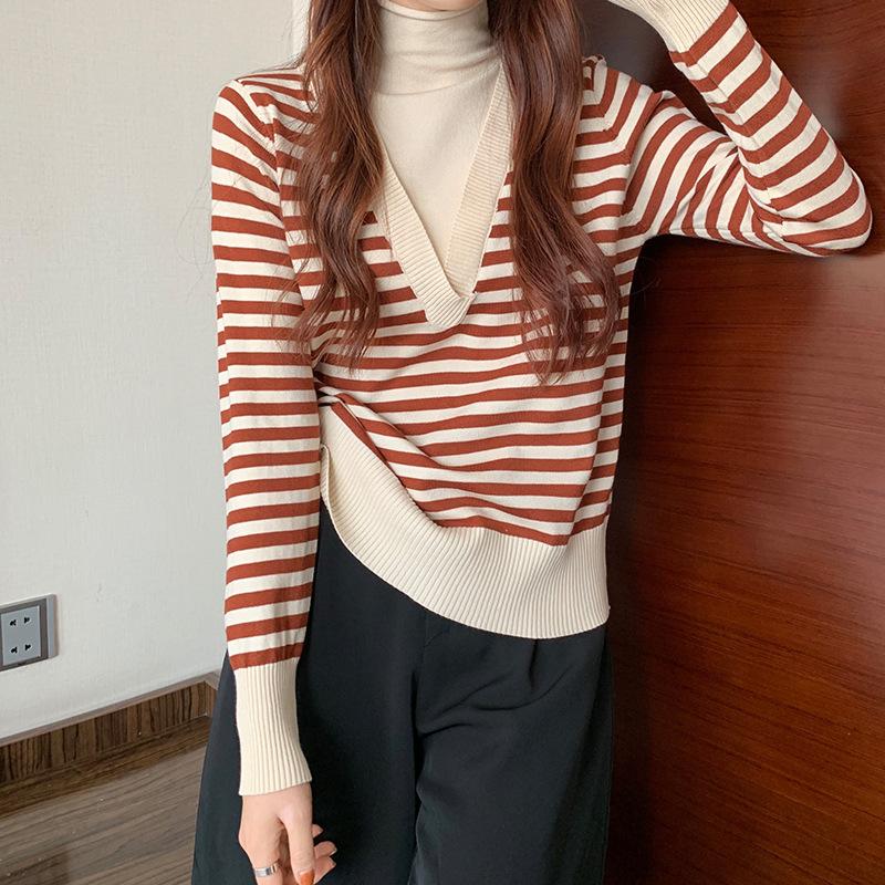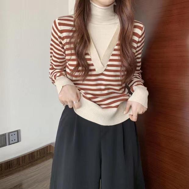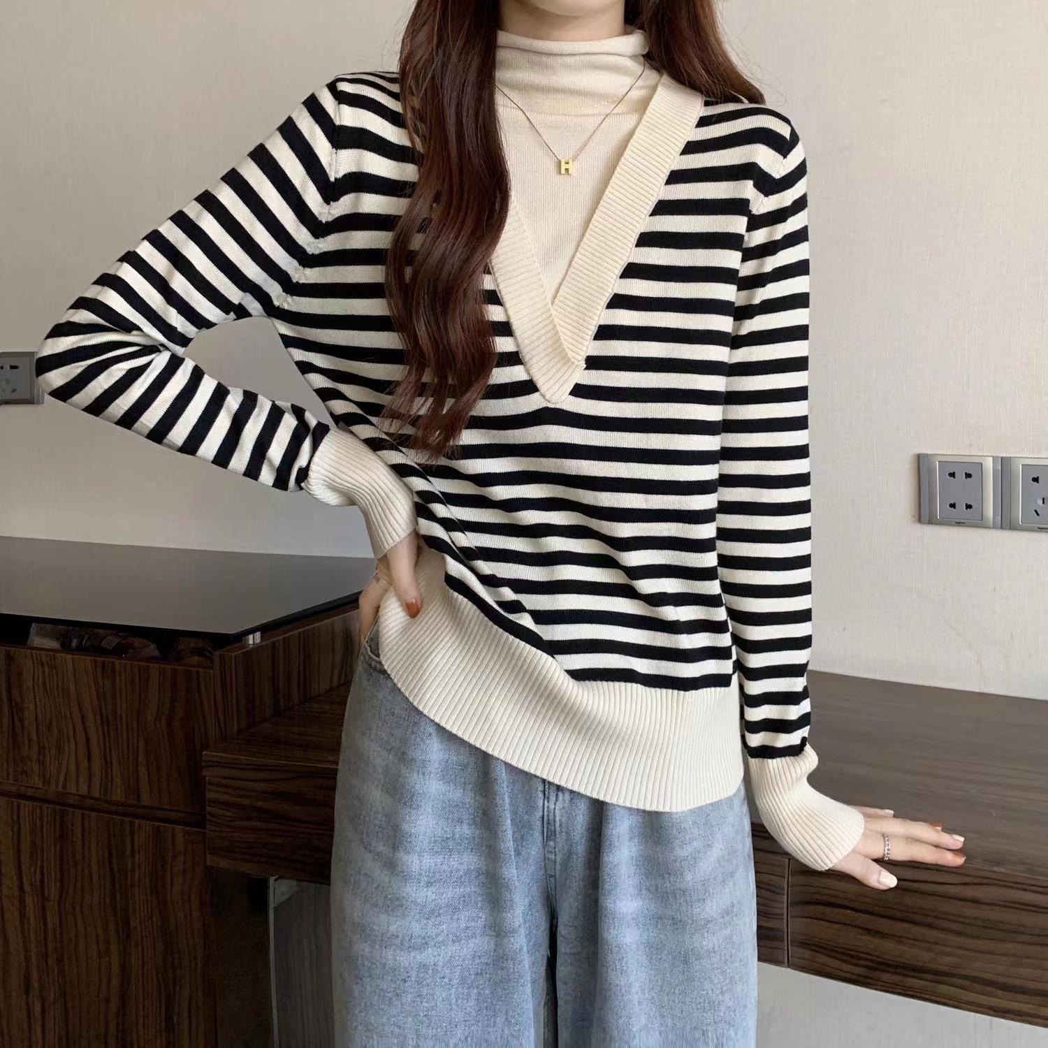 Suéter de Cuello Alto Falso de Dos Piezas para Mujer Perezosa Nuevo 2024 Ropa de Otoño e Invierno para Mujer Suéter Popular de Moda Estilo Occidental Invierno