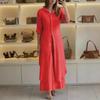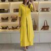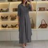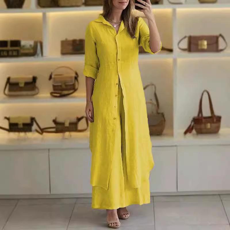 Europa transfronteriza y Estados Unidos 2025 primavera y verano nuevo_traje casual de lino_damas elegantes pantalones de pierna ancha de manga larga de dos piezas para mujer