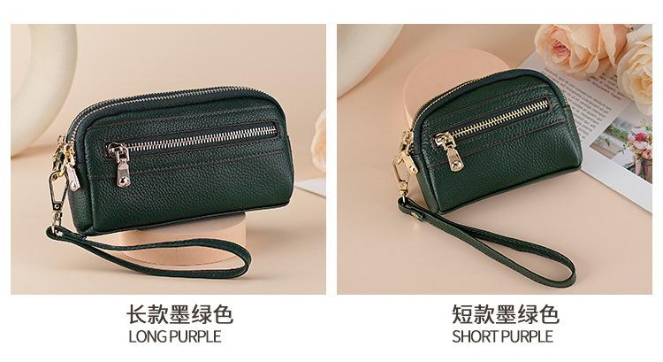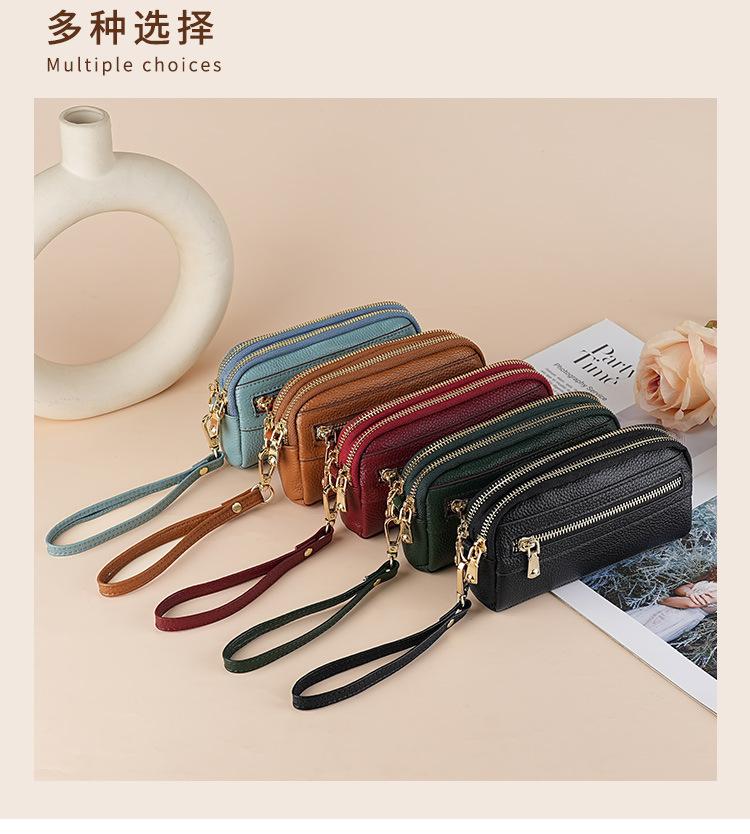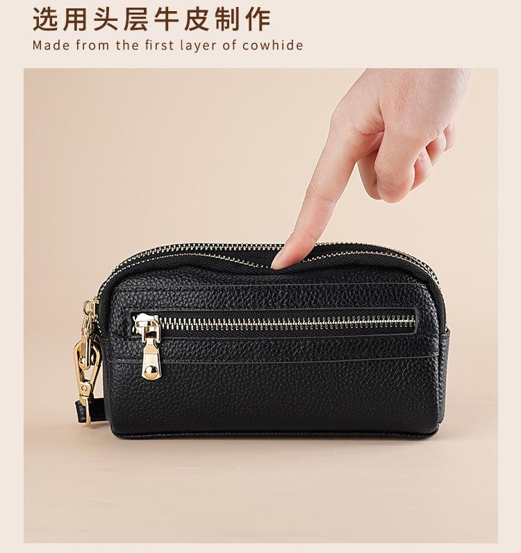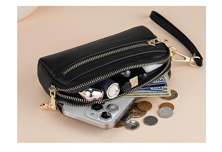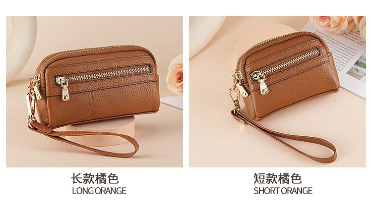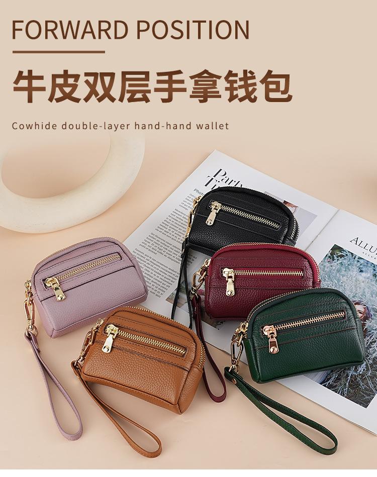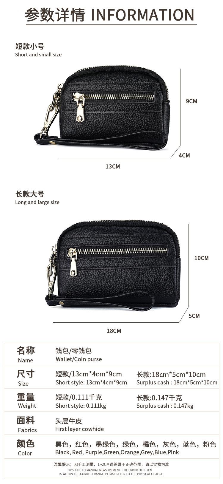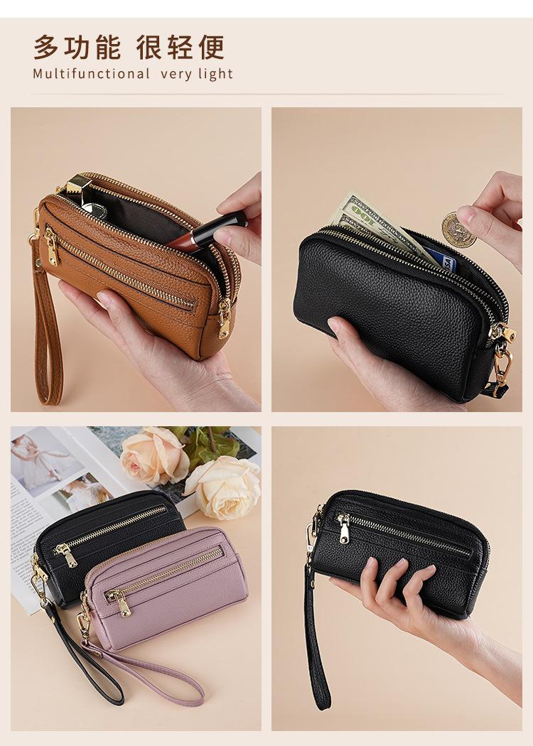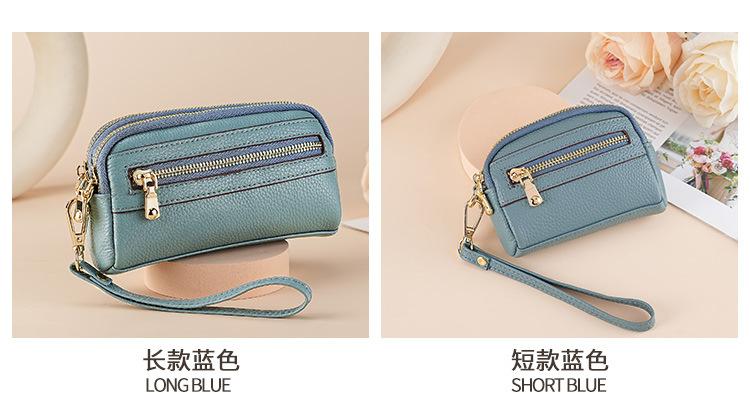 Monedero de piel auténtica con cremallera de doble capa y gran capacidad para mujer, sencillo, de piel de vaca, con cremallera