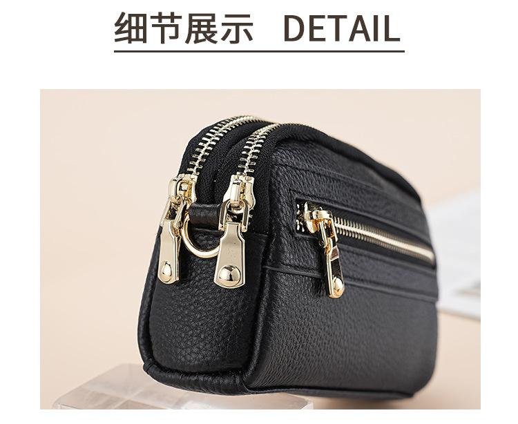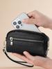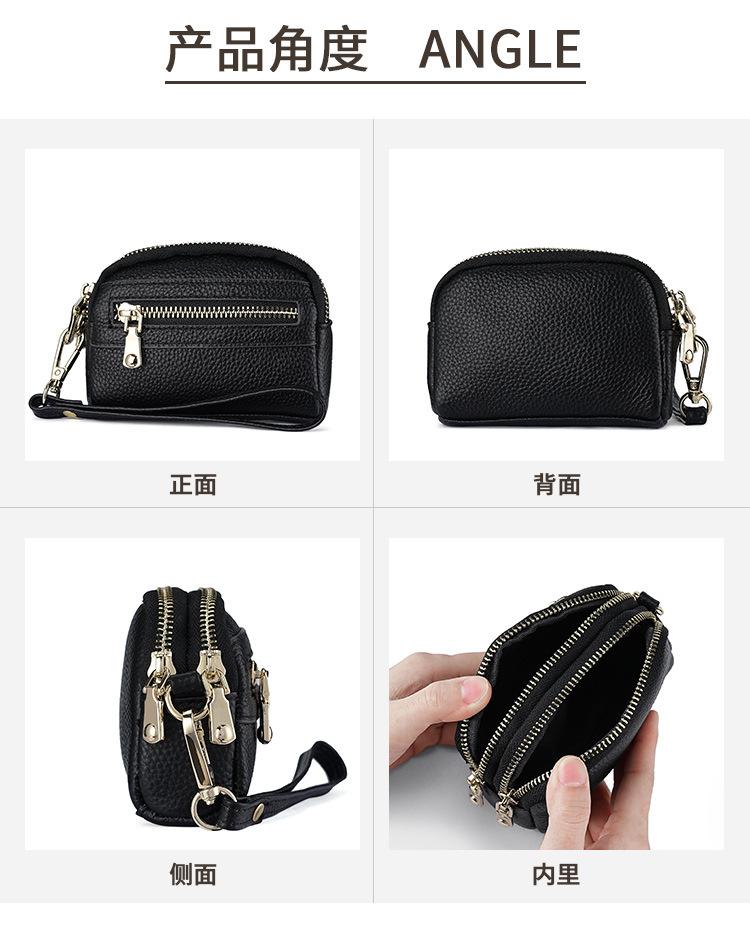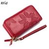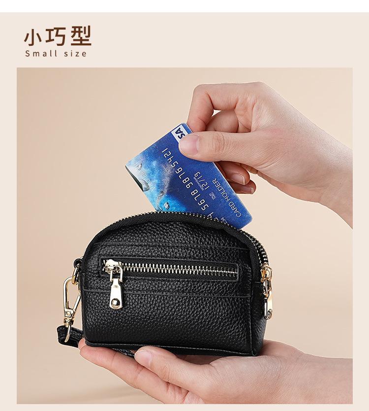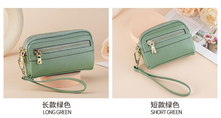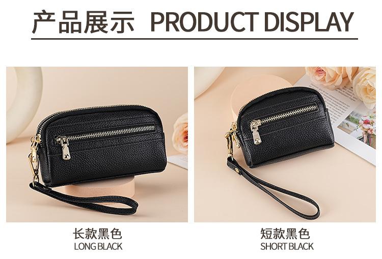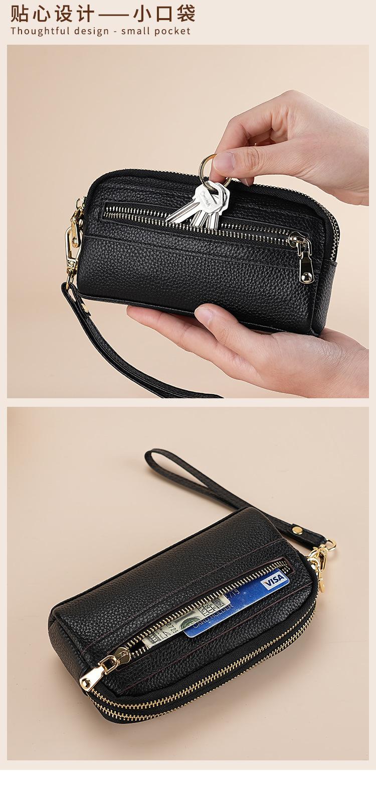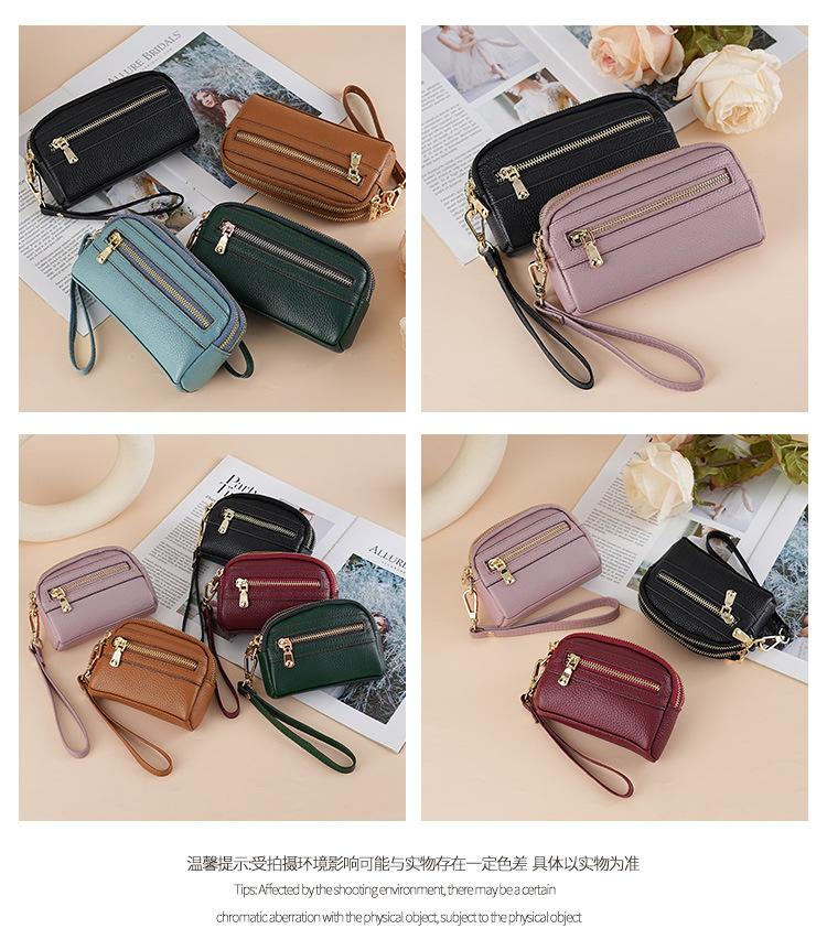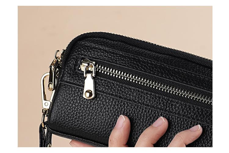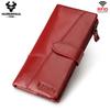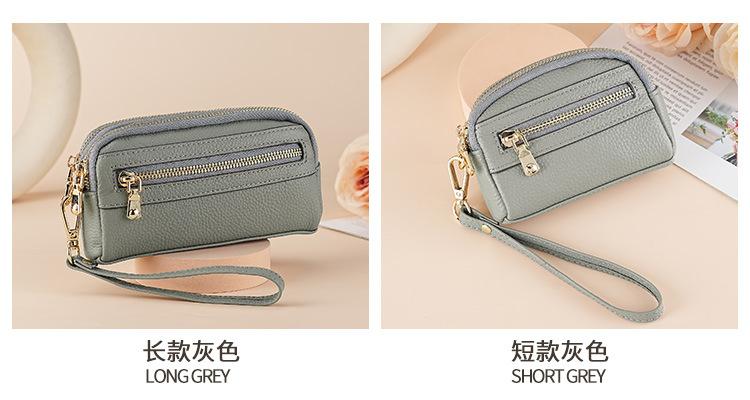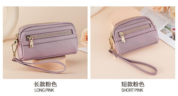 Monedero de piel auténtica con cremallera de doble capa y gran capacidad para mujer, sencillo, de piel de vaca, con cremallera