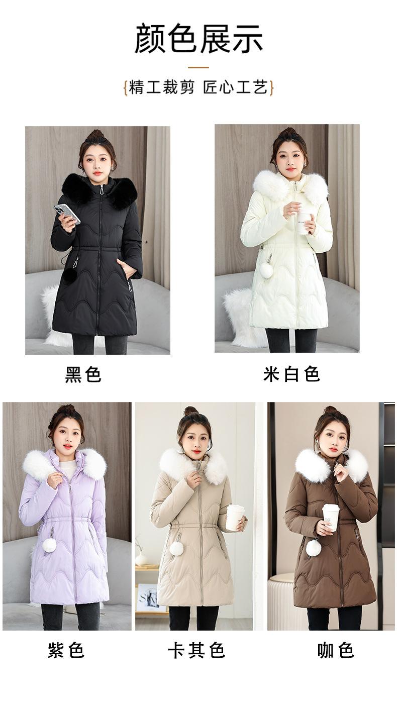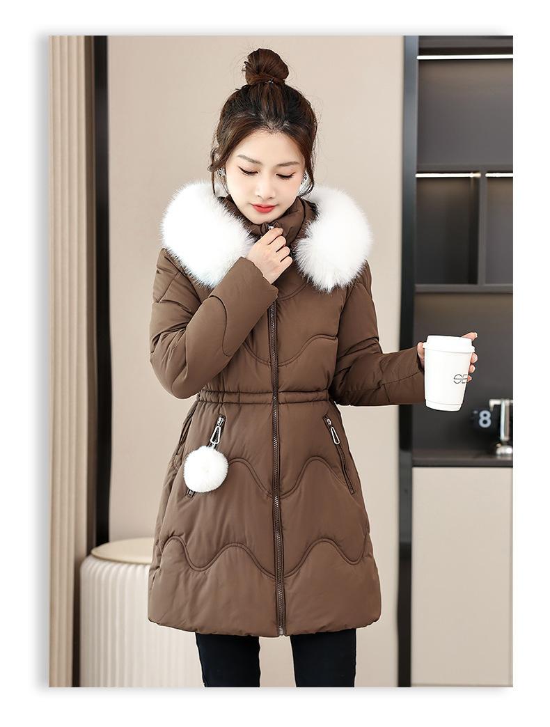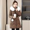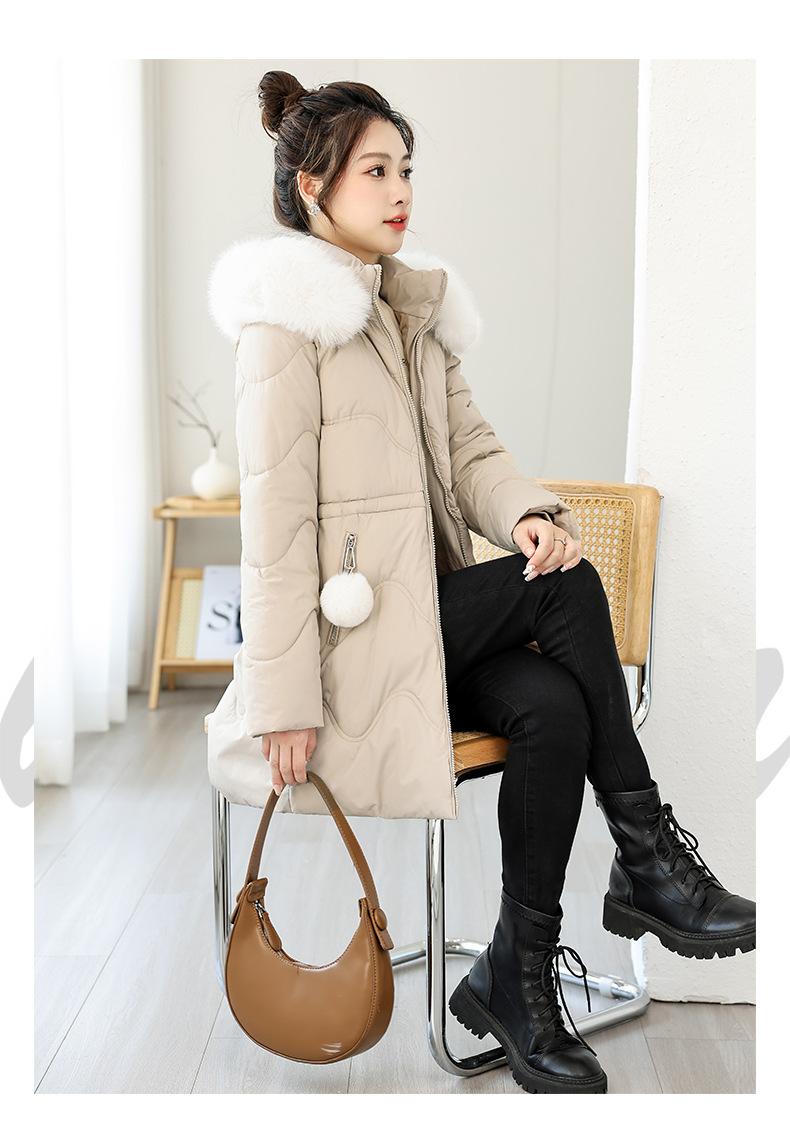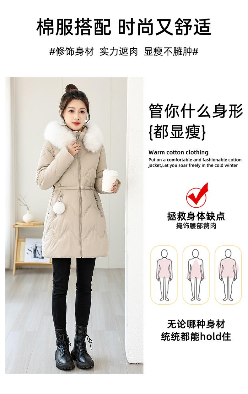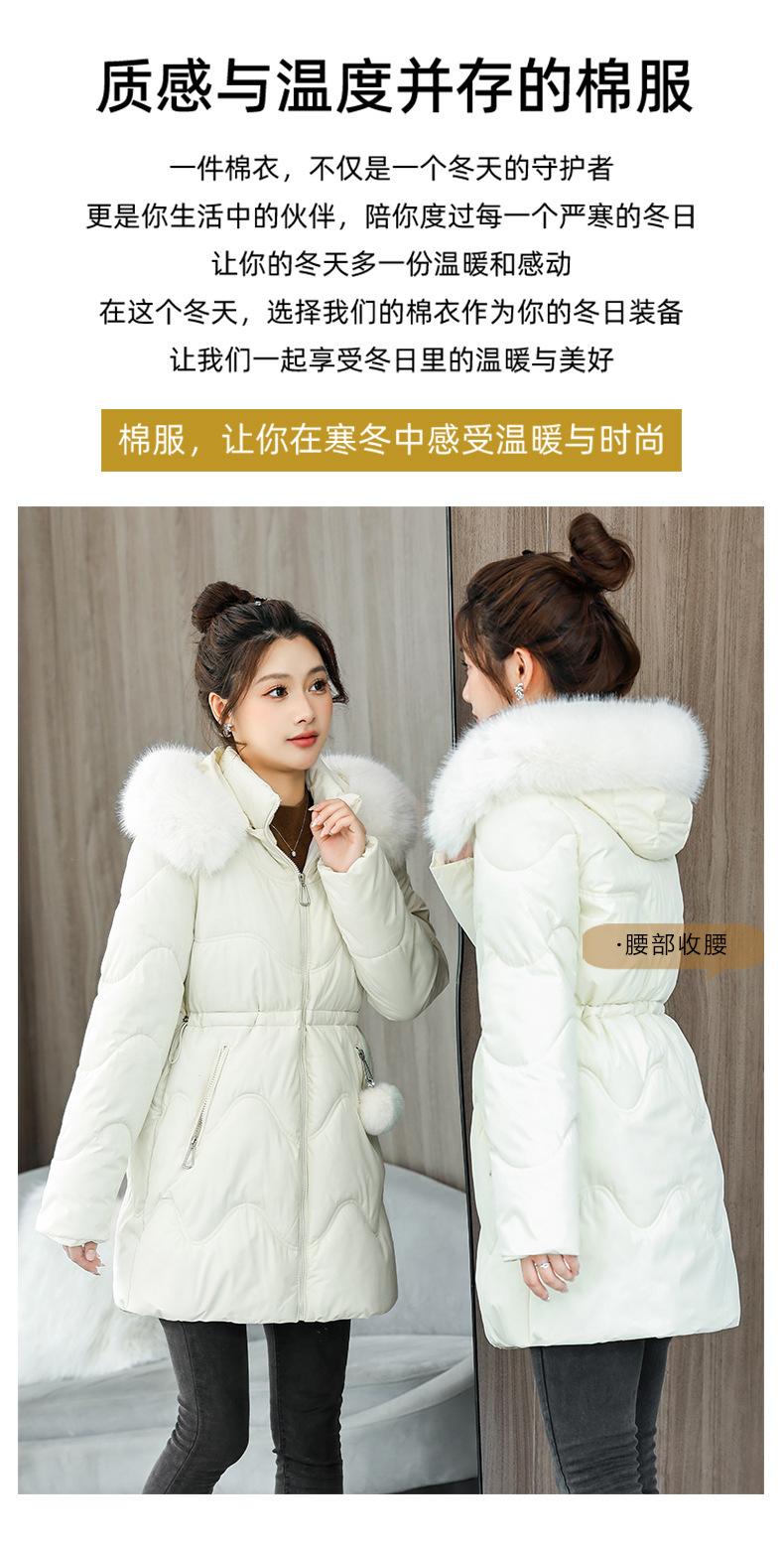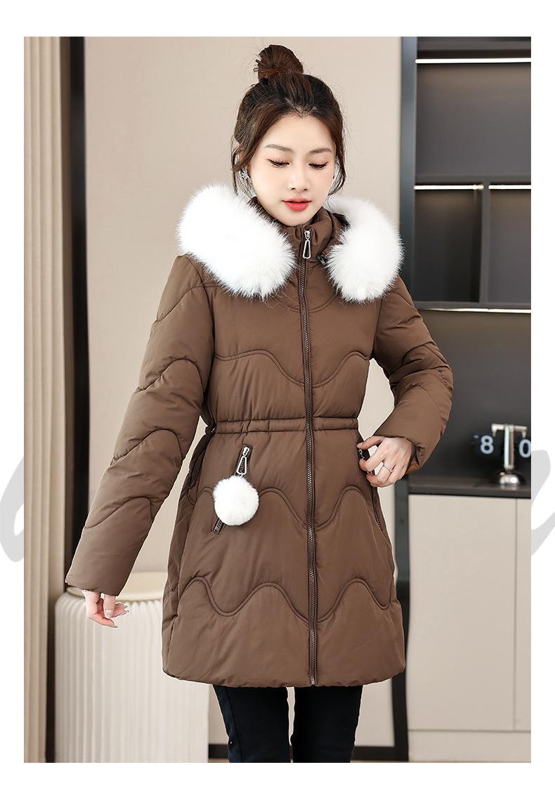2024 Nuevo Abrigo Acolchado de Algodón de Cintura Transfronterizo para Mujer de Largo Medio Ajustado Otoño e Invierno Abrigo Acolchado de Algodón con Capucha y Cuello de Piel Chaqueta a Prueba de Frío