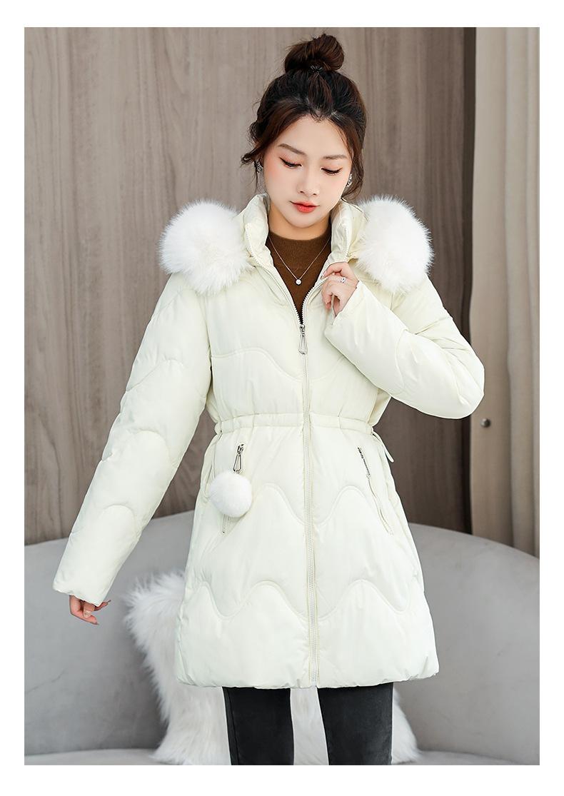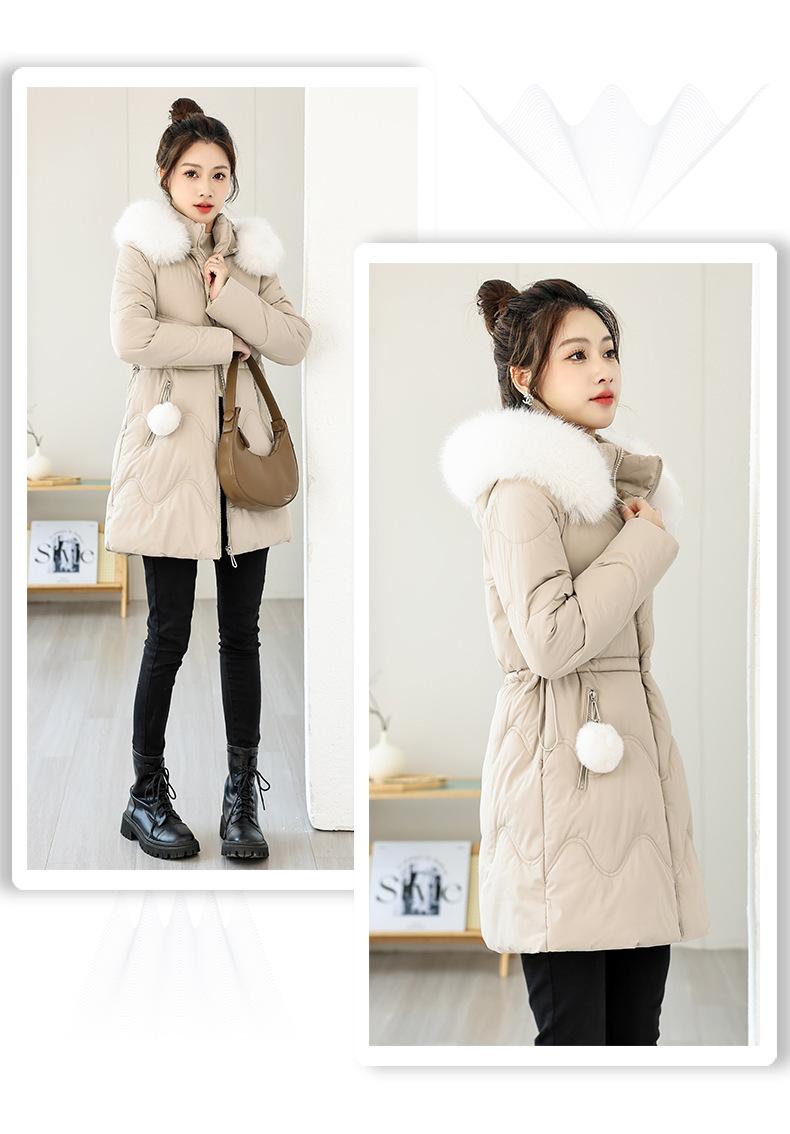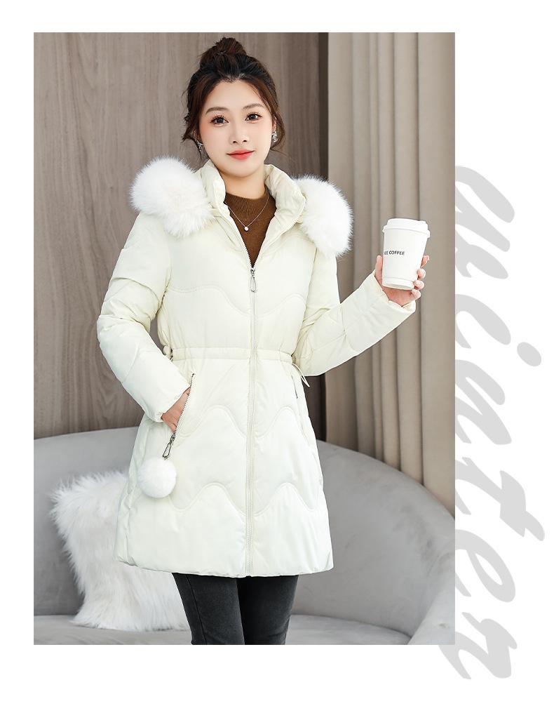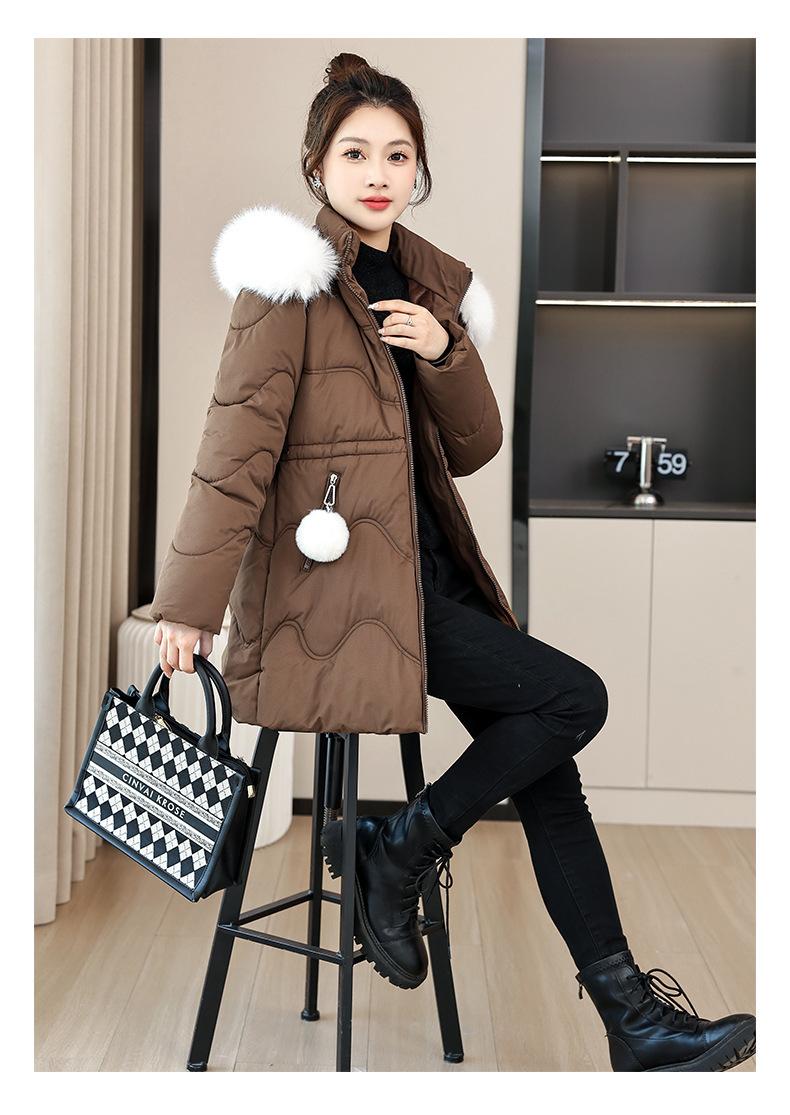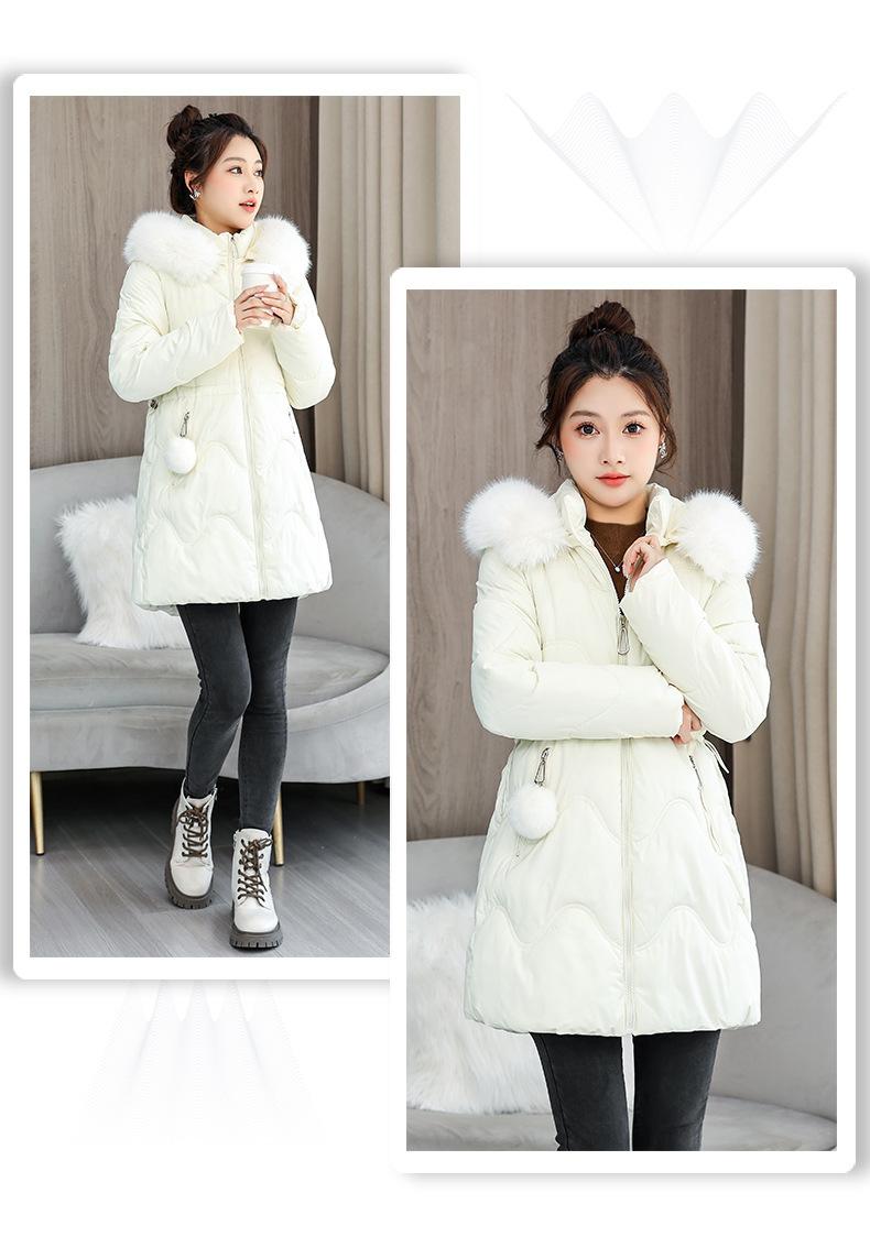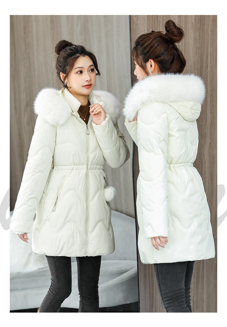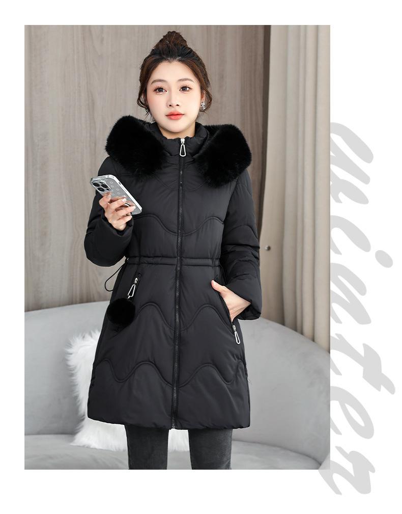 2024 Nuevo Abrigo Acolchado de Algodón de Cintura Transfronterizo para Mujer de Largo Medio Ajustado Otoño e Invierno Abrigo Acolchado de Algodón con Capucha y Cuello de Piel Chaqueta a Prueba de Frío