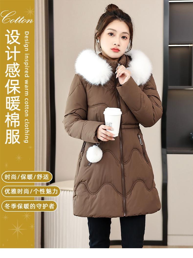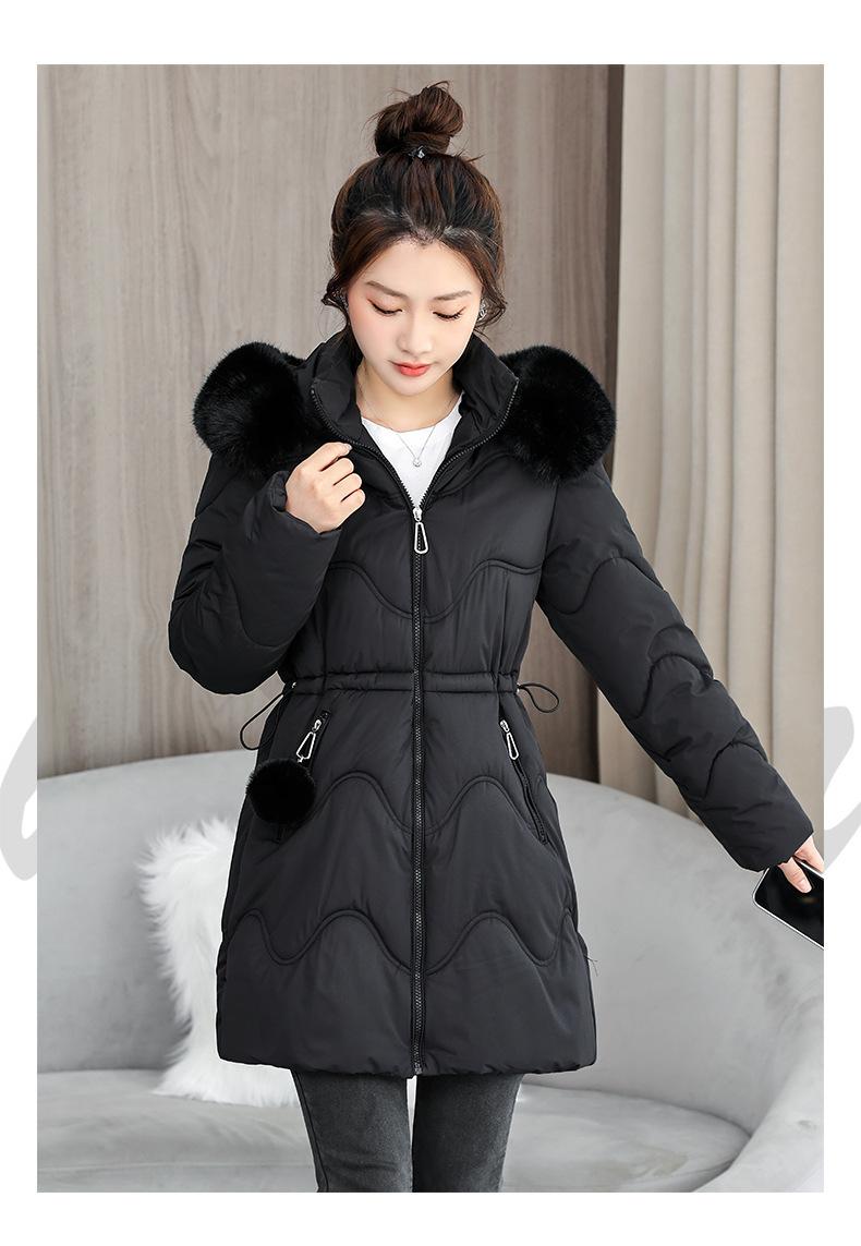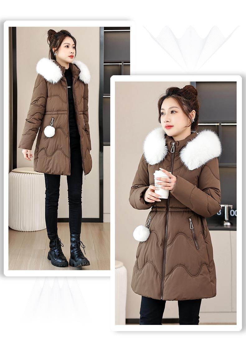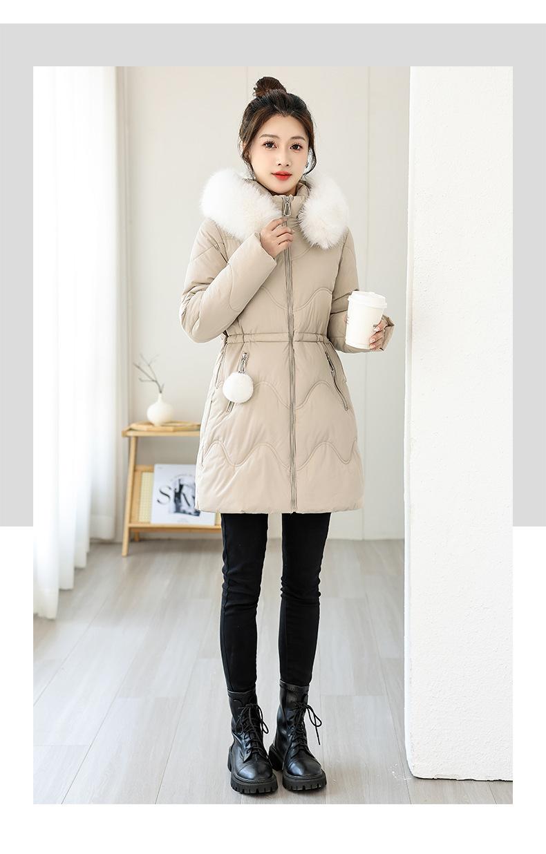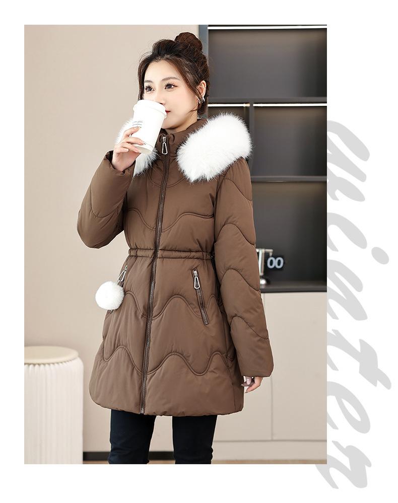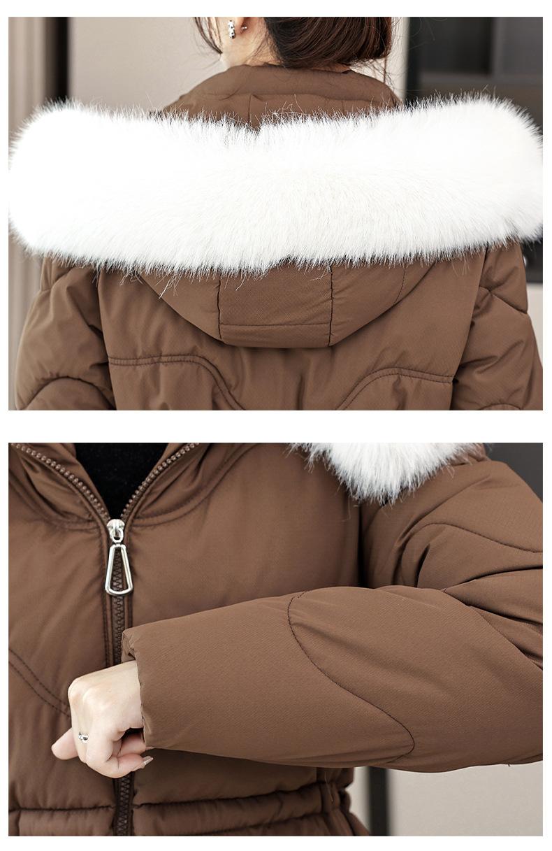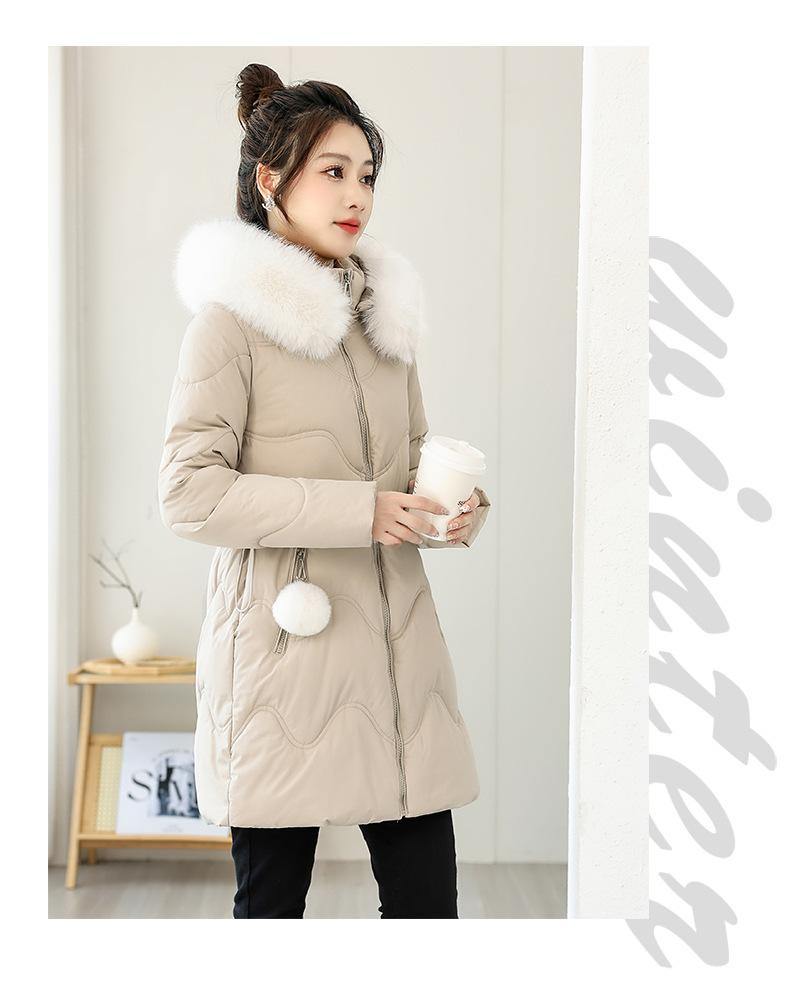 2024 Nuevo Abrigo Acolchado de Algodón de Cintura Transfronterizo para Mujer de Largo Medio Ajustado Otoño e Invierno Abrigo Acolchado de Algodón con Capucha y Cuello de Piel Chaqueta a Prueba de Frío