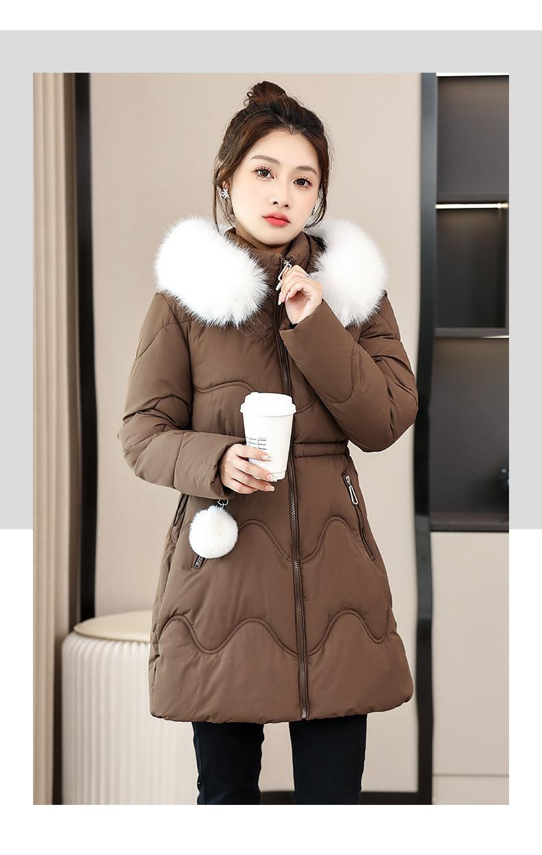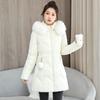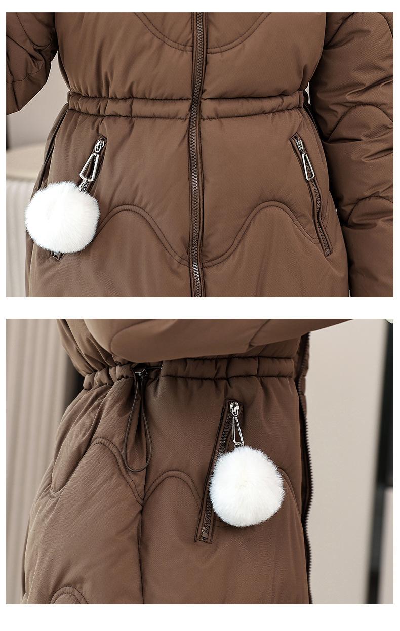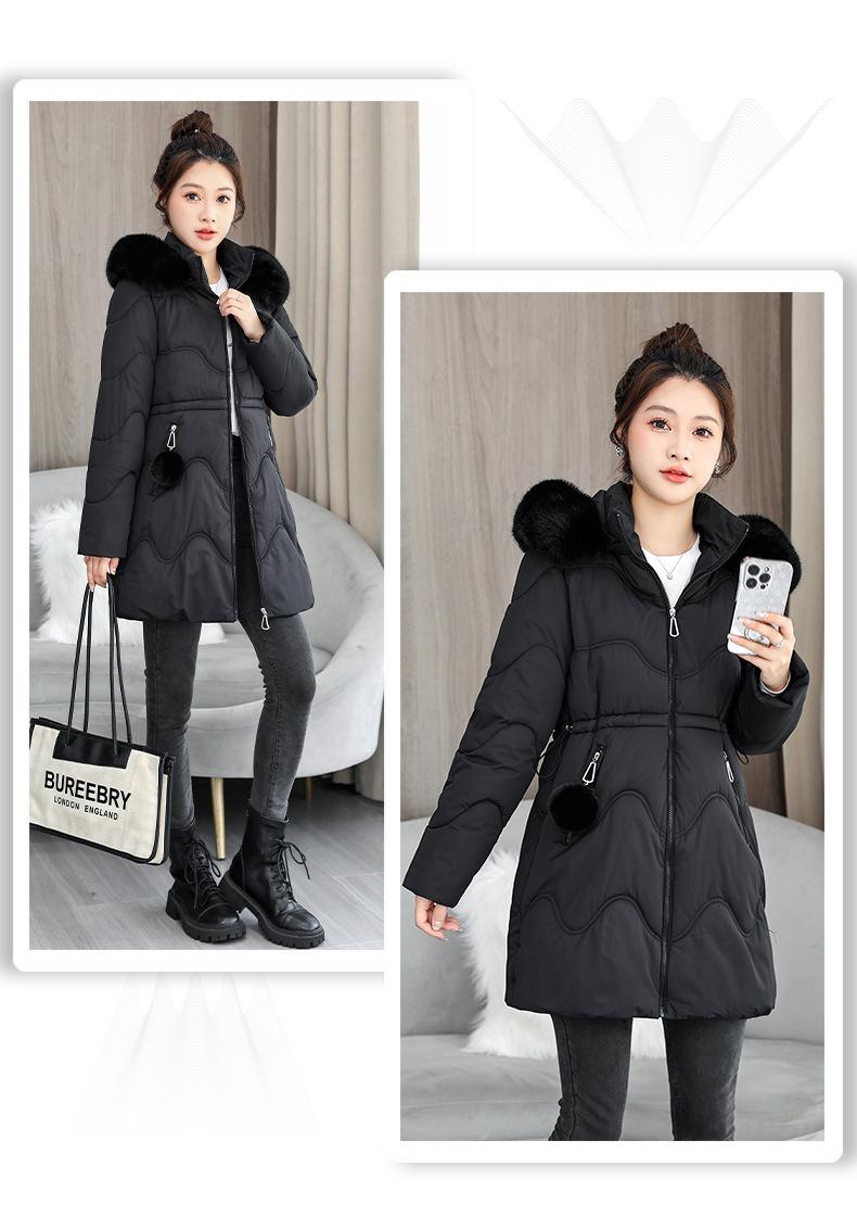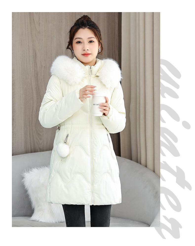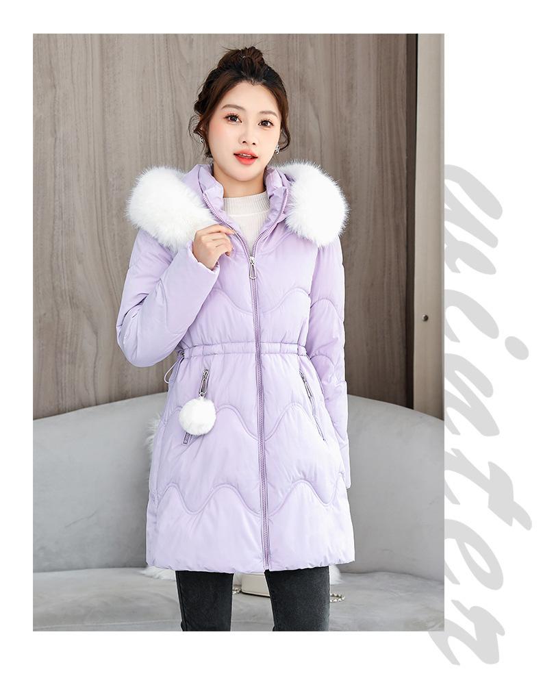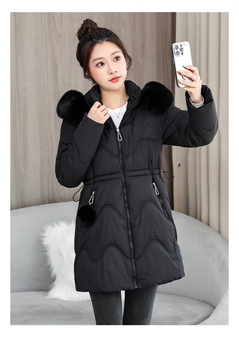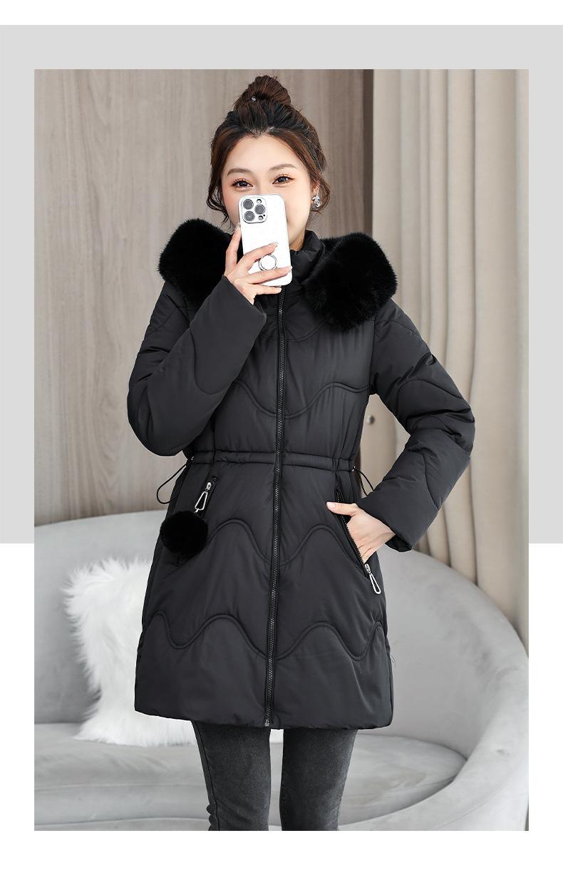 2024 Nuevo Abrigo Acolchado de Algodón de Cintura Transfronterizo para Mujer de Largo Medio Ajustado Otoño e Invierno Abrigo Acolchado de Algodón con Capucha y Cuello de Piel Chaqueta a Prueba de Frío