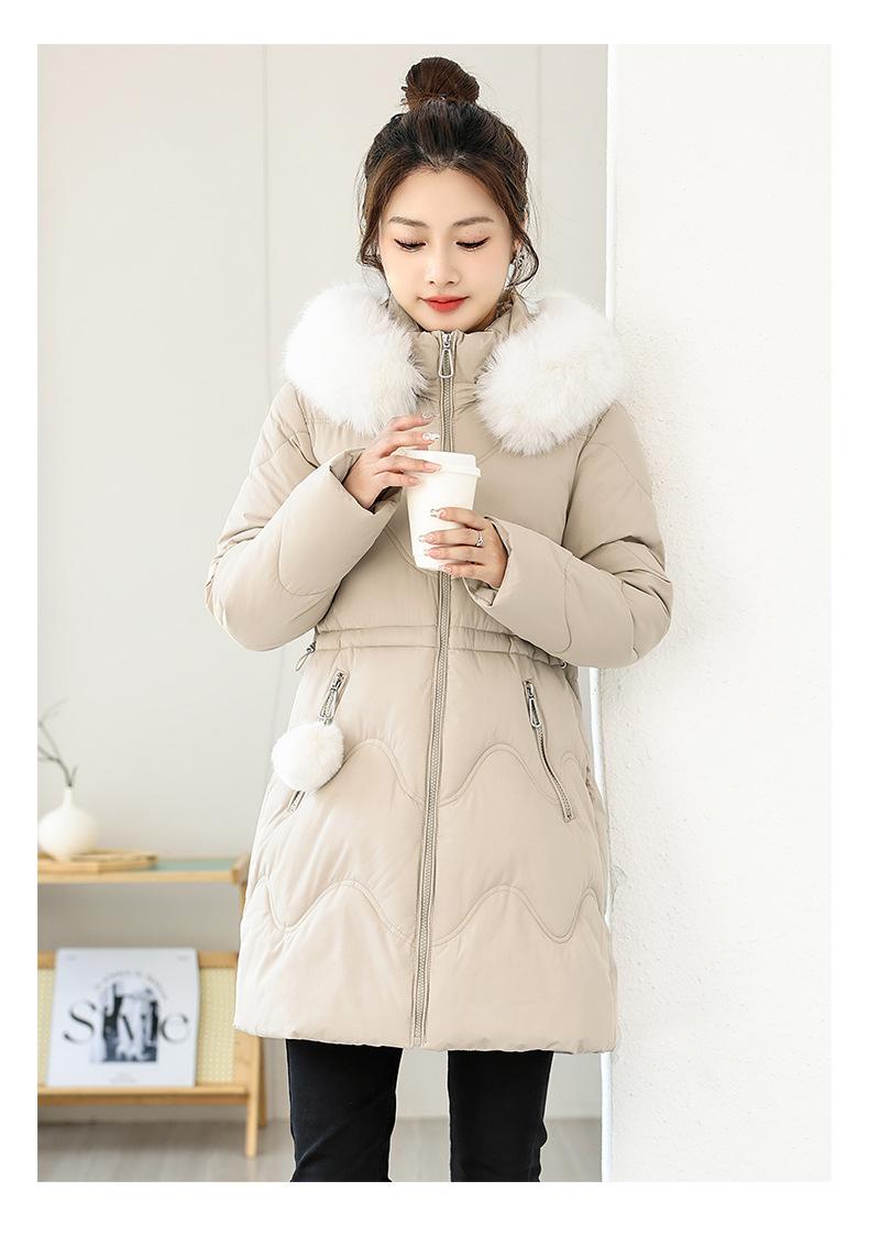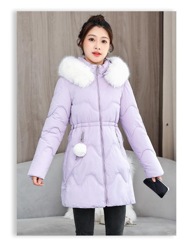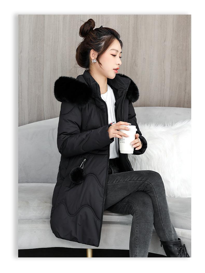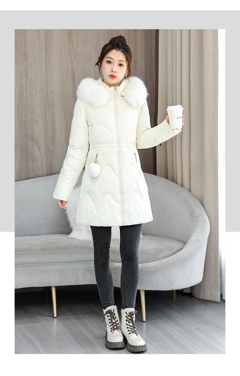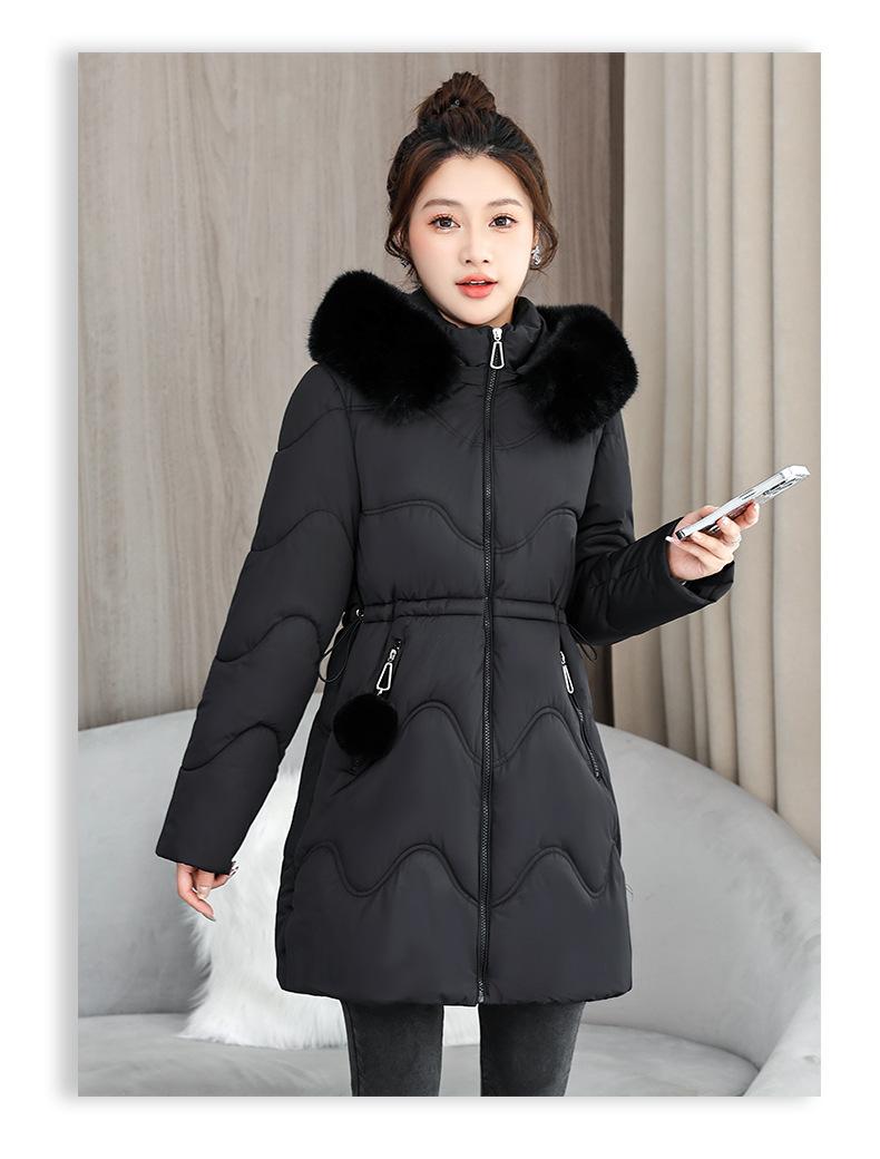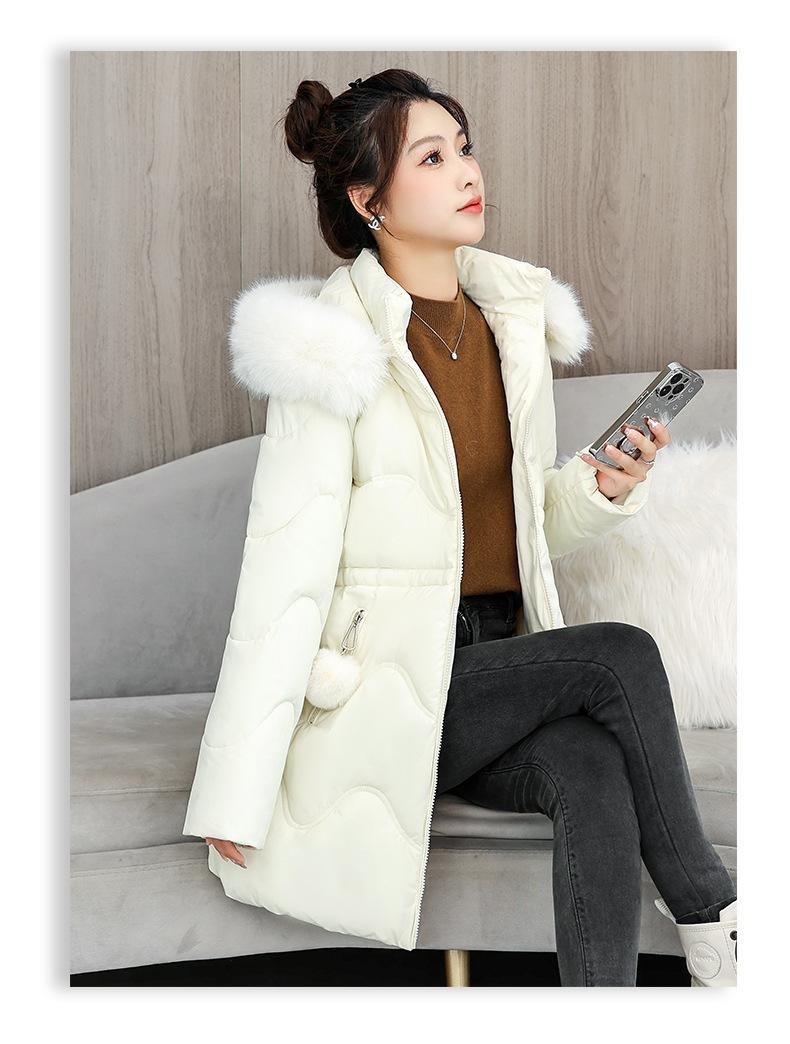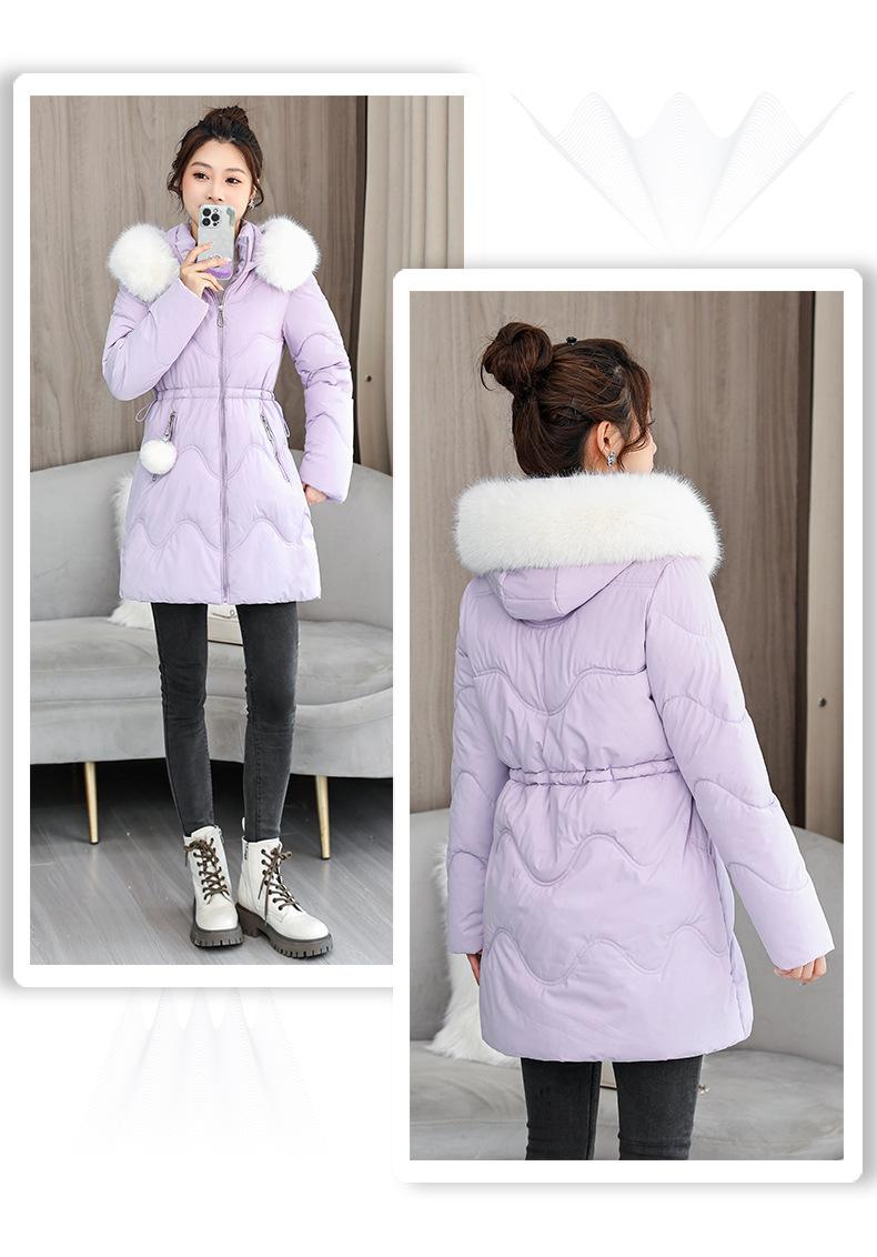 2024 Nuevo Abrigo Acolchado de Algodón de Cintura Transfronterizo para Mujer de Largo Medio Ajustado Otoño e Invierno Abrigo Acolchado de Algodón con Capucha y Cuello de Piel Chaqueta a Prueba de Frío