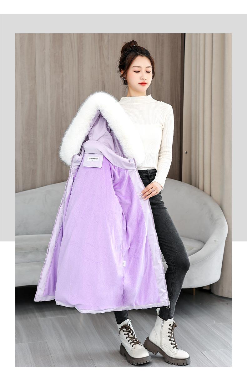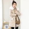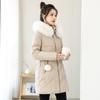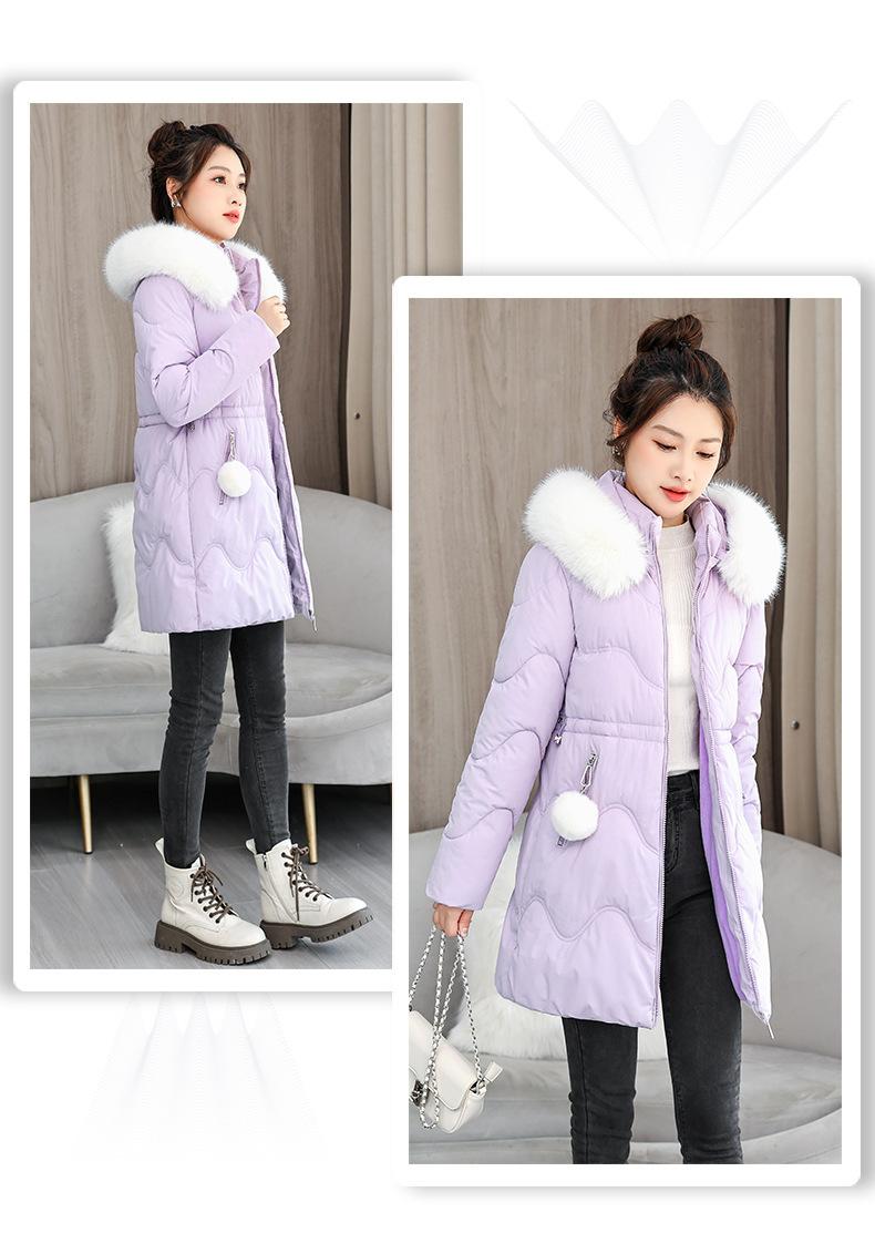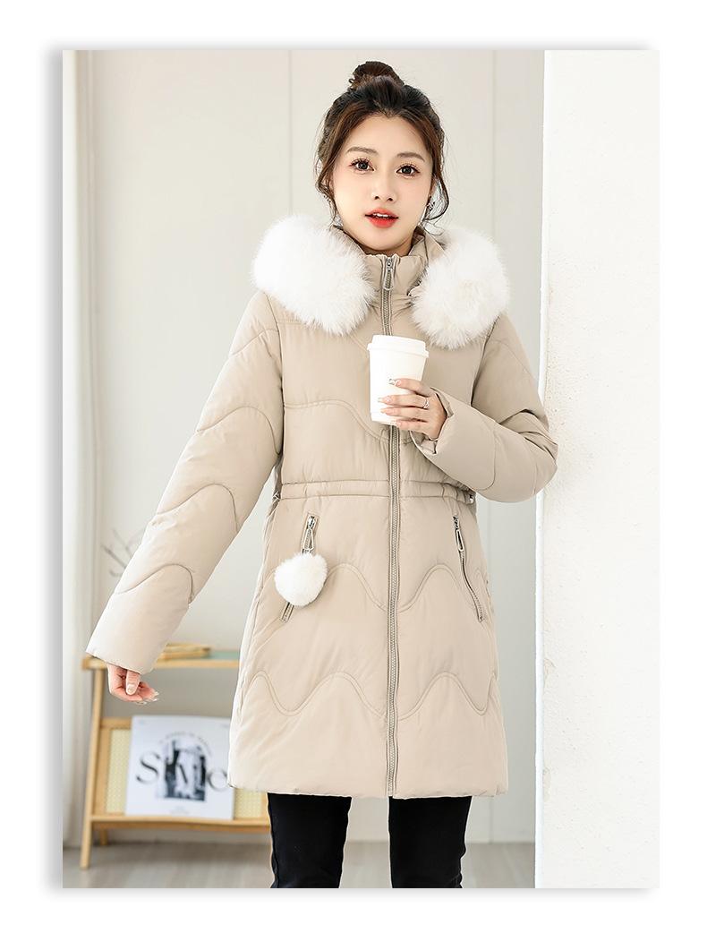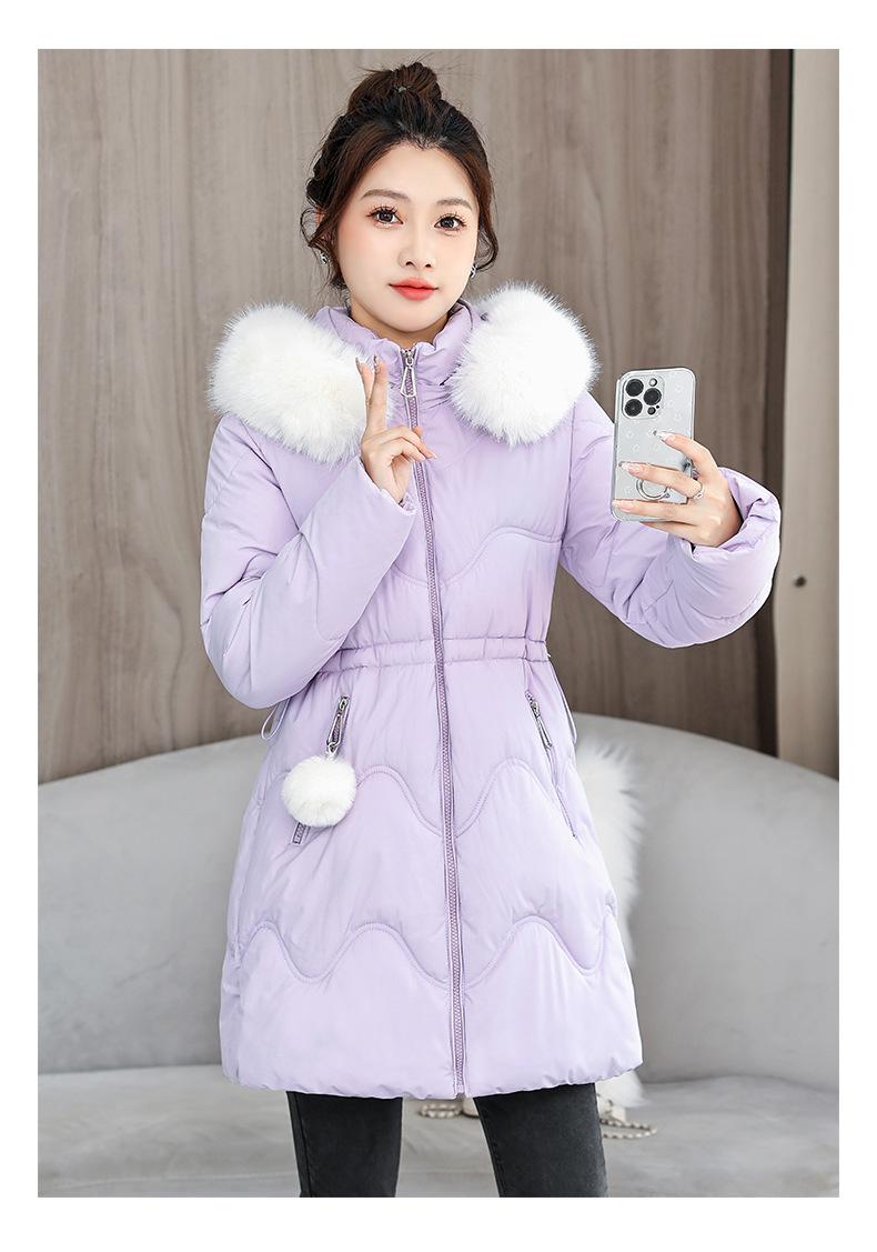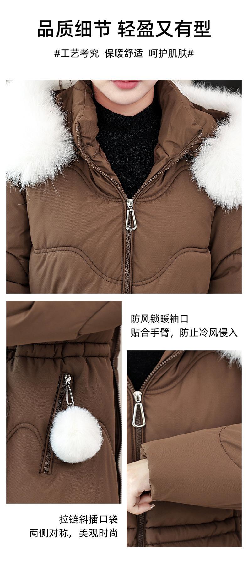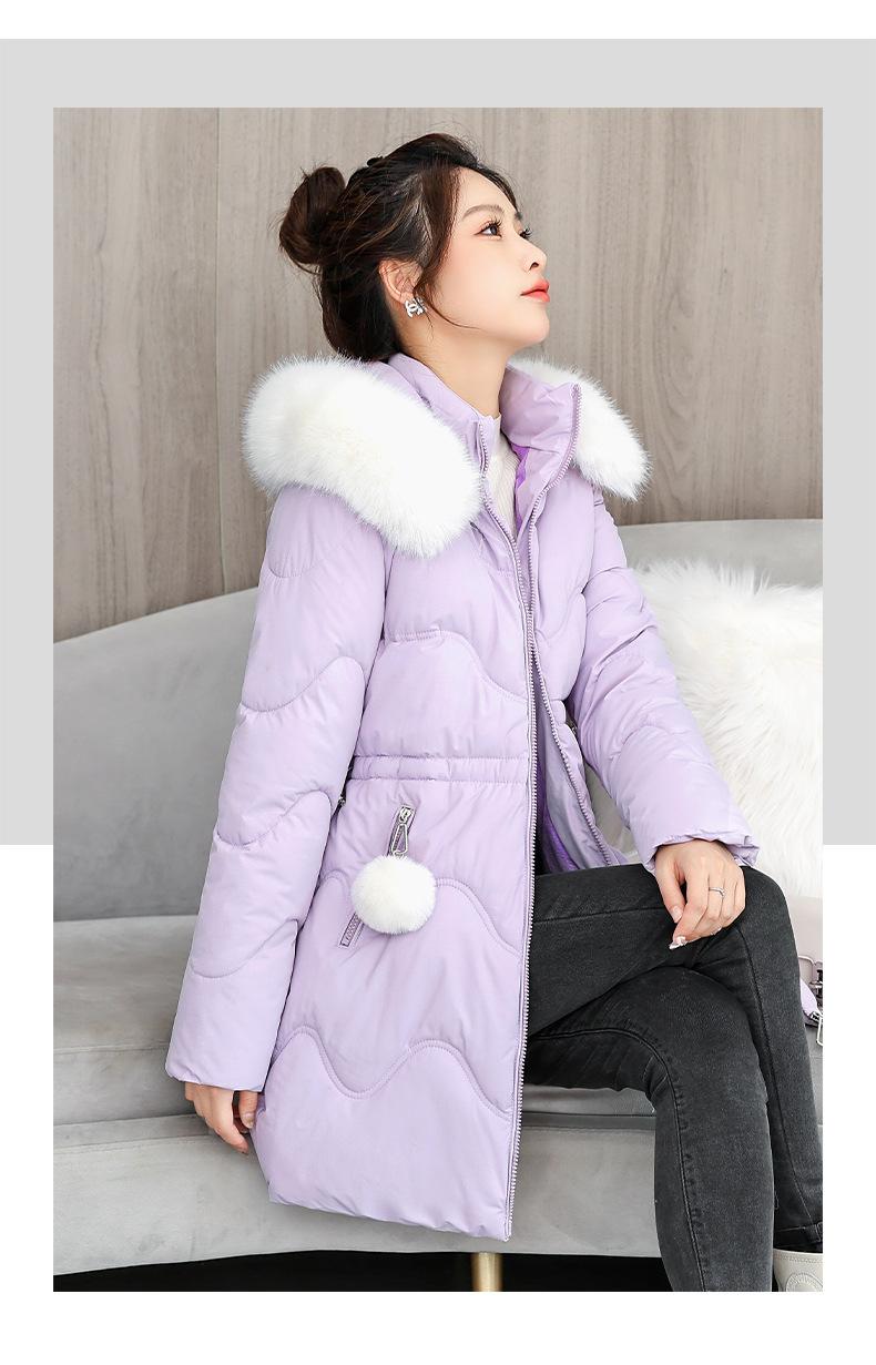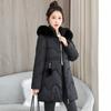 2024 Nuevo Abrigo Acolchado de Algodón de Cintura Transfronterizo para Mujer de Largo Medio Ajustado Otoño e Invierno Abrigo Acolchado de Algodón con Capucha y Cuello de Piel Chaqueta a Prueba de Frío