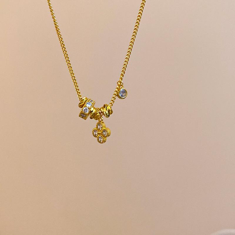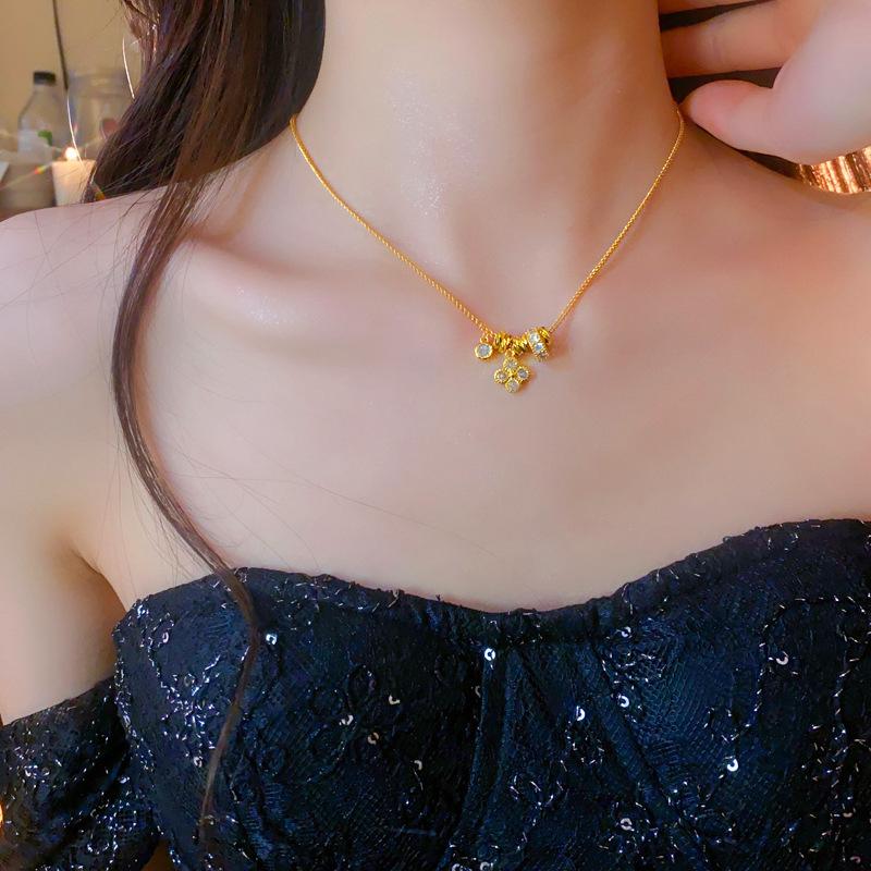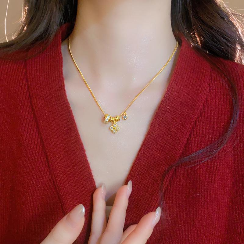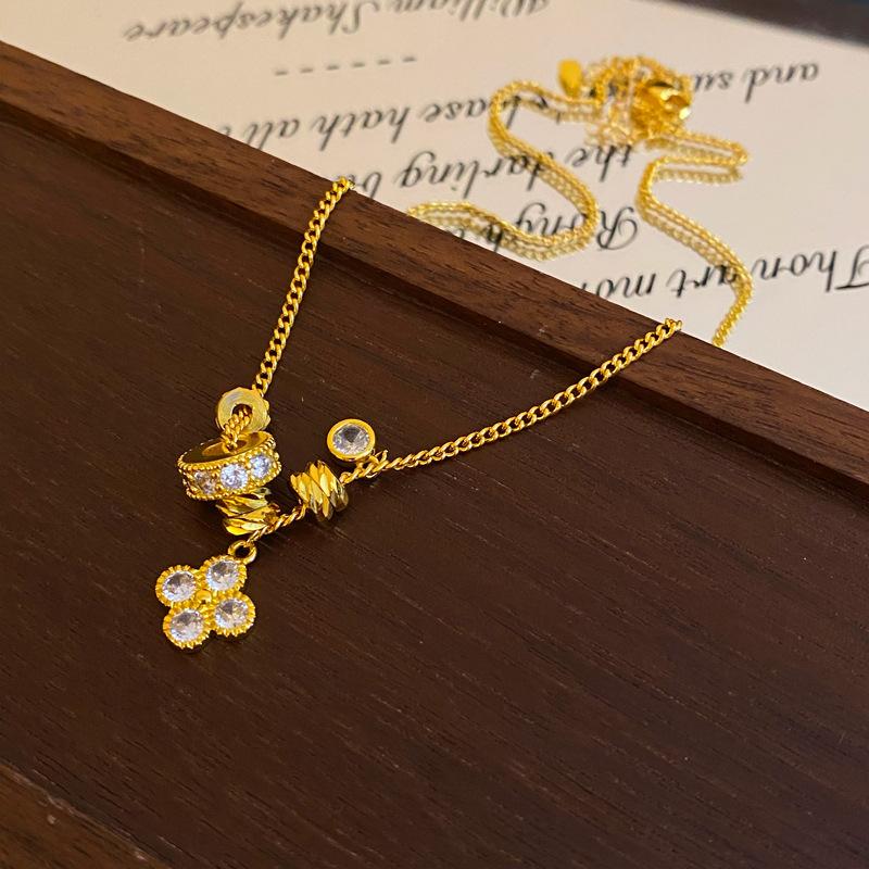Collar con hebilla de círculo de diamantes de circonio, cadena de clavícula retro francesa Joker, otoño e invierno, temperamento de alta gama, venta al por mayor