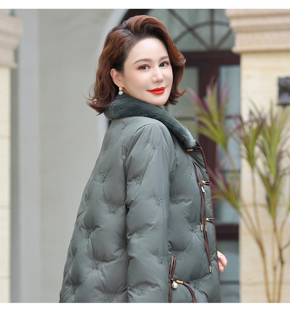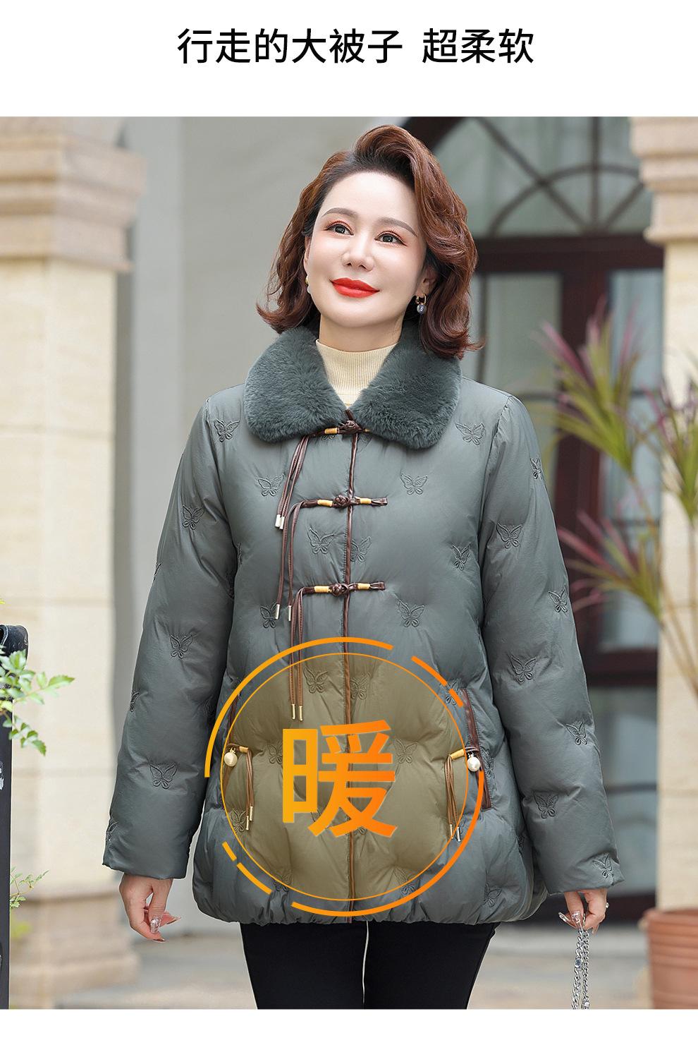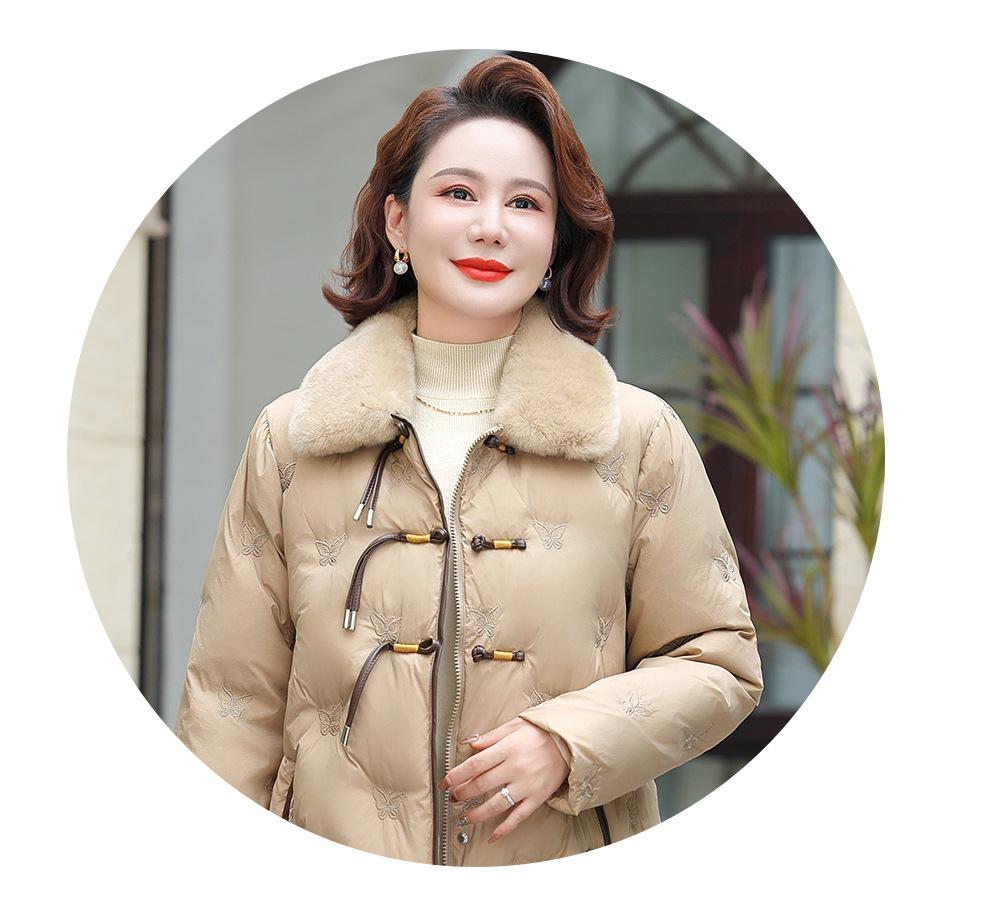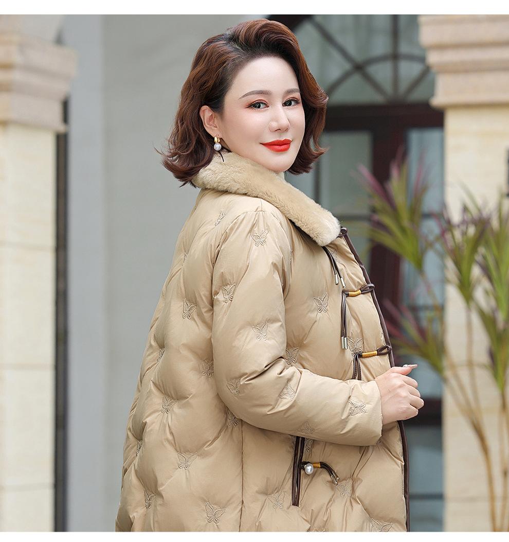 Chaqueta de plumón de pato blanco para invierno 2024, nueva chaqueta gruesa de mediana edad para madres, a la moda, resistente al frío, de longitud media, con cuello de lana.
