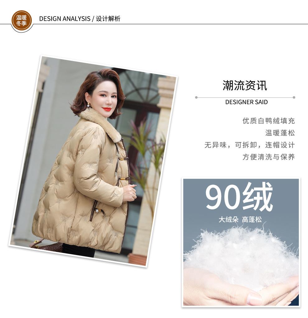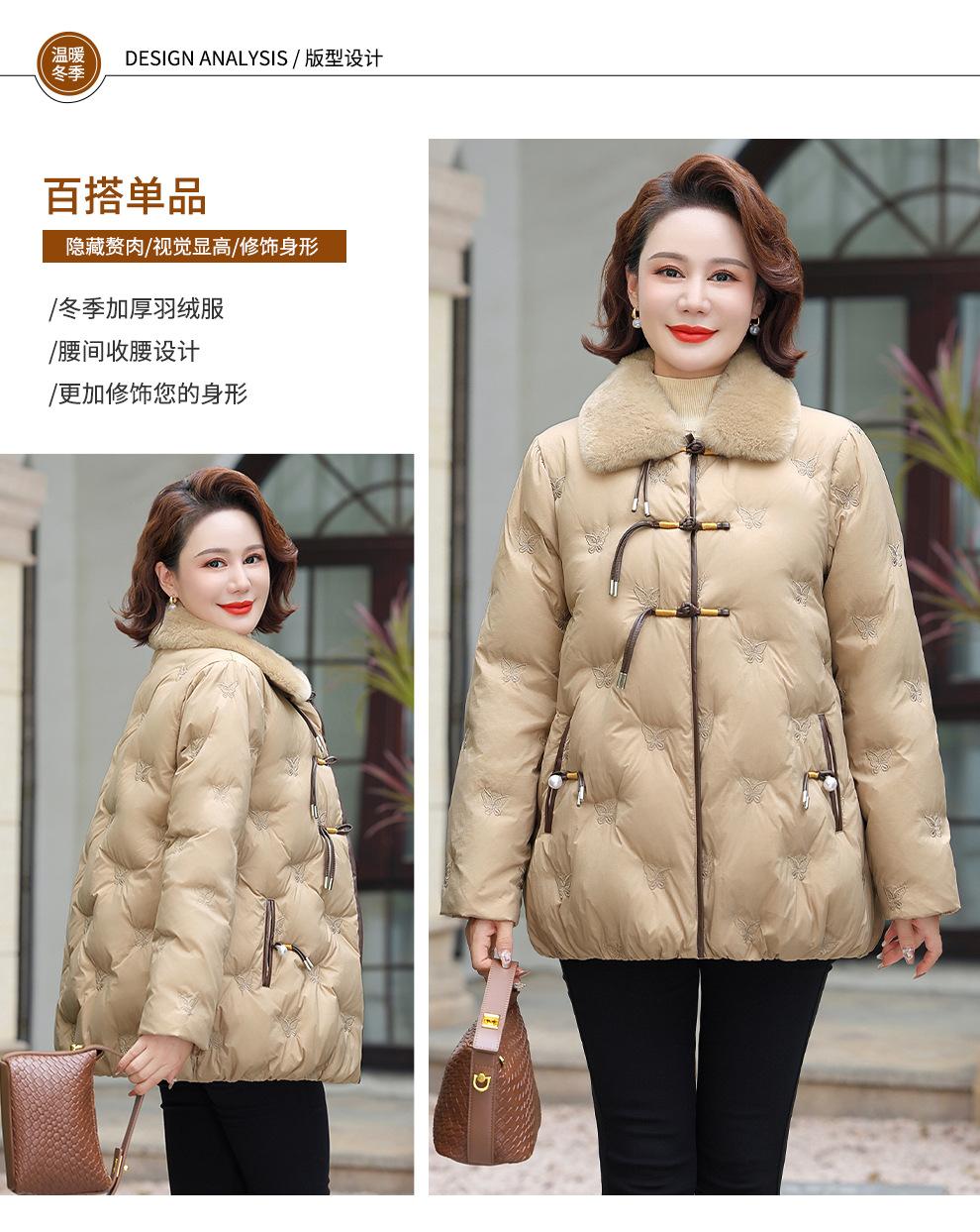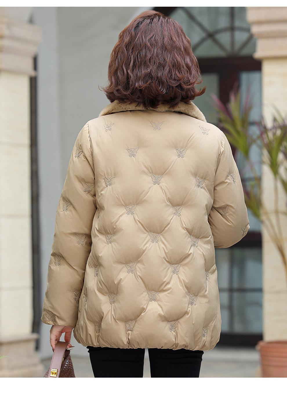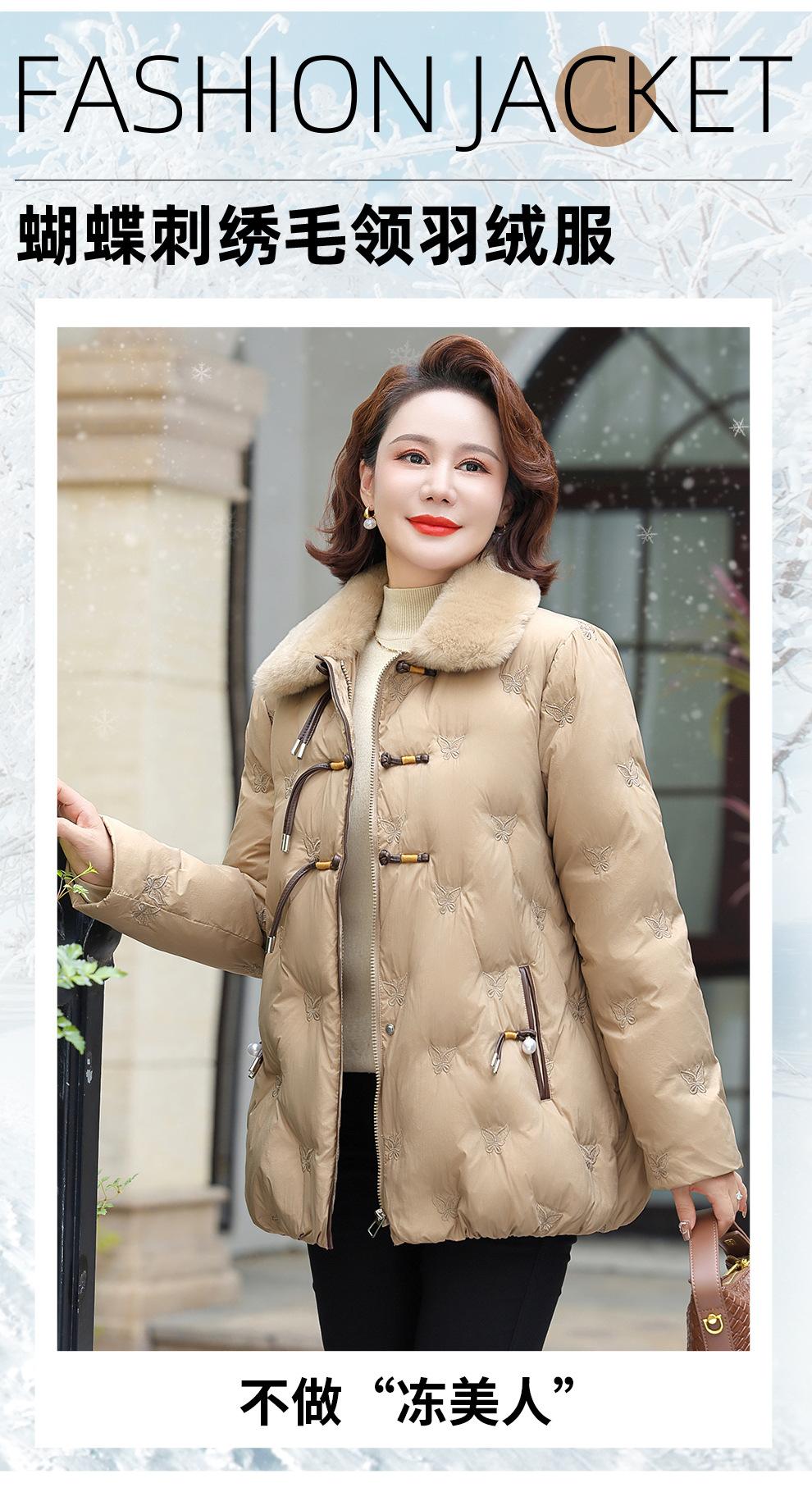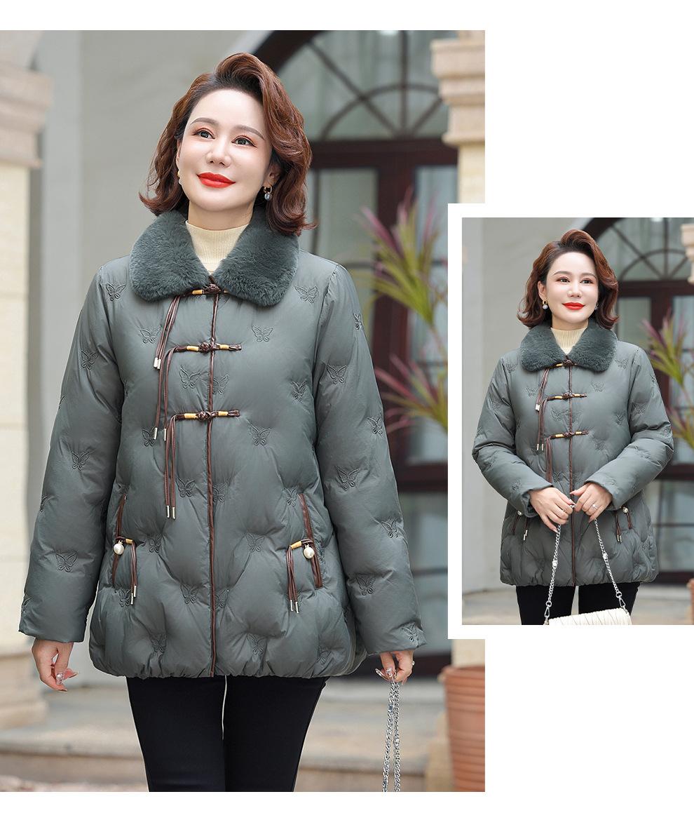 Chaqueta de plumón de pato blanco para invierno 2024, nueva chaqueta gruesa de mediana edad para madres, a la moda, resistente al frío, de longitud media, con cuello de lana.