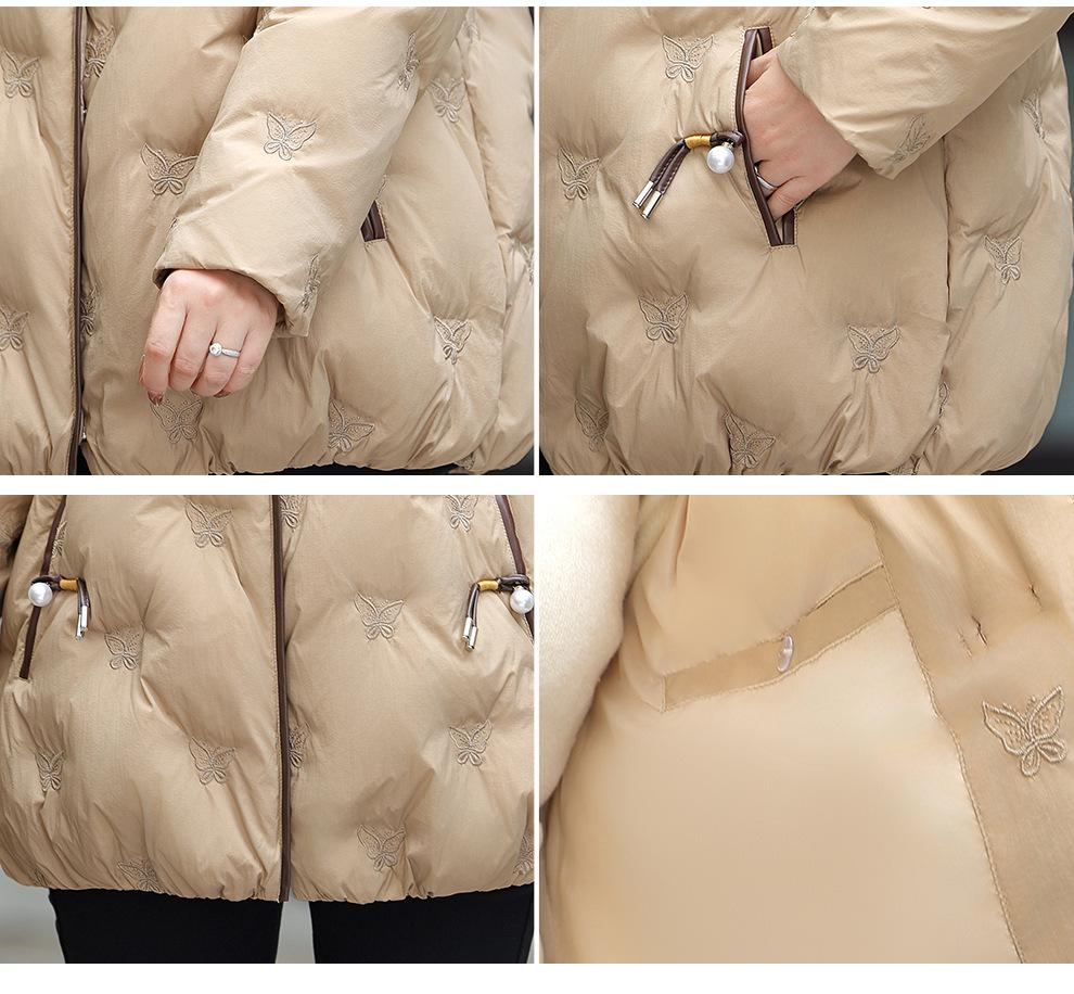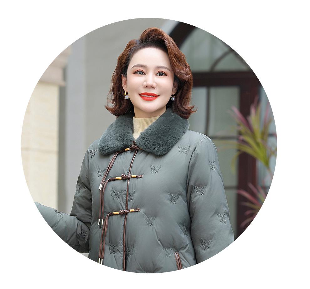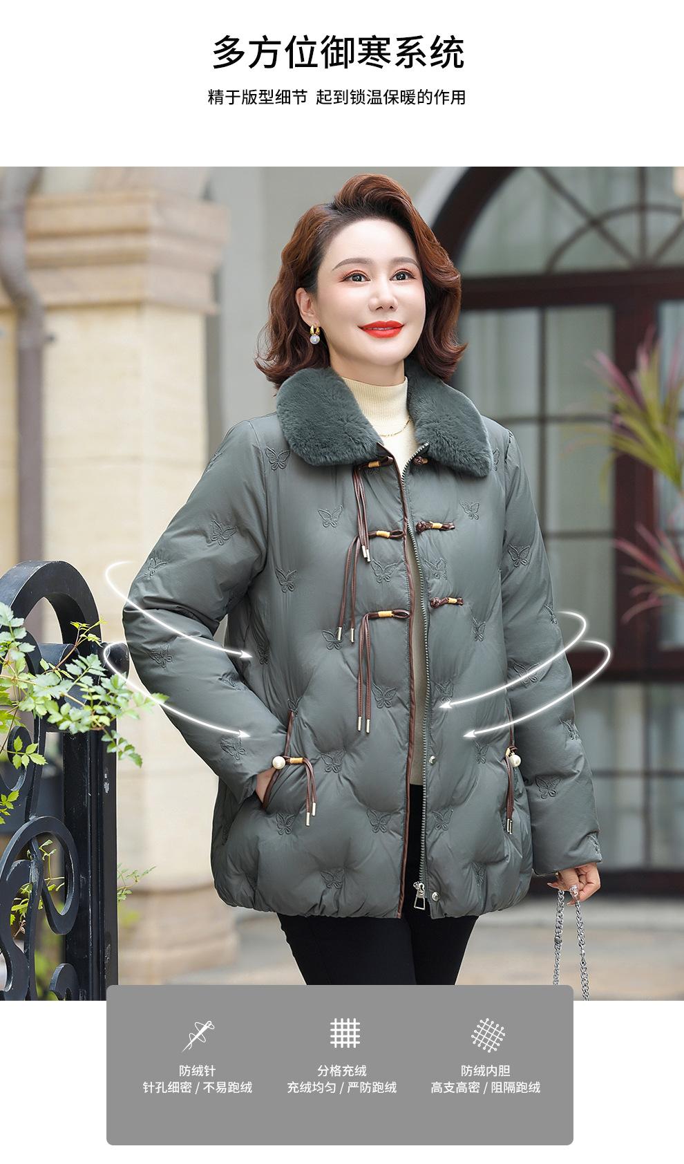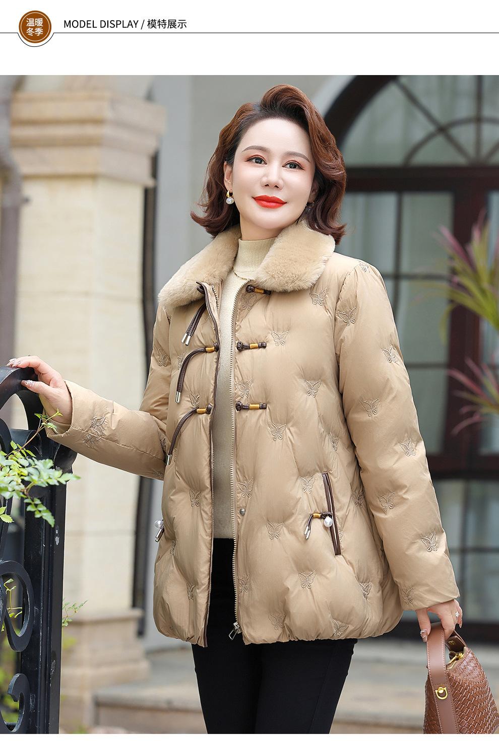 Chaqueta de plumón de pato blanco para invierno 2024, nueva chaqueta gruesa de mediana edad para madres, a la moda, resistente al frío, de longitud media, con cuello de lana.