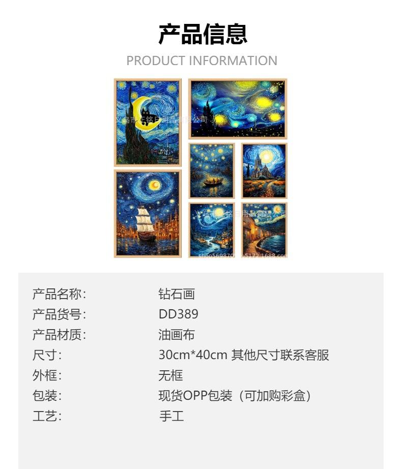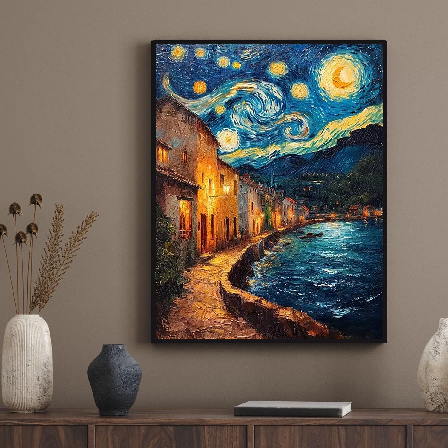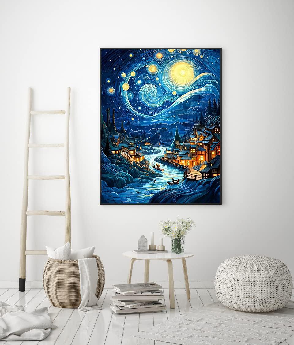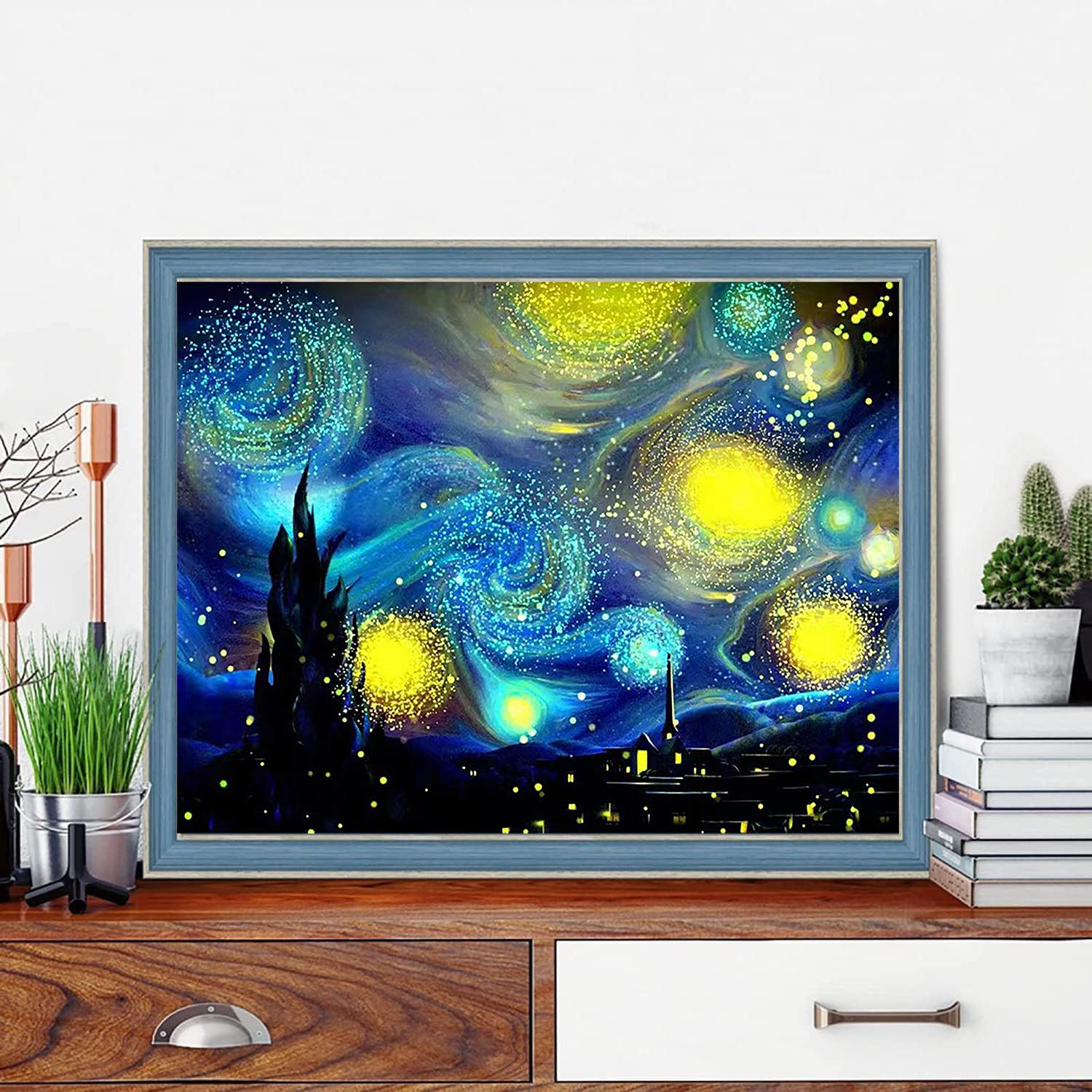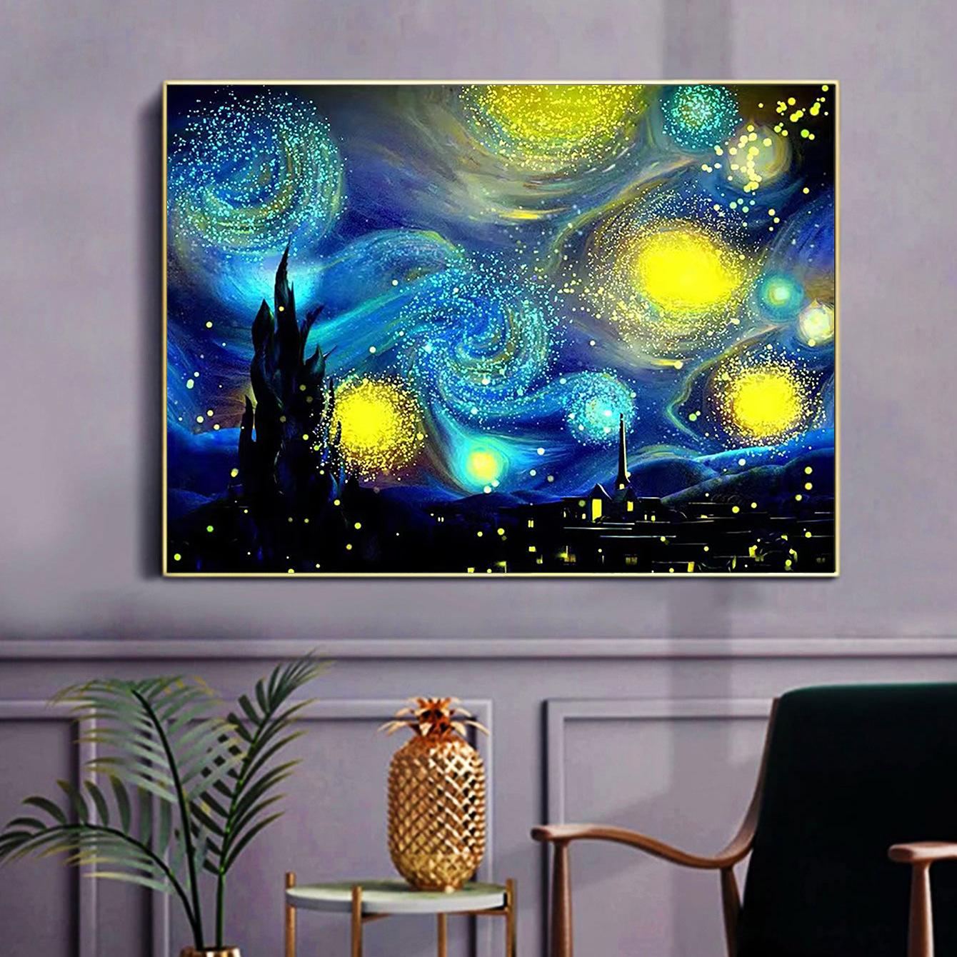 Nueva pintura de diamantes hecha a mano, superventas en Amazon, Van Gogh, cielo estrellado, pintura decorativa de diamante completo para sala de estar y dormitorio, fábrica al por mayor