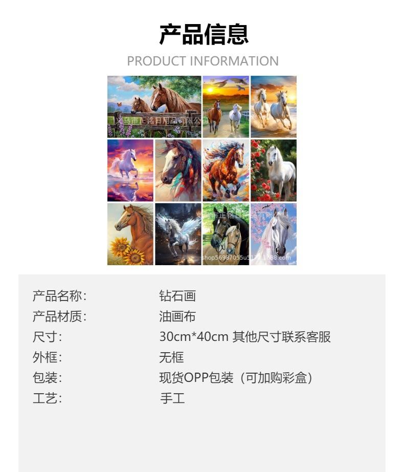 Cuadro de diamantes de caballo lleno de diamantes, animal, bricolaje, bordado de diamantes, adornos, sala de estar, dormitorio, pintura decorativa transfronteriza para fabricantes al por mayor