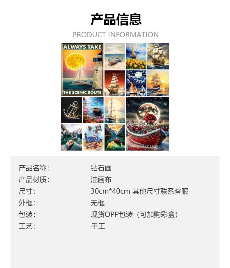Pintura de diamantes de barco diy5D, pintura decorativa de diamantes completa para sala de estar y dormitorio, pegatinas de diamantes creativas, venta directa de fábrica al por mayor transfronteriza