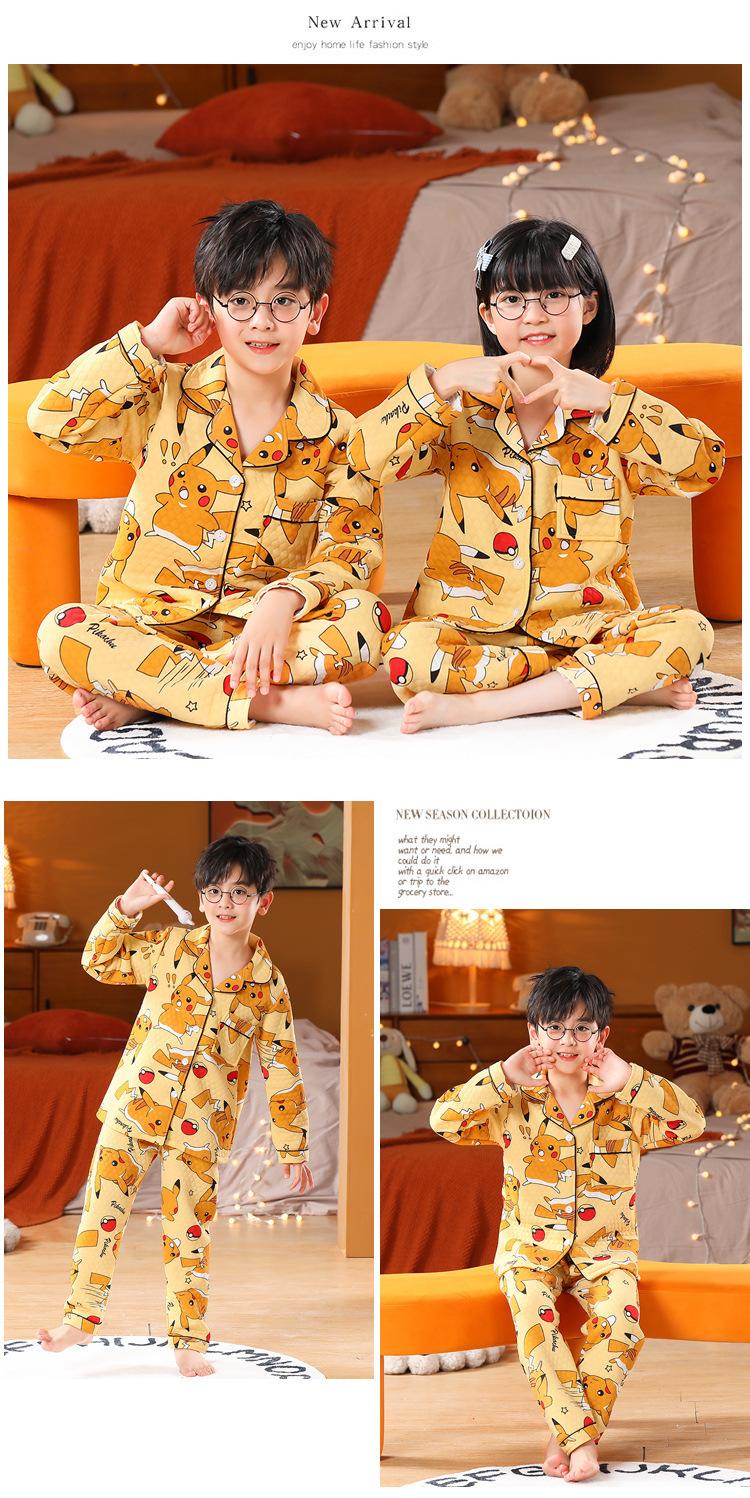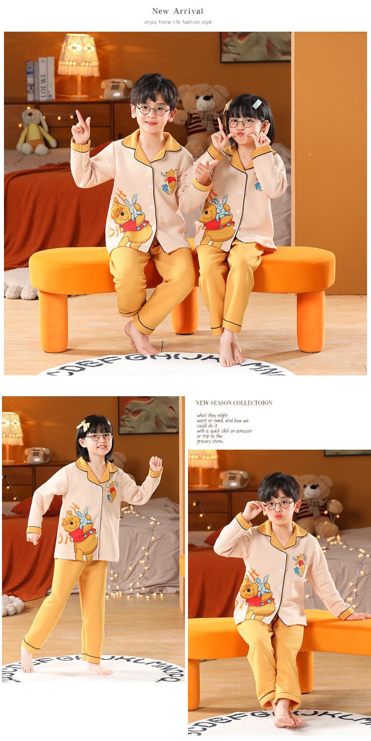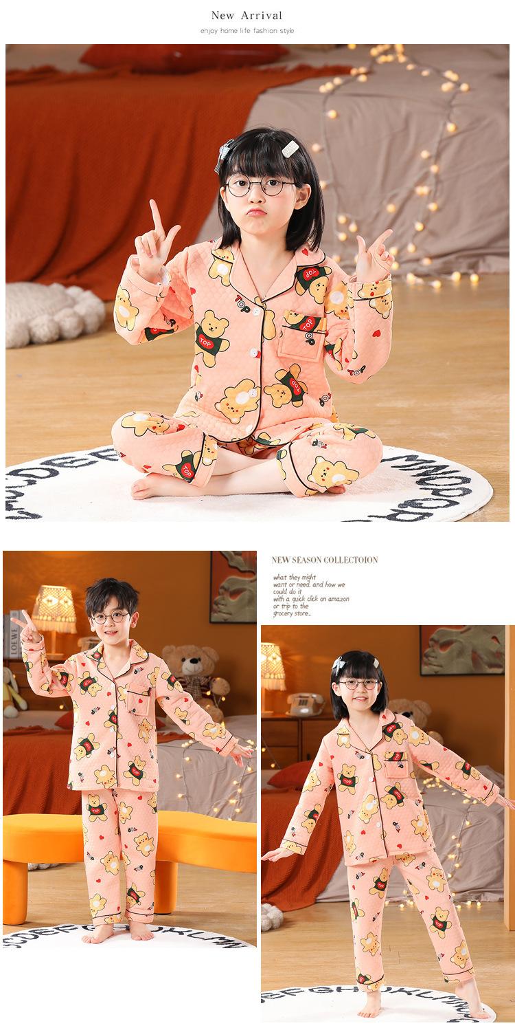 Pijama de Algodón Grueso para Niños Set de Ropa Interior Térmica Ropa de Otoño para Niñas Pantalones de Otoño Ropa de Casa para Niños Invierno Niños Medianos y Grandes