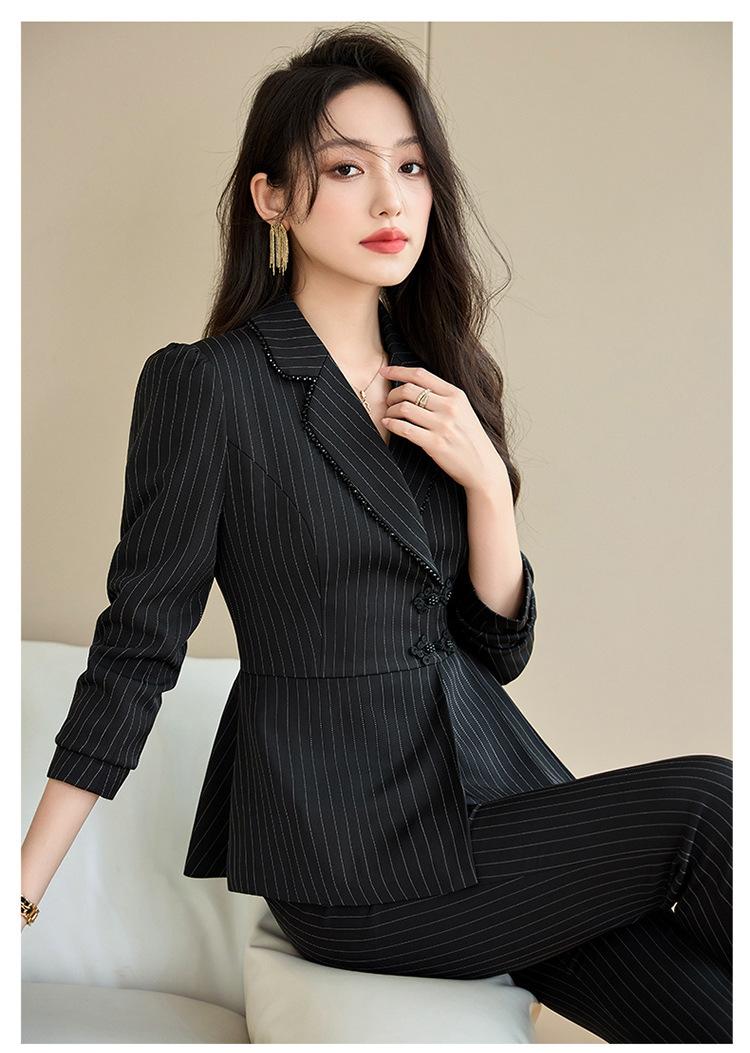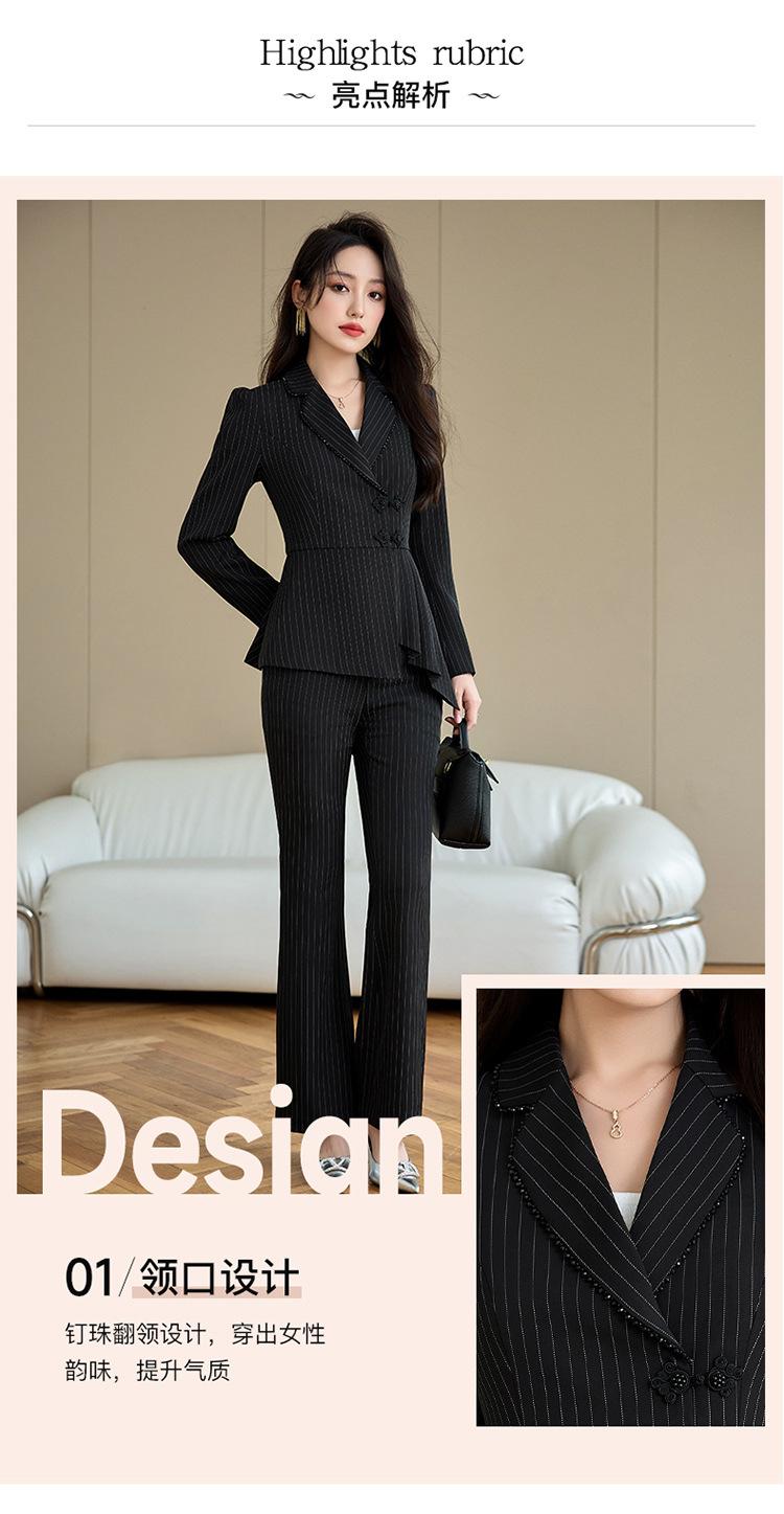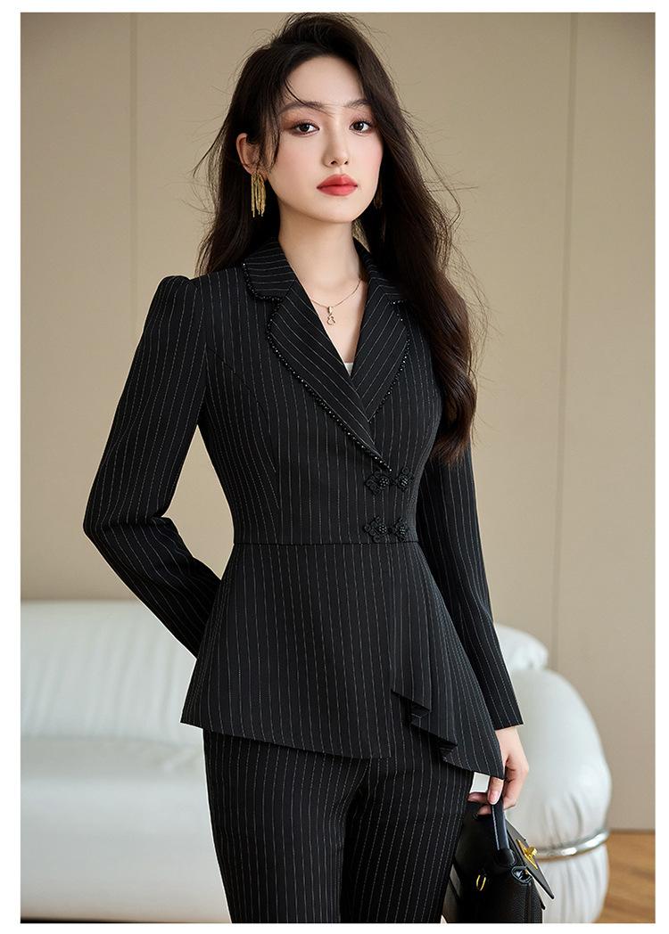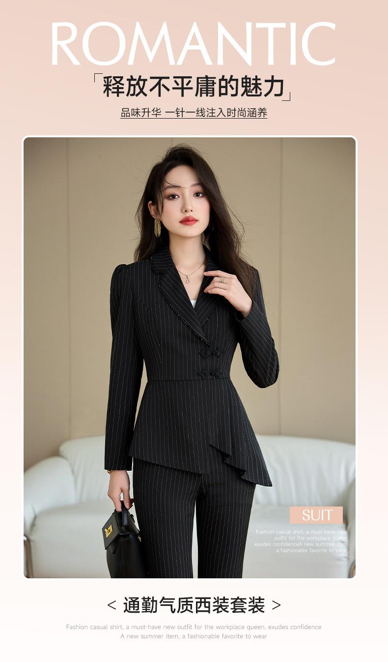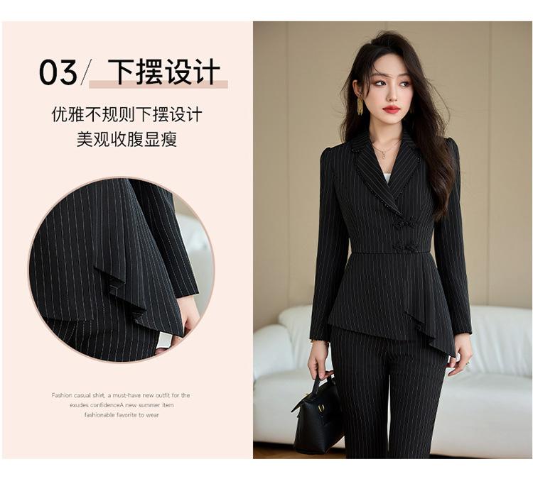 Chaqueta de traje a rayas de diseño para mujer, otoño e invierno 2024, nuevo traje de cintura irregular estilo diosa de alta gama.