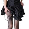 Medias negras ultrafinas con estampado de mariposas, sexys, de seda negra, corte libre, para chica