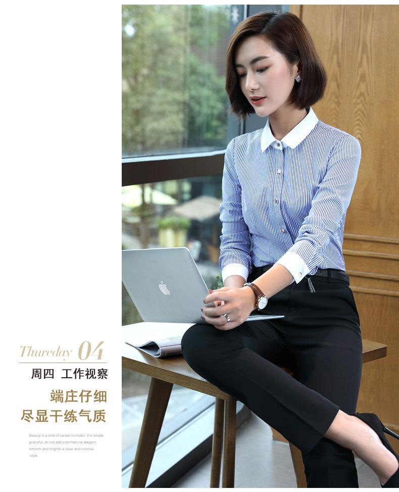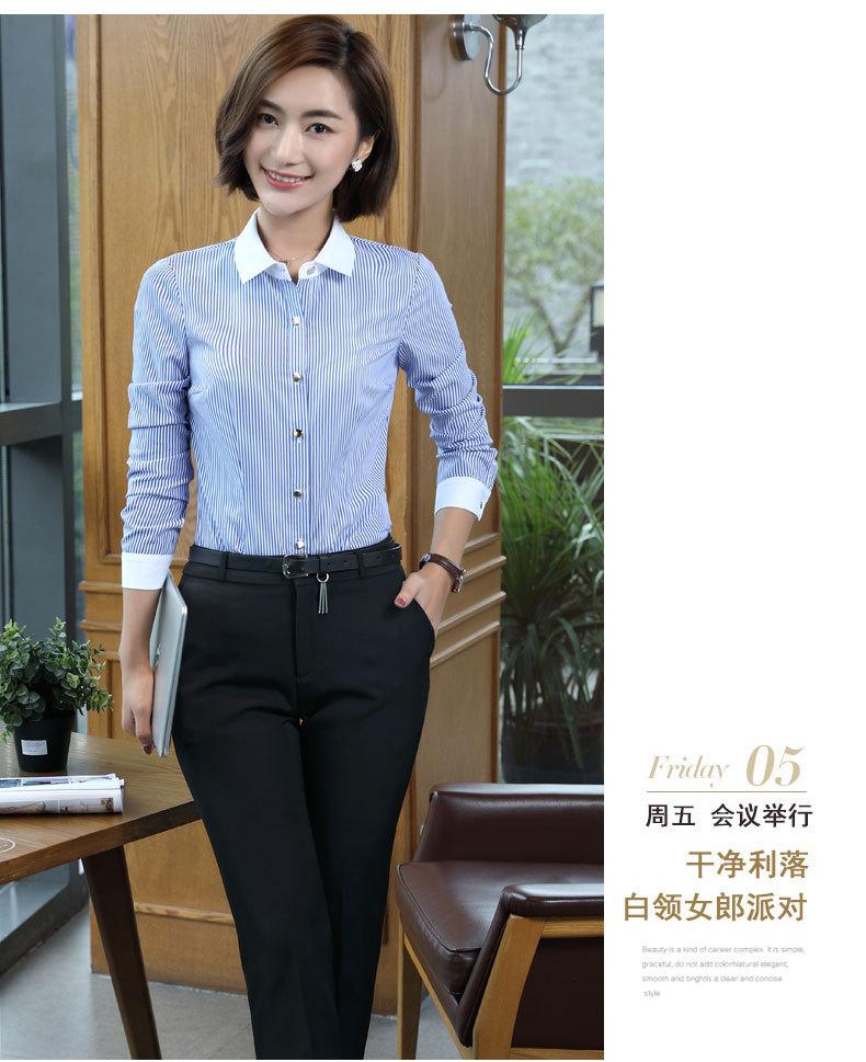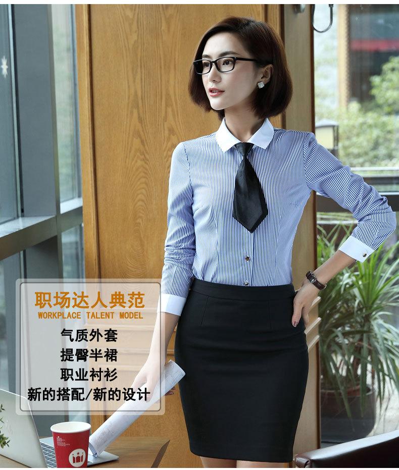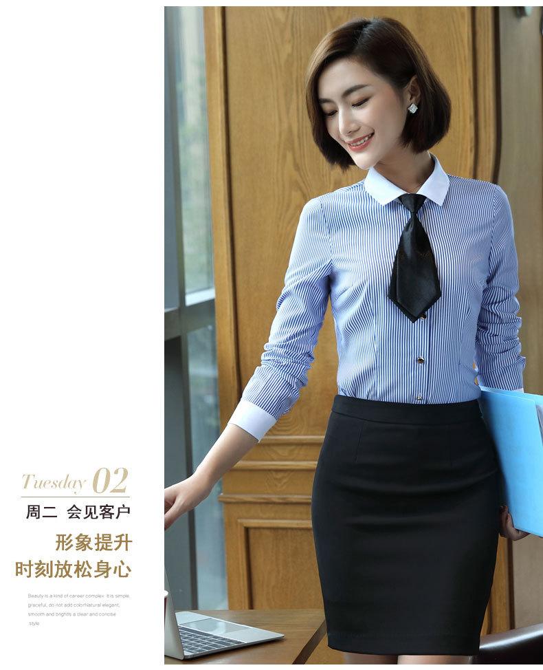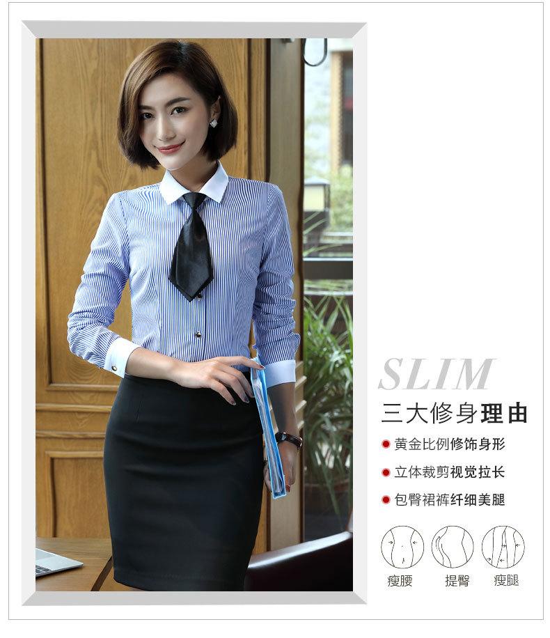 Camisa de Moda Otoño e Invierno para Mujer de Manga Larga Ropa de Negocios Corte Slim OL Talla Grande Camisa Rayada Ropa de Trabajo de Hotel