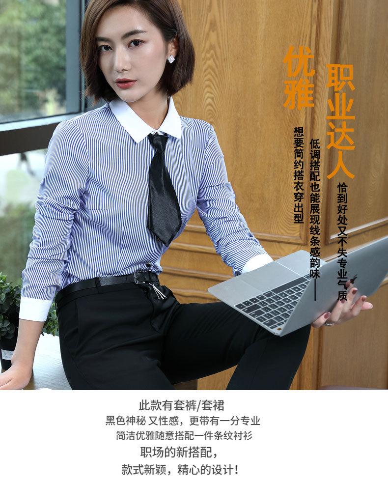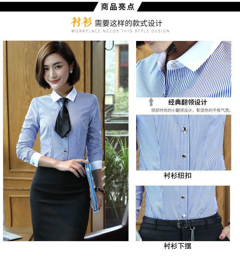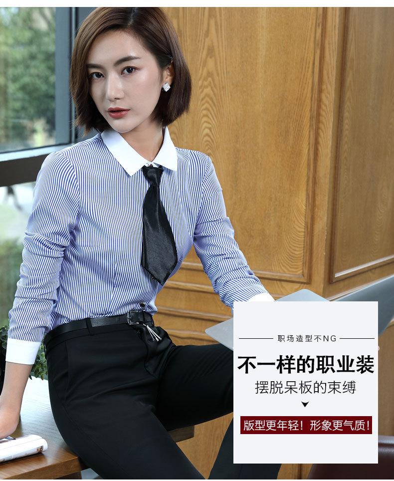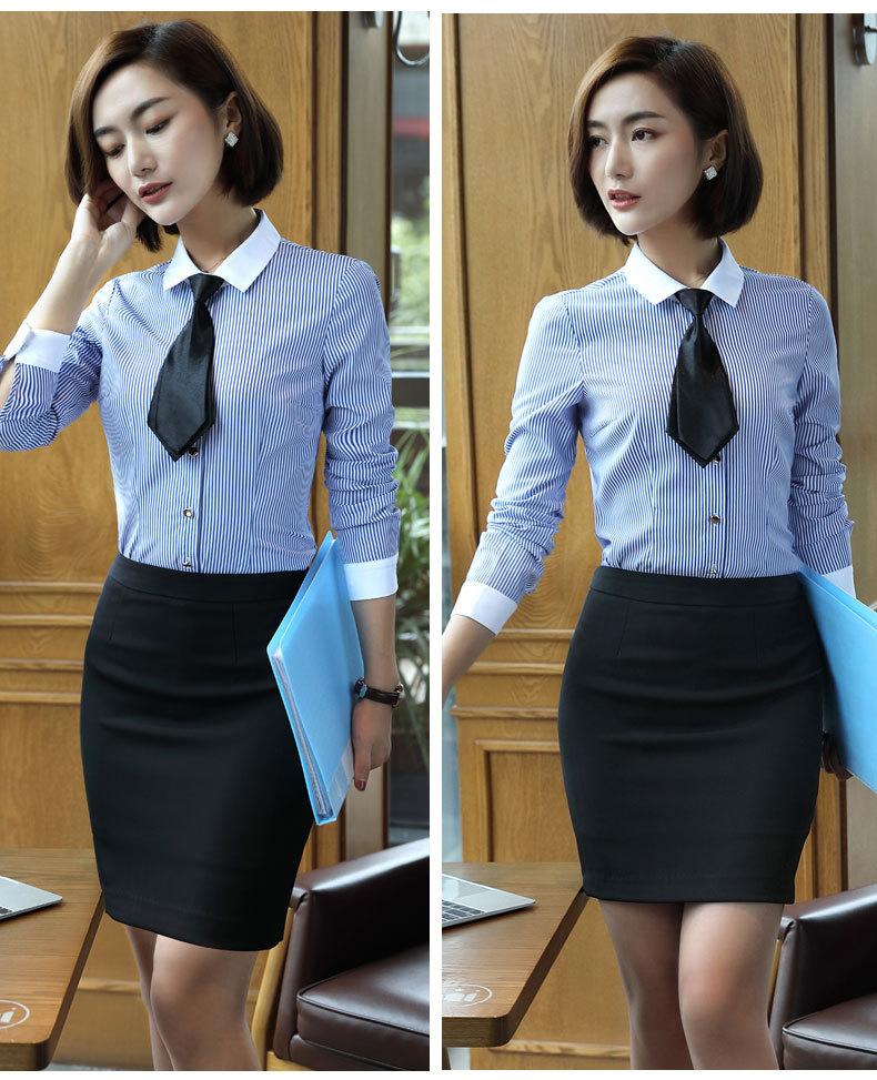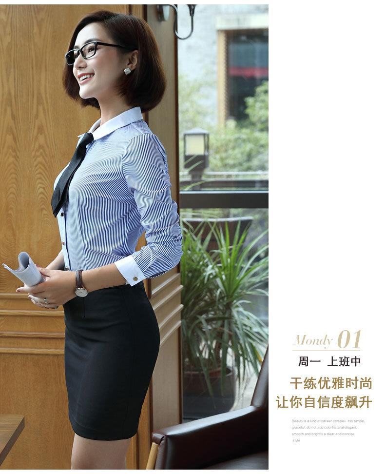 Camisa de Moda Otoño e Invierno para Mujer de Manga Larga Ropa de Negocios Corte Slim OL Talla Grande Camisa Rayada Ropa de Trabajo de Hotel