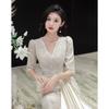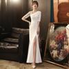 Vestido de Noche de un Hombro 2025 Nuevo Plata de Alta Gama Elegante Lentejuela Anfitrión Reunión Anual Vestido para Brindis Novia