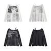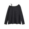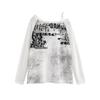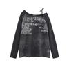 TKPA2025 Primavera Nuevo Estilo Americano Spice Girl Blusa de Hombro Inclinado para Mujer Inkjet Oscura Camiseta Blusa de Manga Larga T Manga Larga