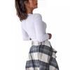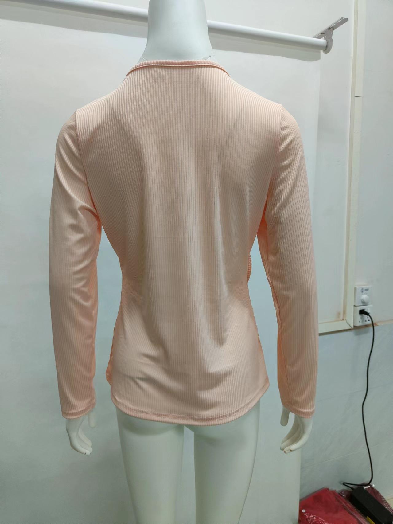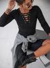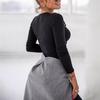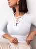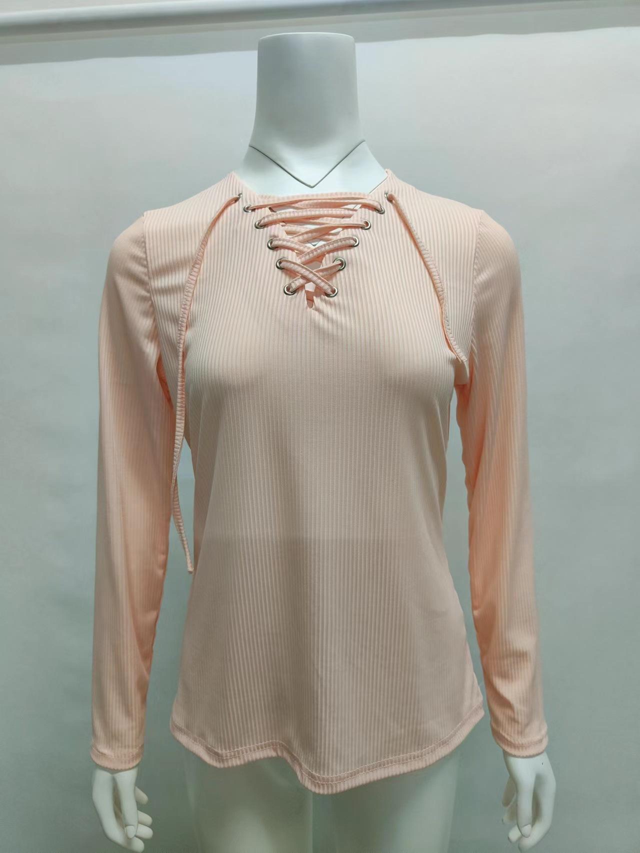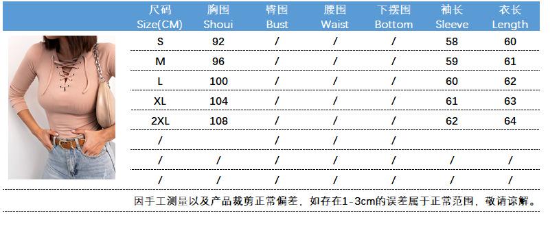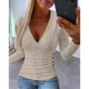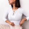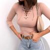 Exportación Transfronteriza Otoño e Invierno Amazon Color Puro Manga Larga Cuello en V Ajustado Tejido Sexy Encaje Top Ropa de Mujer