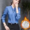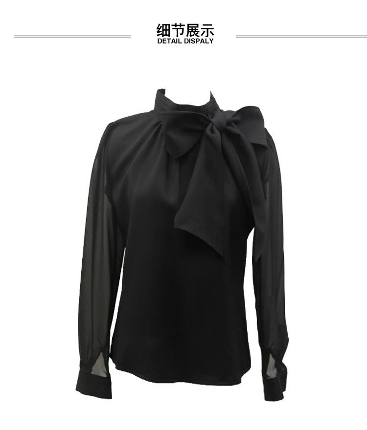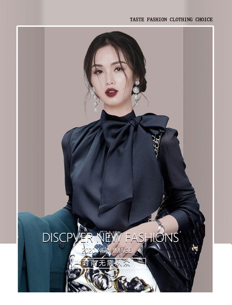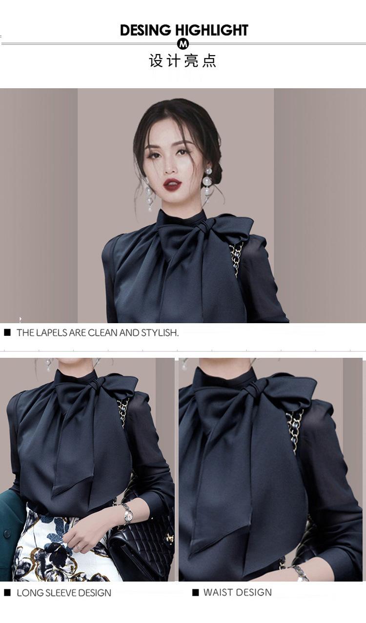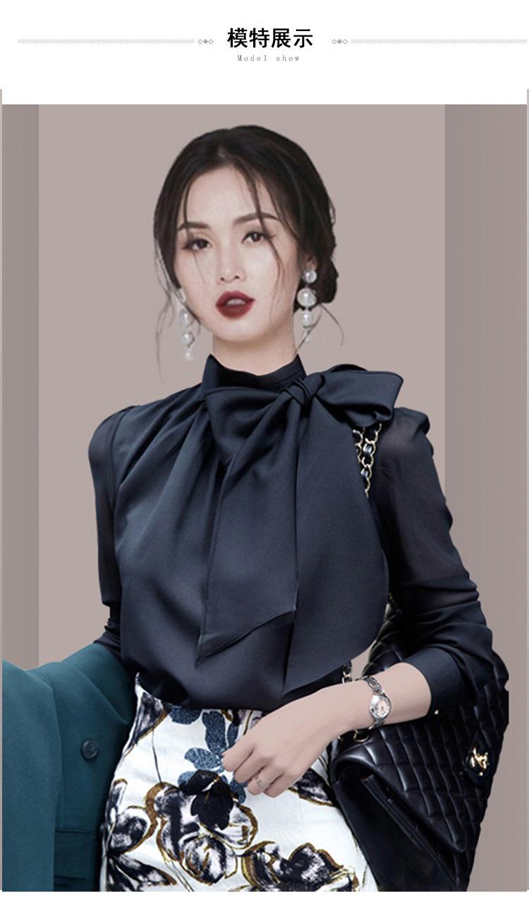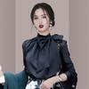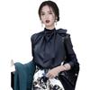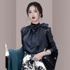 Camisa de gasa con lazo, manga larga, diseño de otoño, elegante, combinable, estilo occidental.