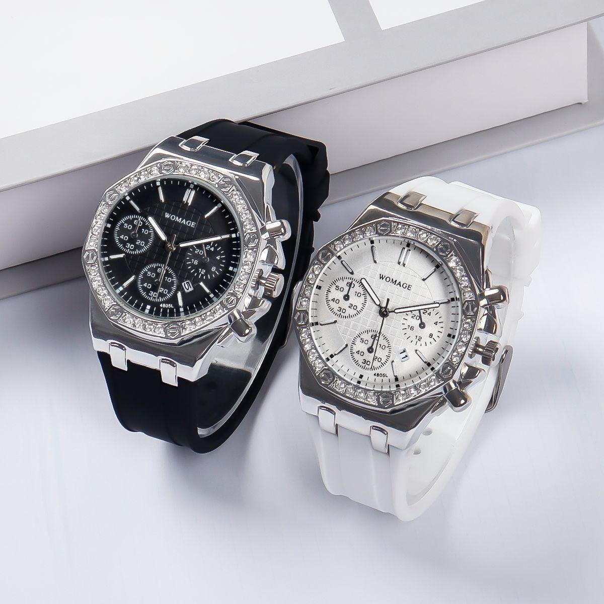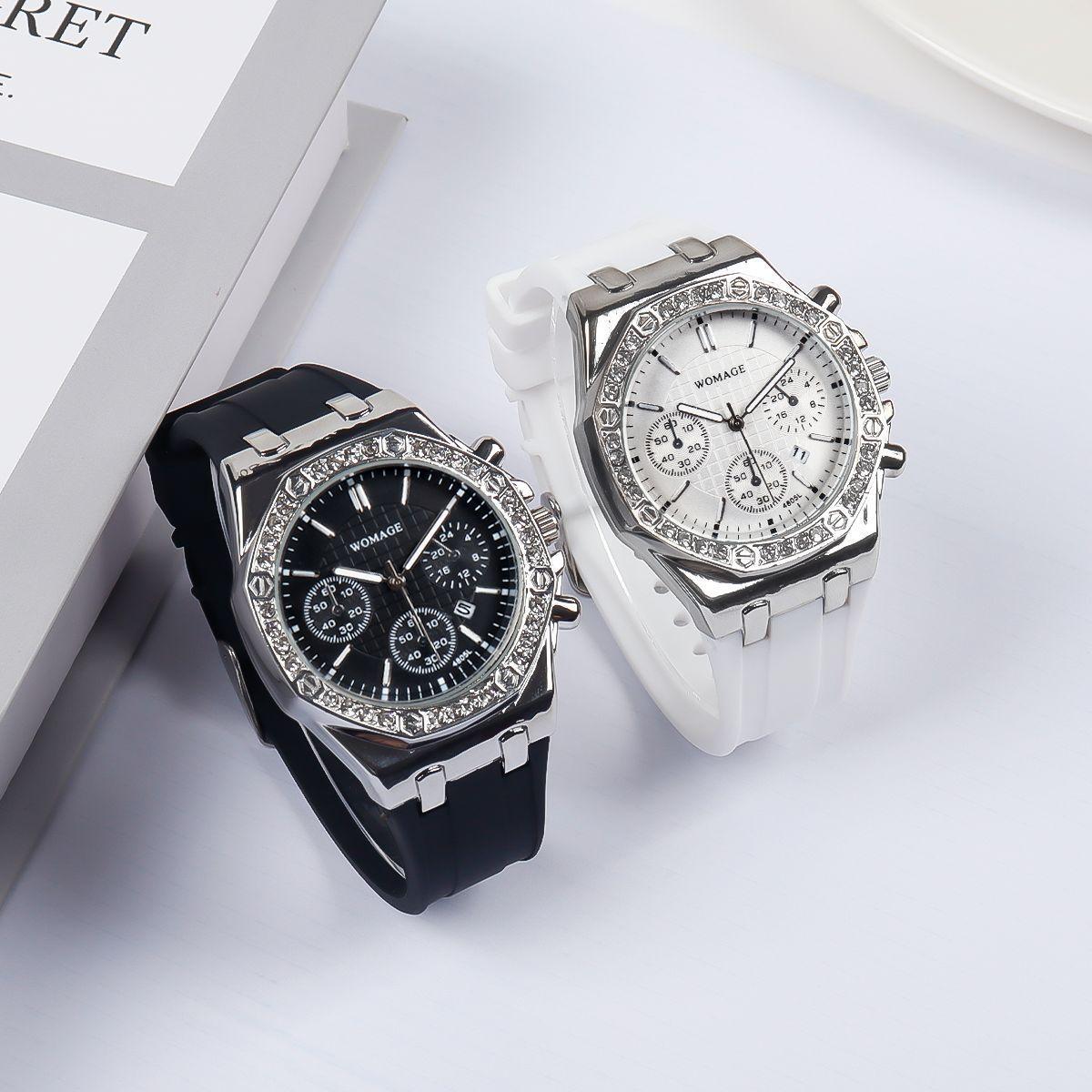 Venta al por mayor de relojes de cuarzo de moda transfronterizos nuevos, relojes de estilo para estudiantes, para hombres y mujeres, venta al por mayor, calendario de tres ojos para mujer, cinta de silicona