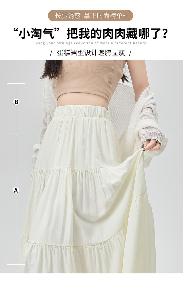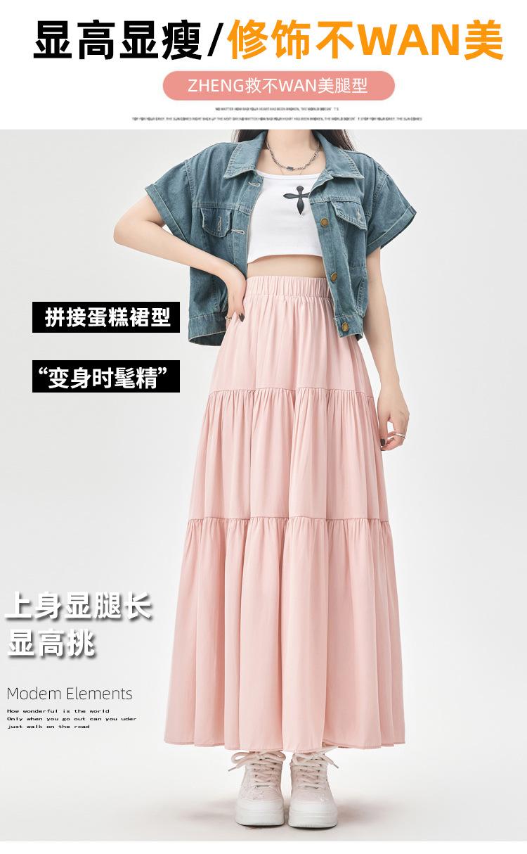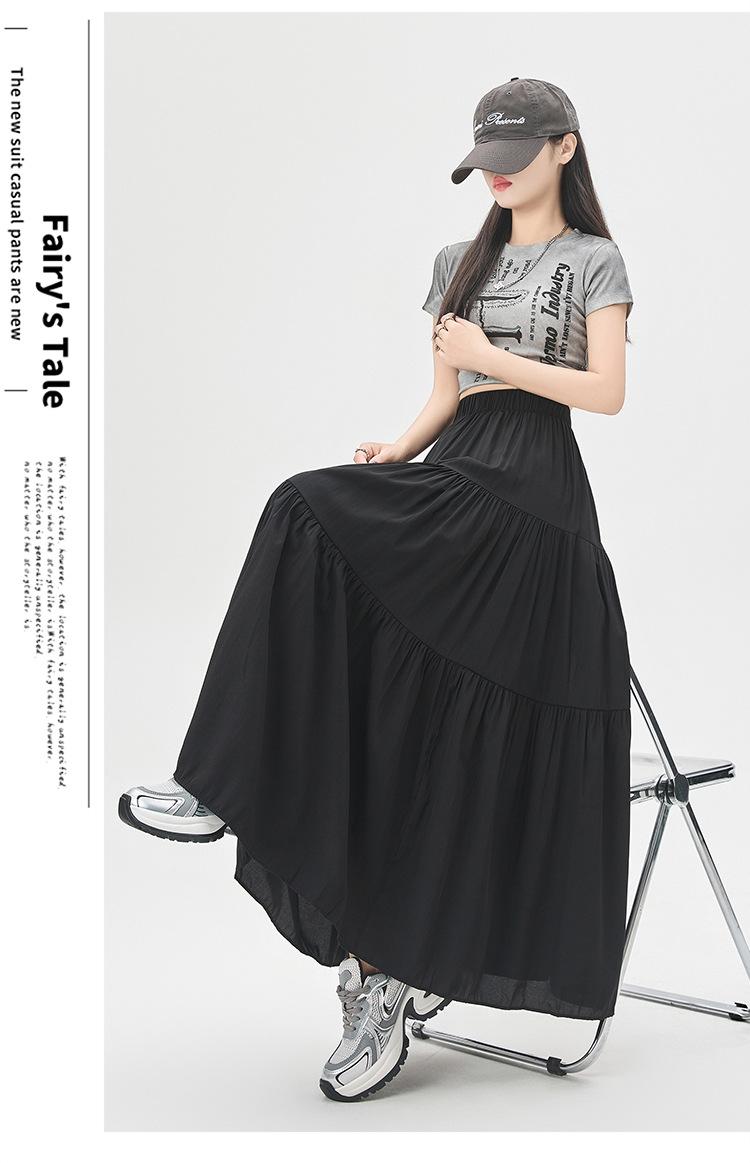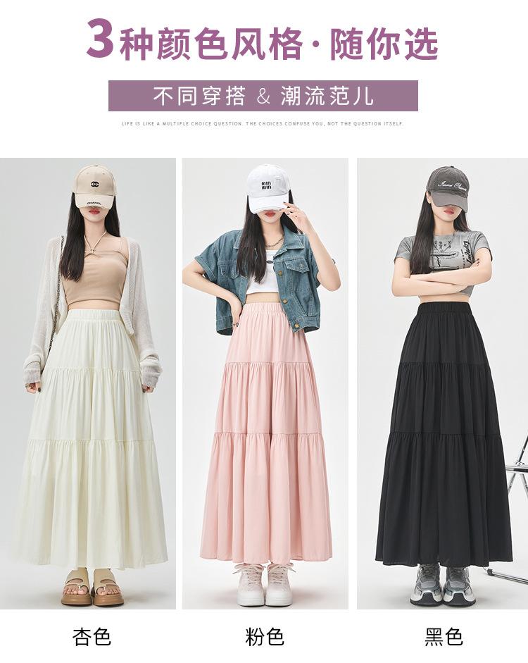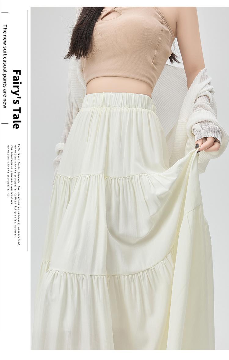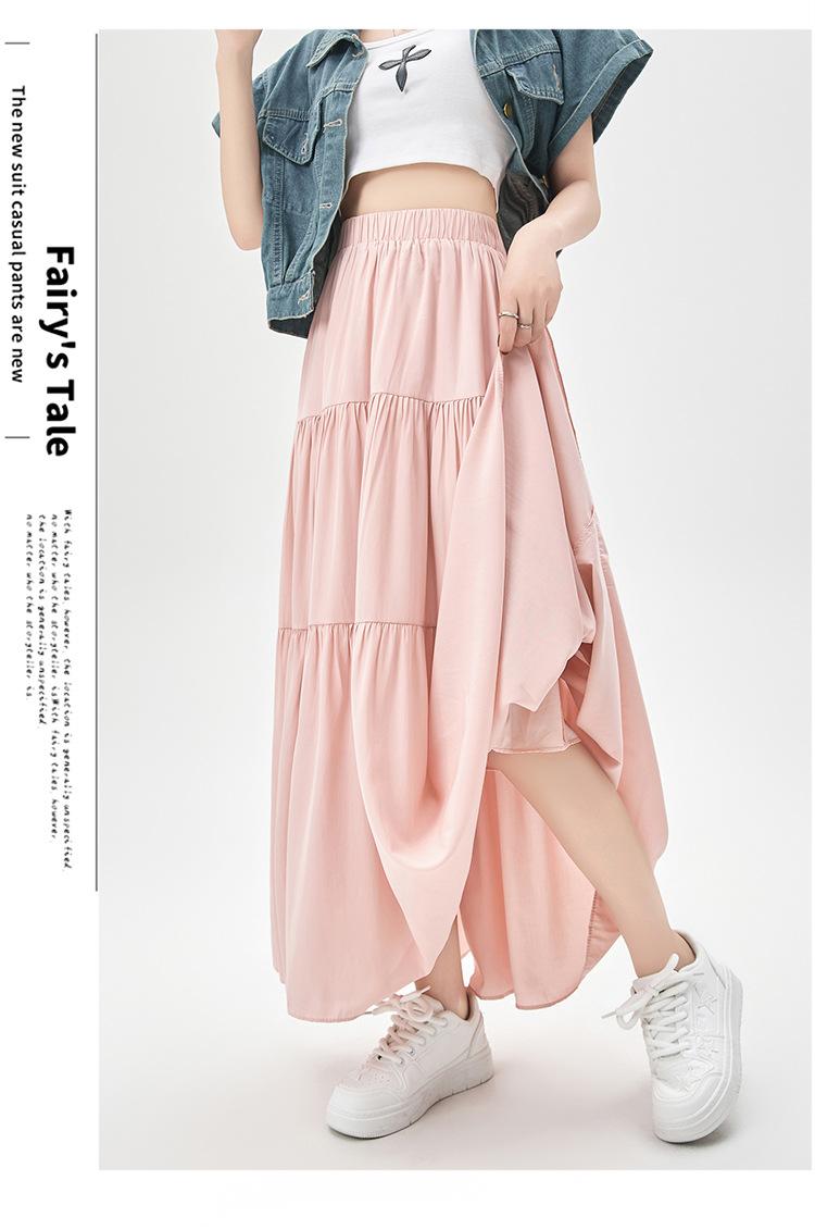 Falda con costura francesa para mujer, primavera y verano 2024, nueva falda acampanada de cintura alta, versátil y adelgazante, vestido informal de corte A.
