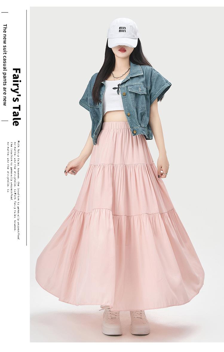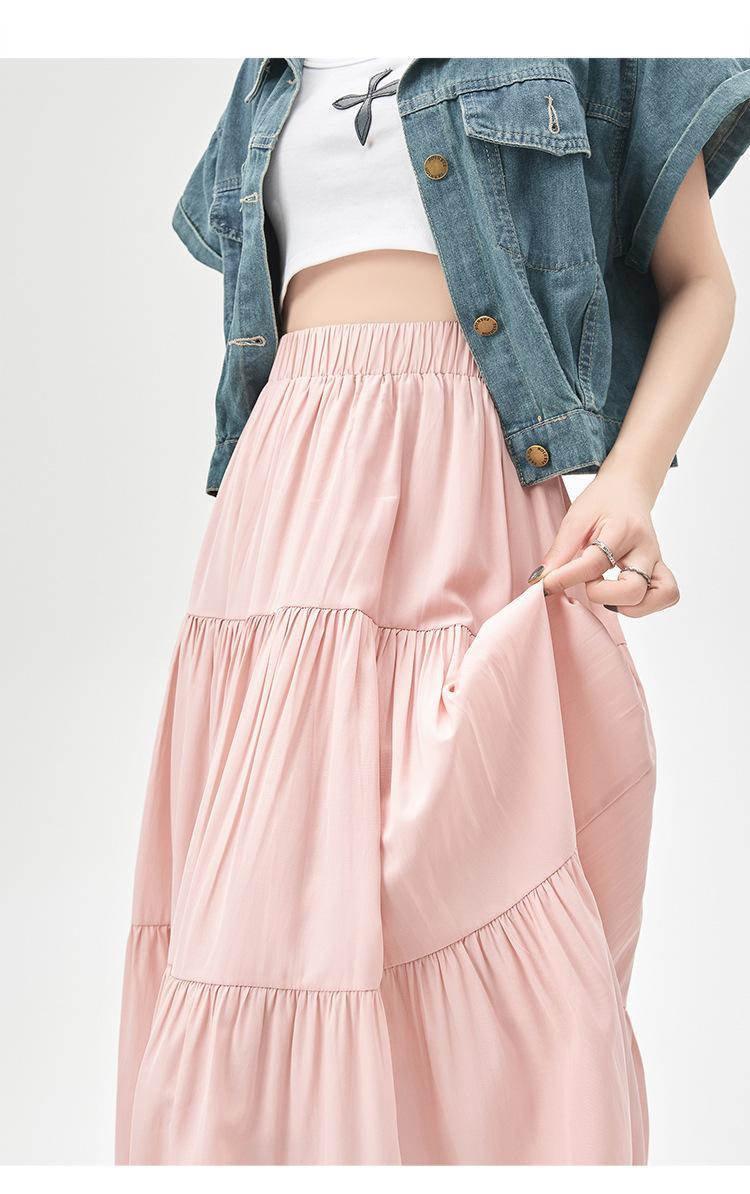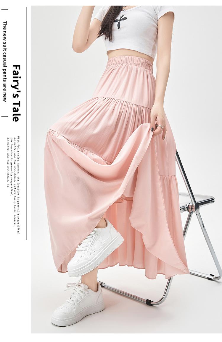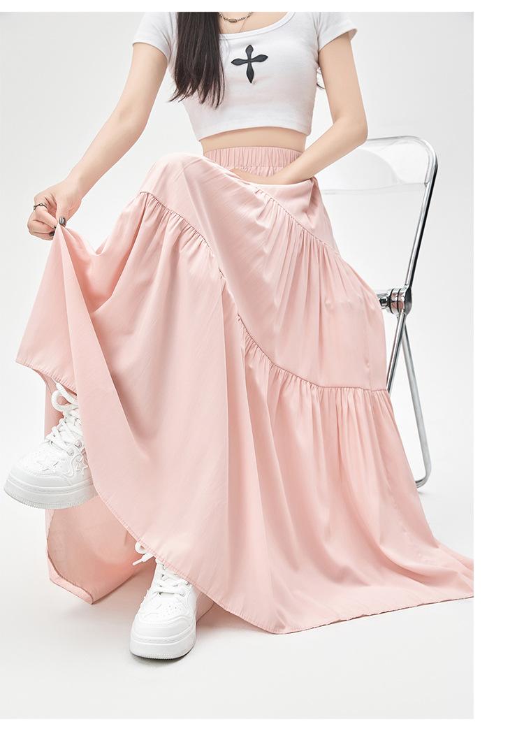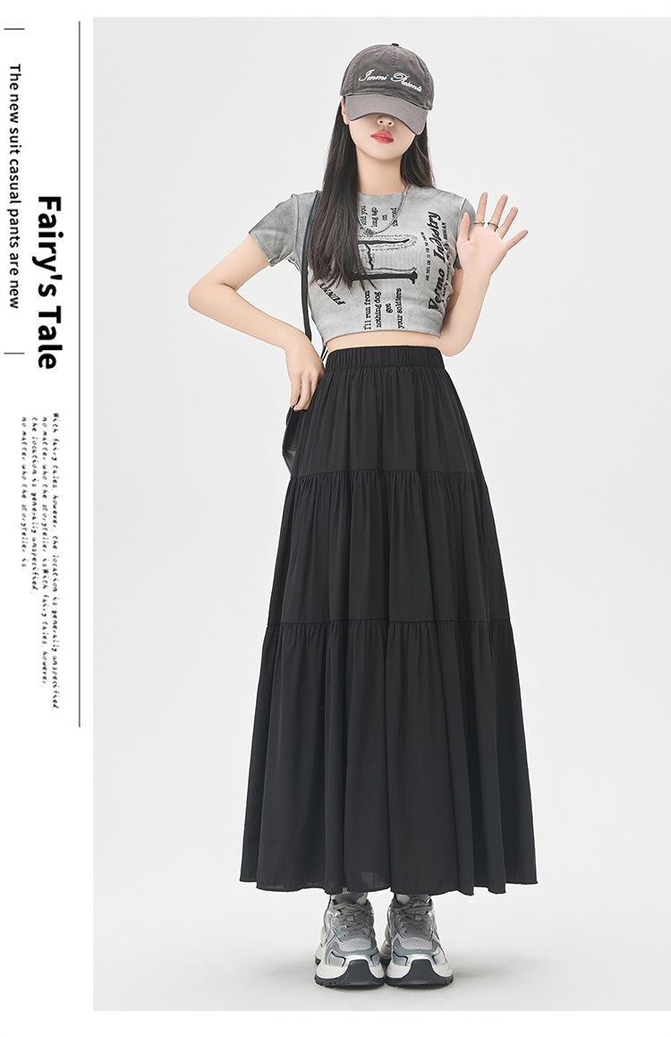 Falda con costura francesa para mujer, primavera y verano 2024, nueva falda acampanada de cintura alta, versátil y adelgazante, vestido informal de corte A.