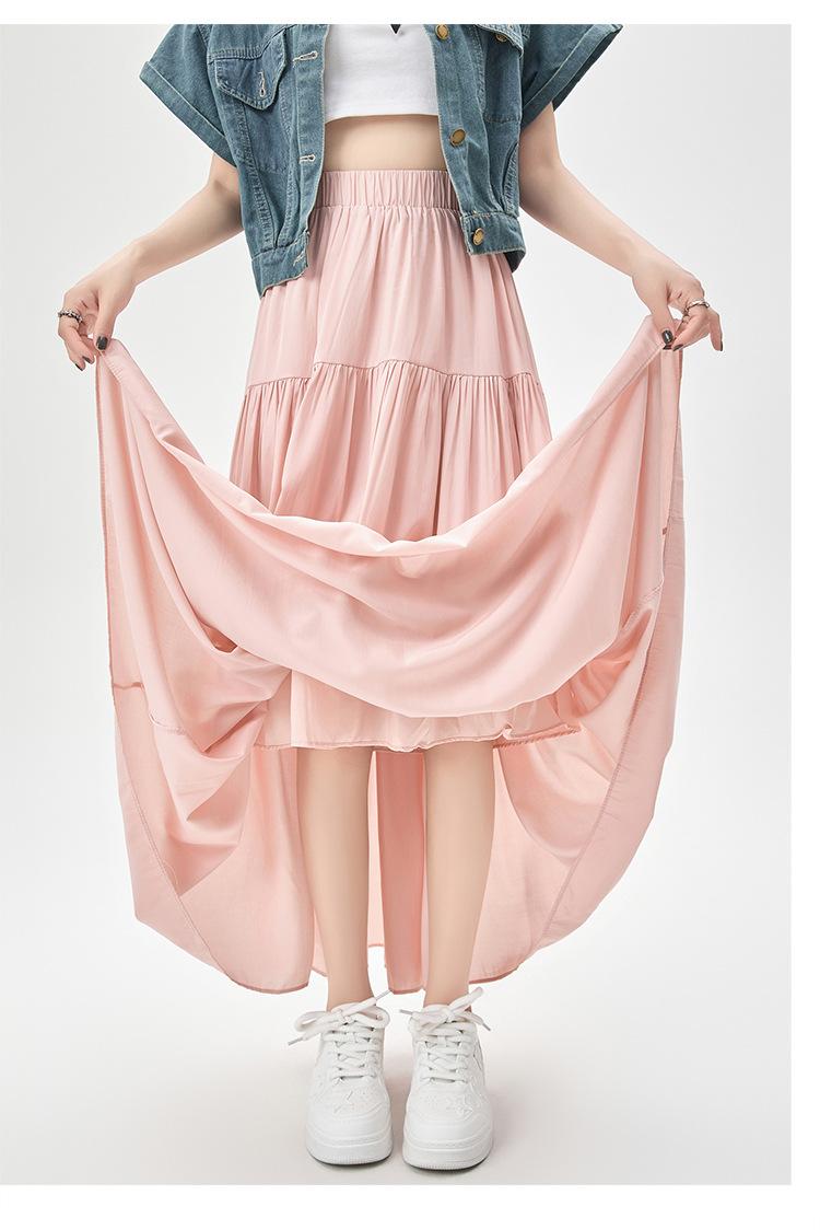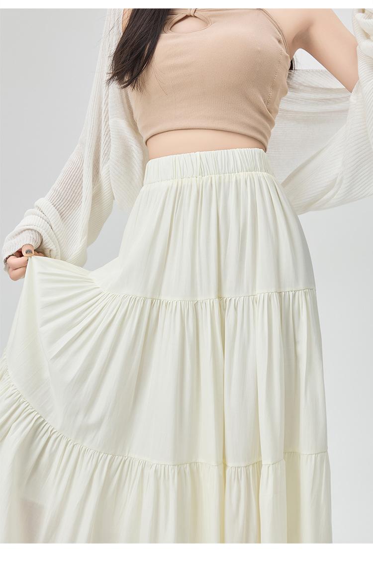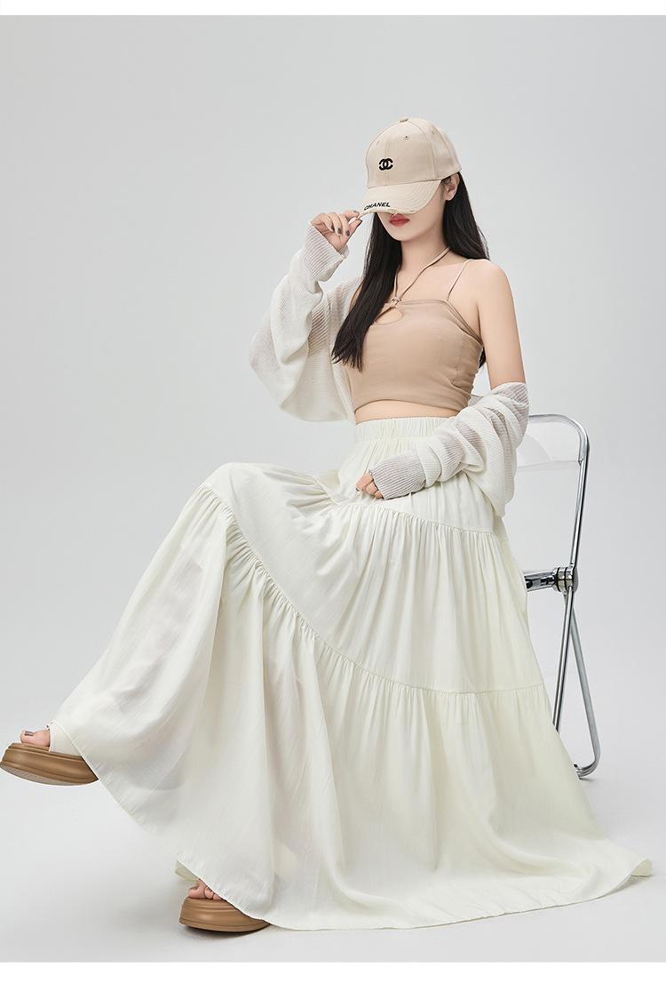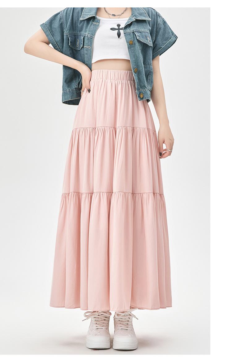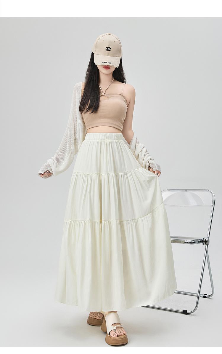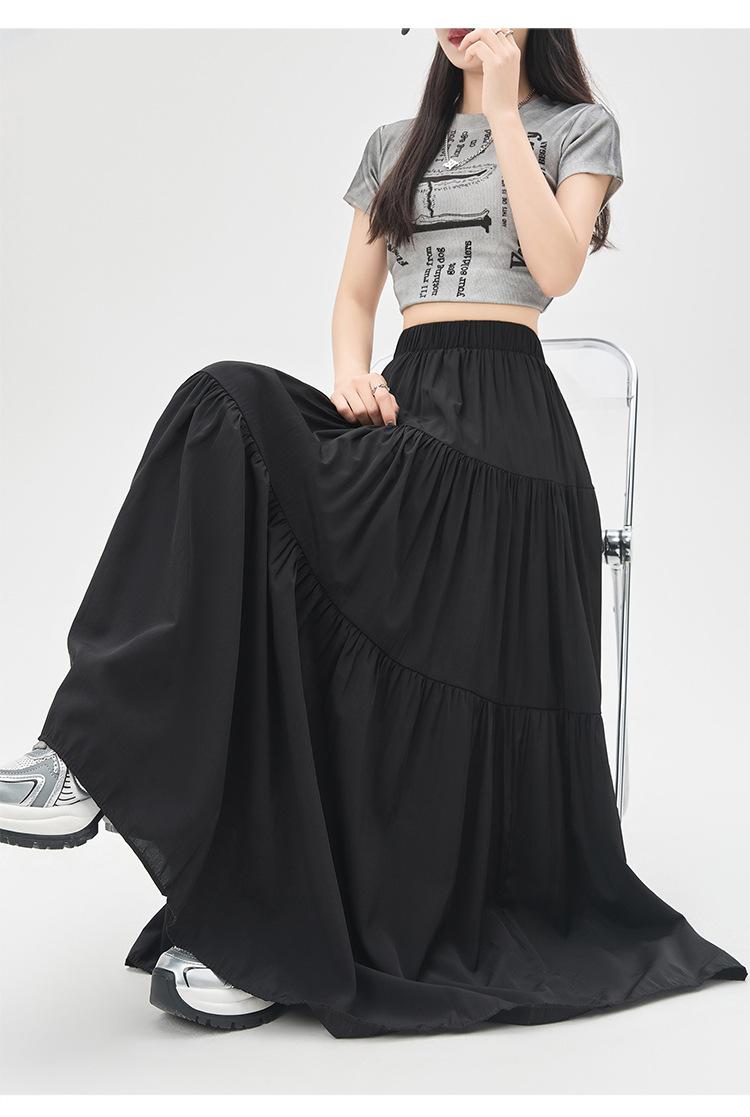 Falda con costura francesa para mujer, primavera y verano 2024, nueva falda acampanada de cintura alta, versátil y adelgazante, vestido informal de corte A.
