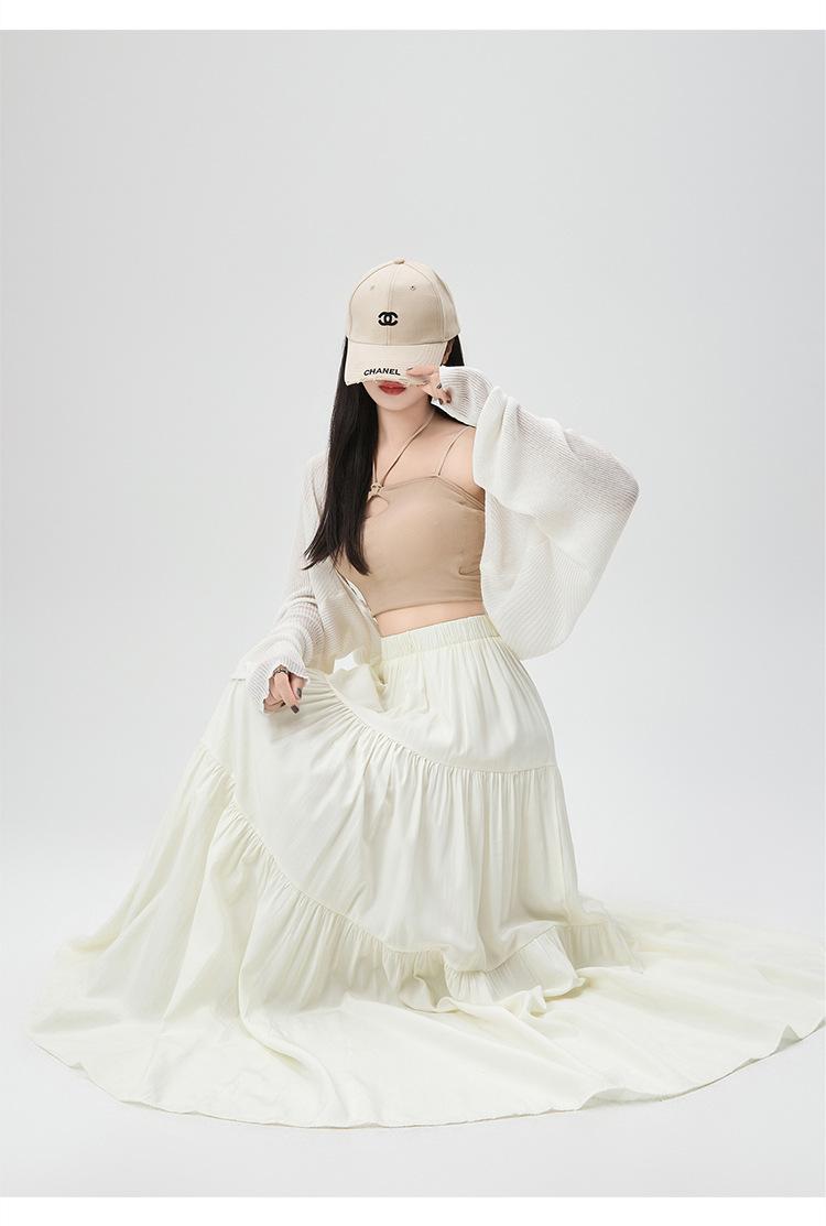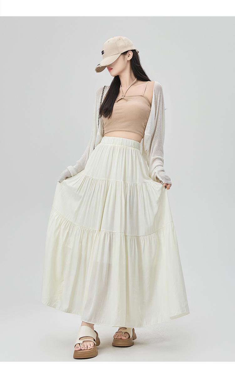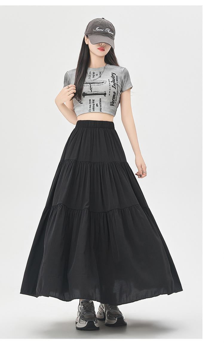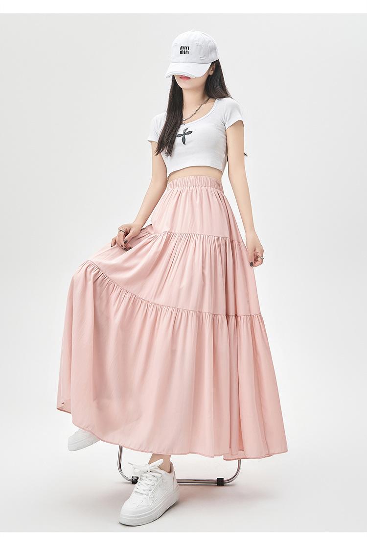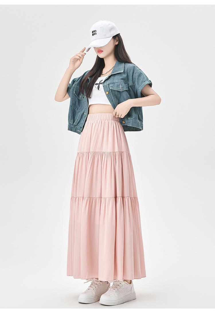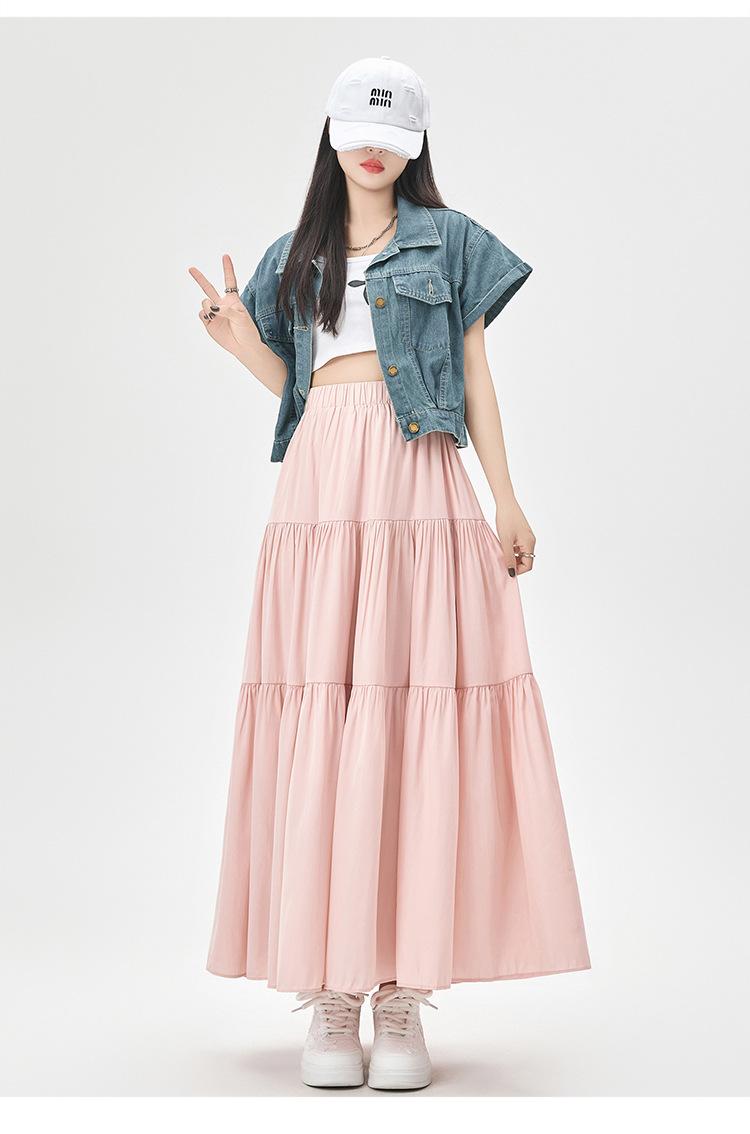 Falda con costura francesa para mujer, primavera y verano 2024, nueva falda acampanada de cintura alta, versátil y adelgazante, vestido informal de corte A.