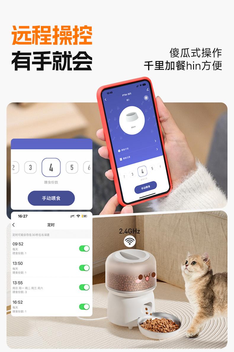 Alimentador automático para gatos con WiFi, alimentador automático de alimentos para perros y gatos, monitorización del tiempo, máquina de alimentación.