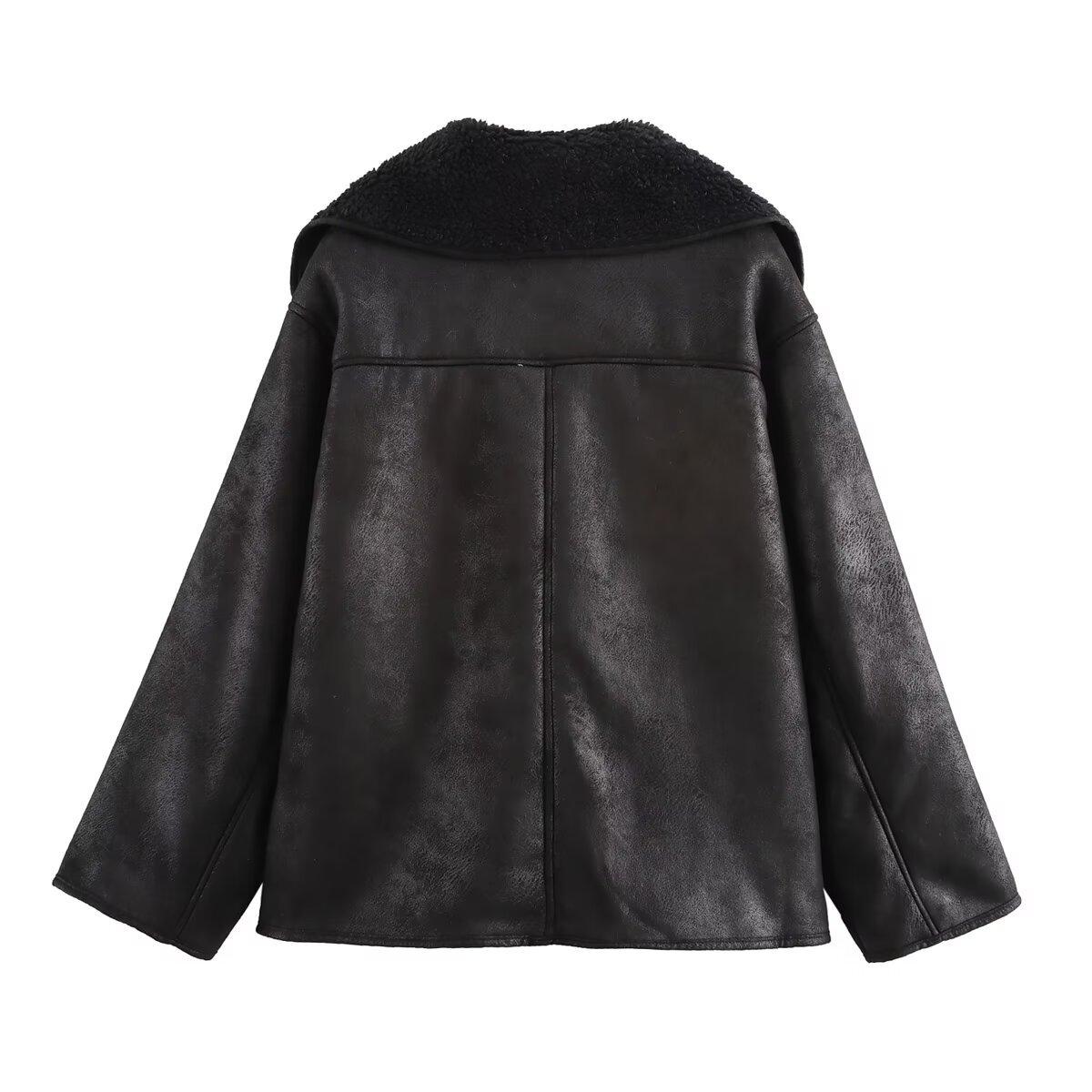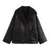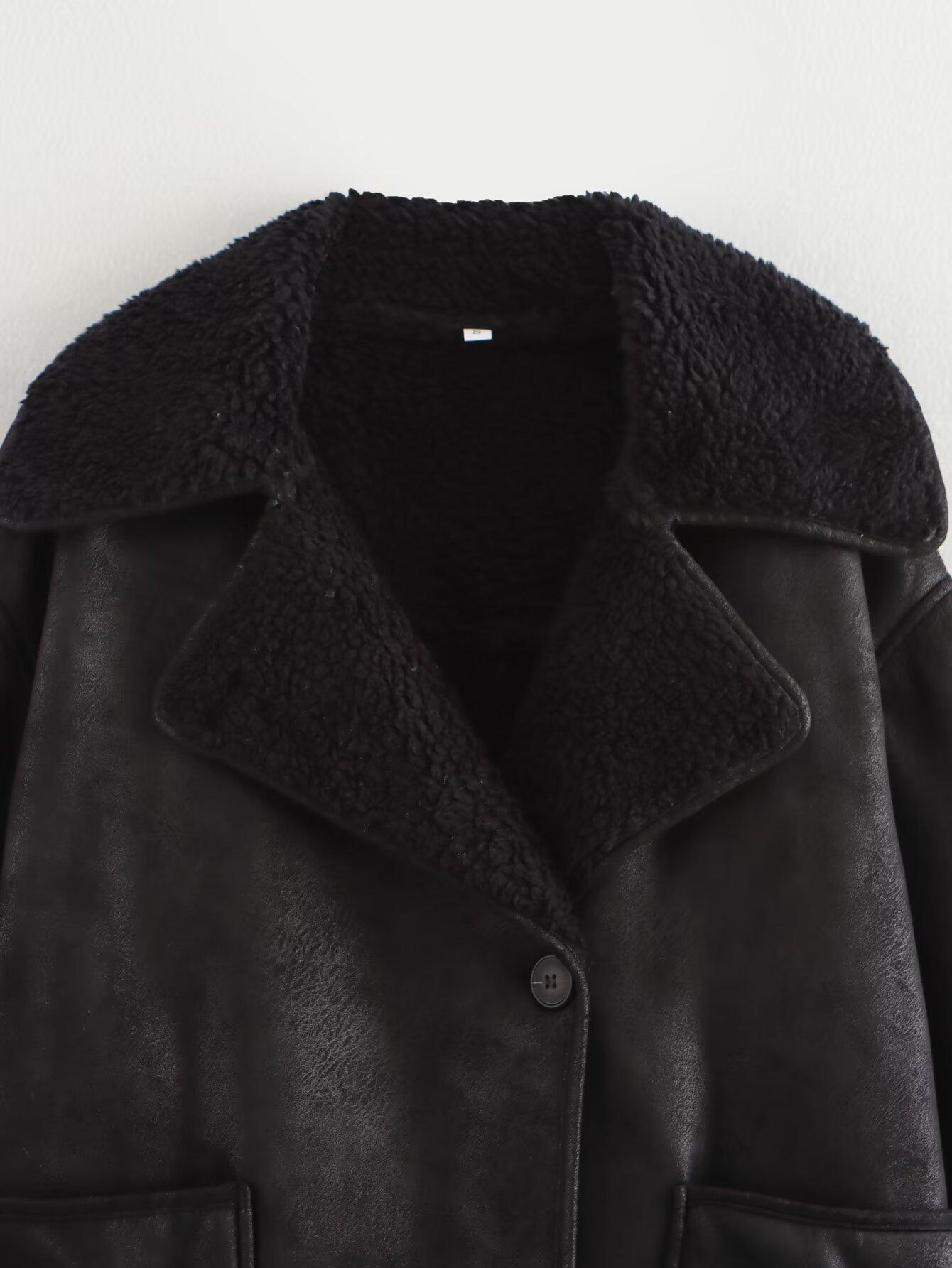 20241041MA3 Abrigo de piel de invierno de un solo pecho, abrigo largo europeo y americano, nuevo, solapa gruesa de tres colores