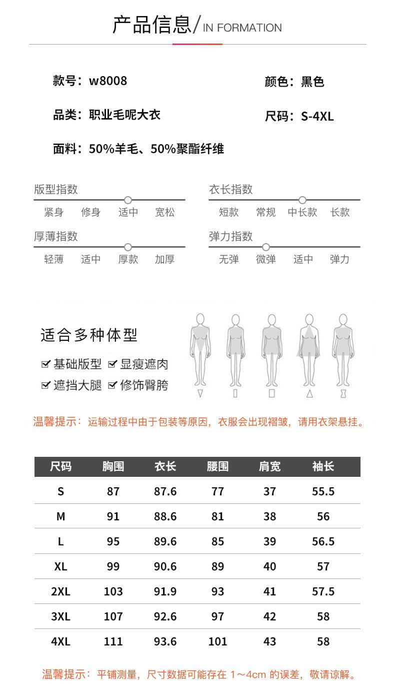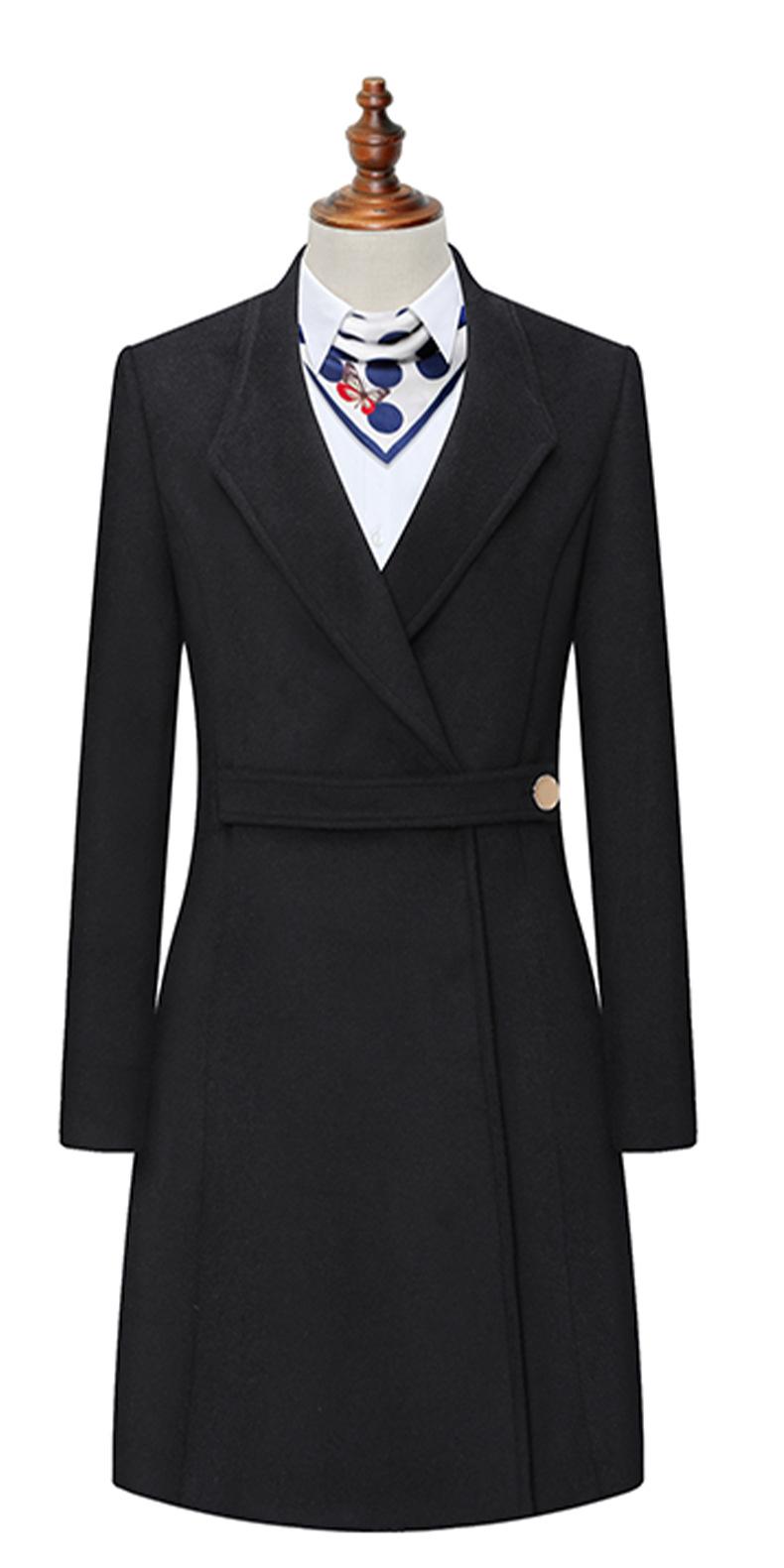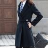 Abrigo de lana profesional coreano de invierno para mujer, abrigo de lana de moda para negocios, abrigo largo negro para mujer