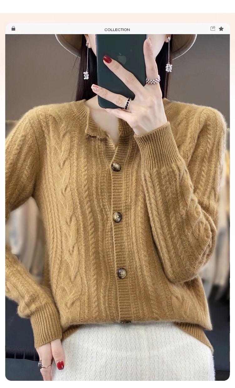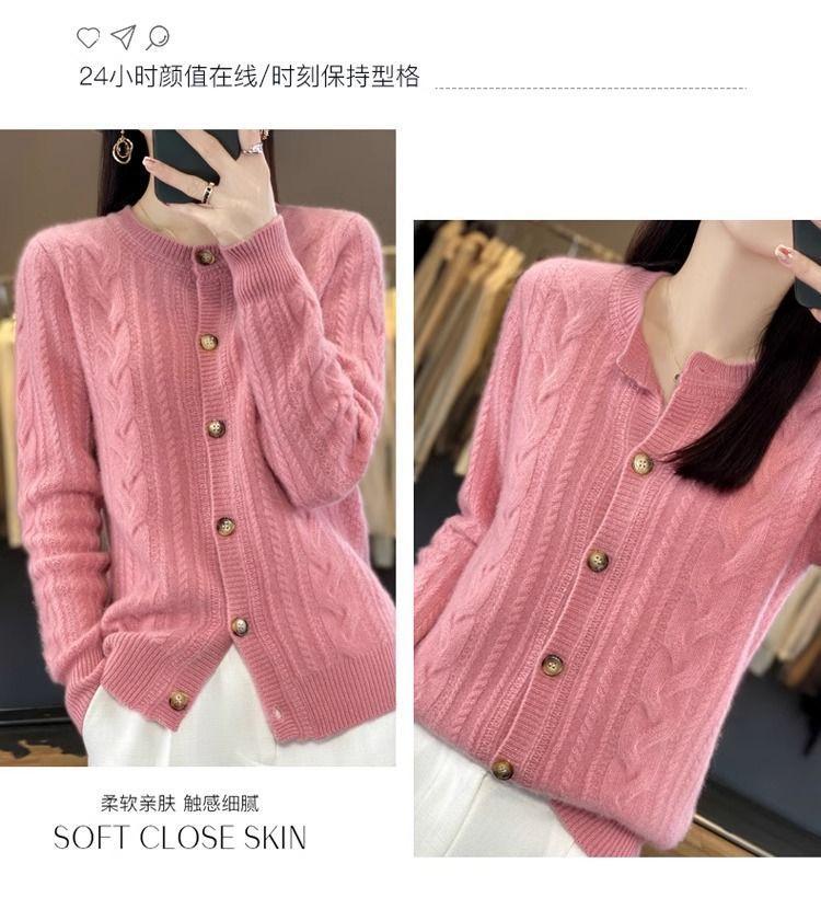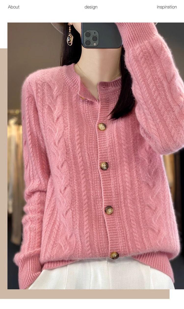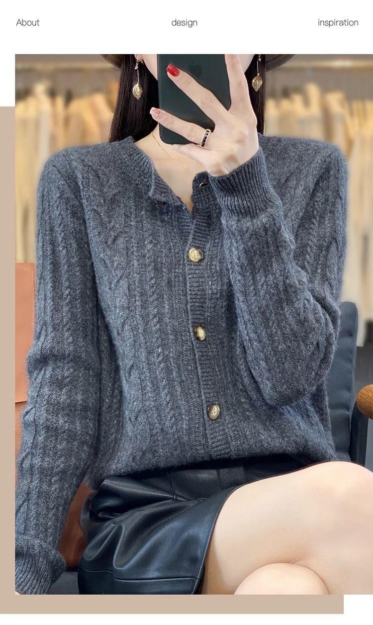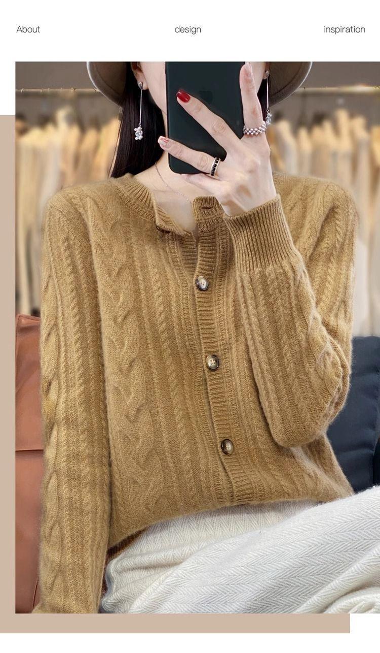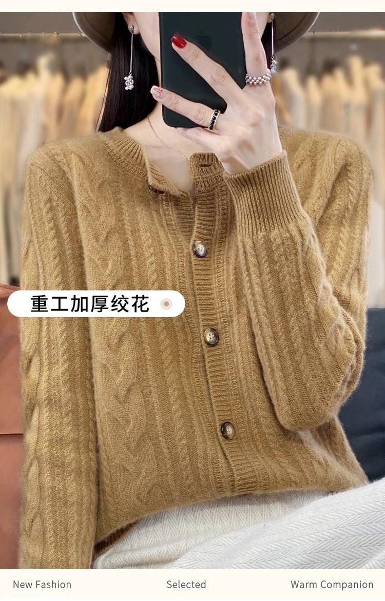 Cárdigan Nuevo Grueso para Primavera y Otoño 2024 para Mujer Cuello Redondo Holgado Color Sólido Estilo Coreano Combinable Suéter Tejido Trenzado Chaqueta