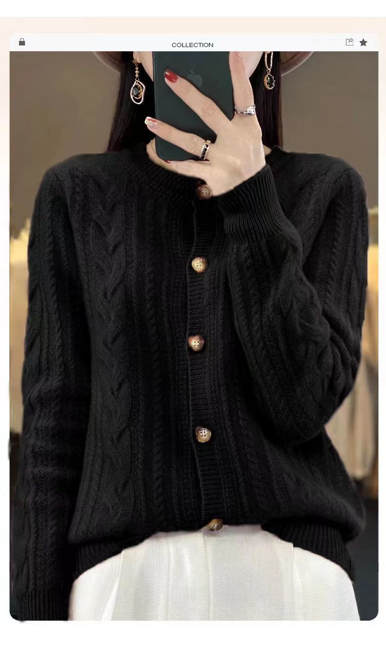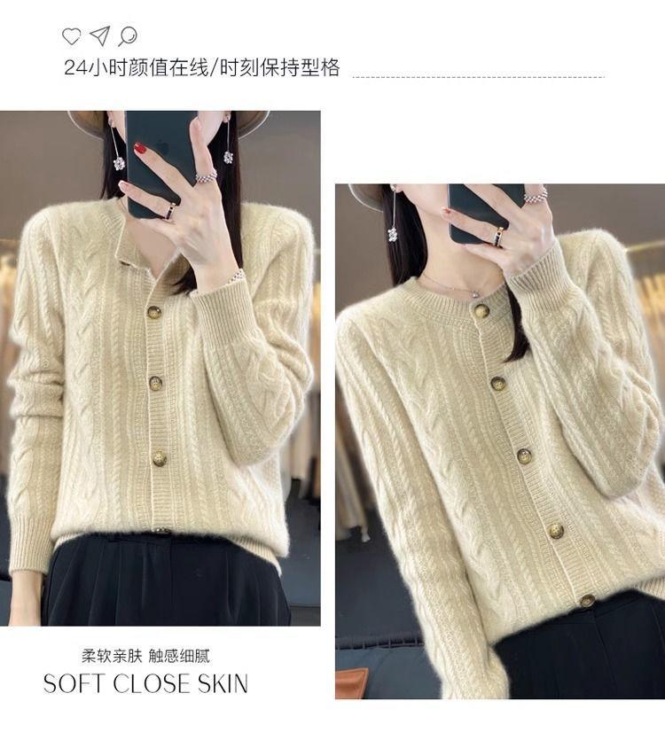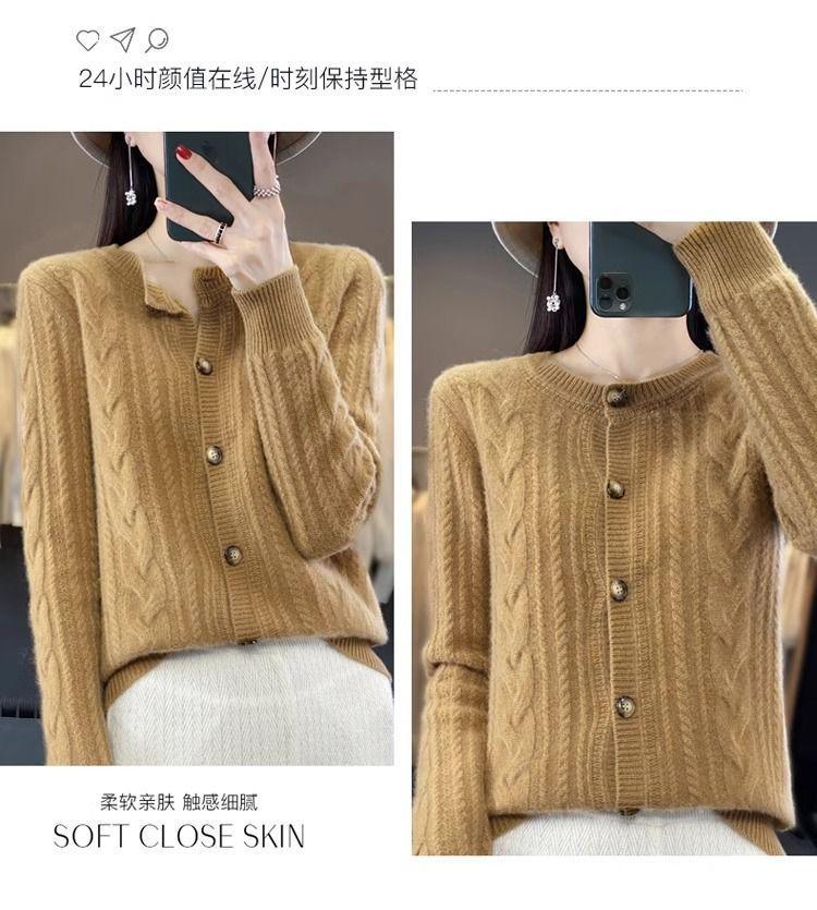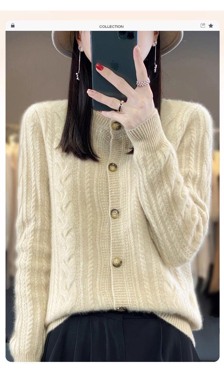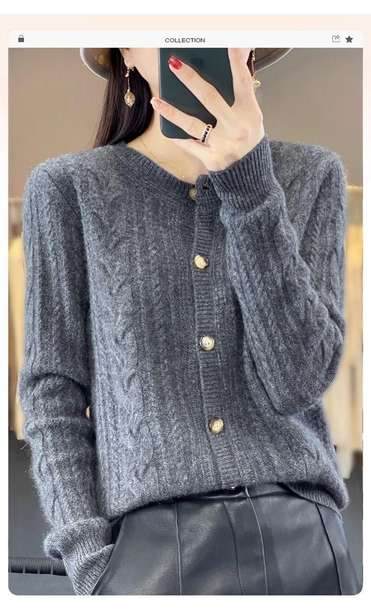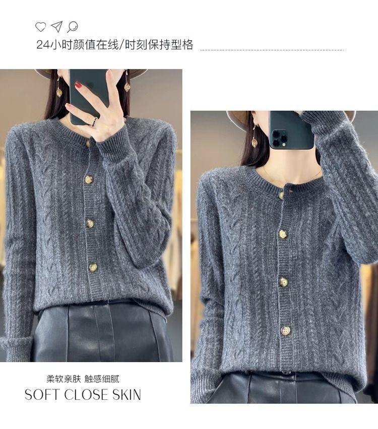 Cárdigan Nuevo Grueso para Primavera y Otoño 2024 para Mujer Cuello Redondo Holgado Color Sólido Estilo Coreano Combinable Suéter Tejido Trenzado Chaqueta