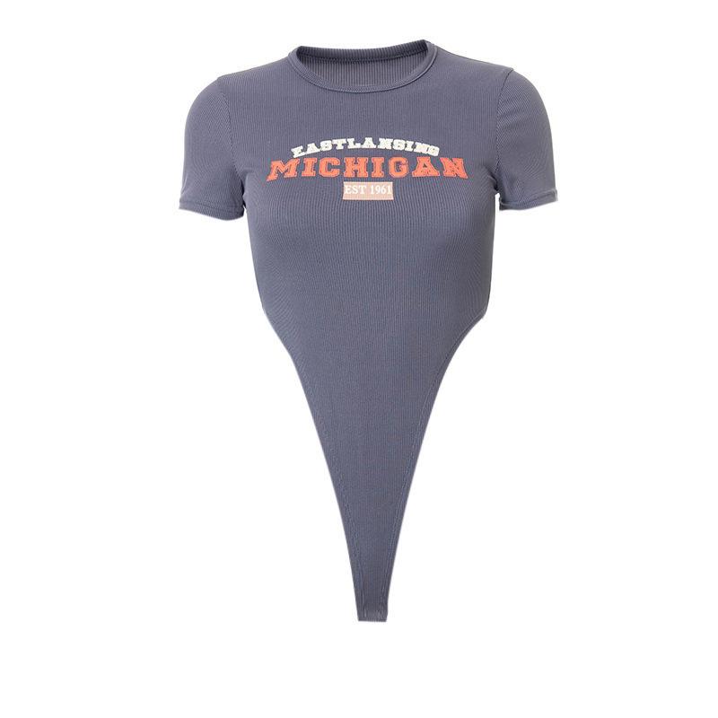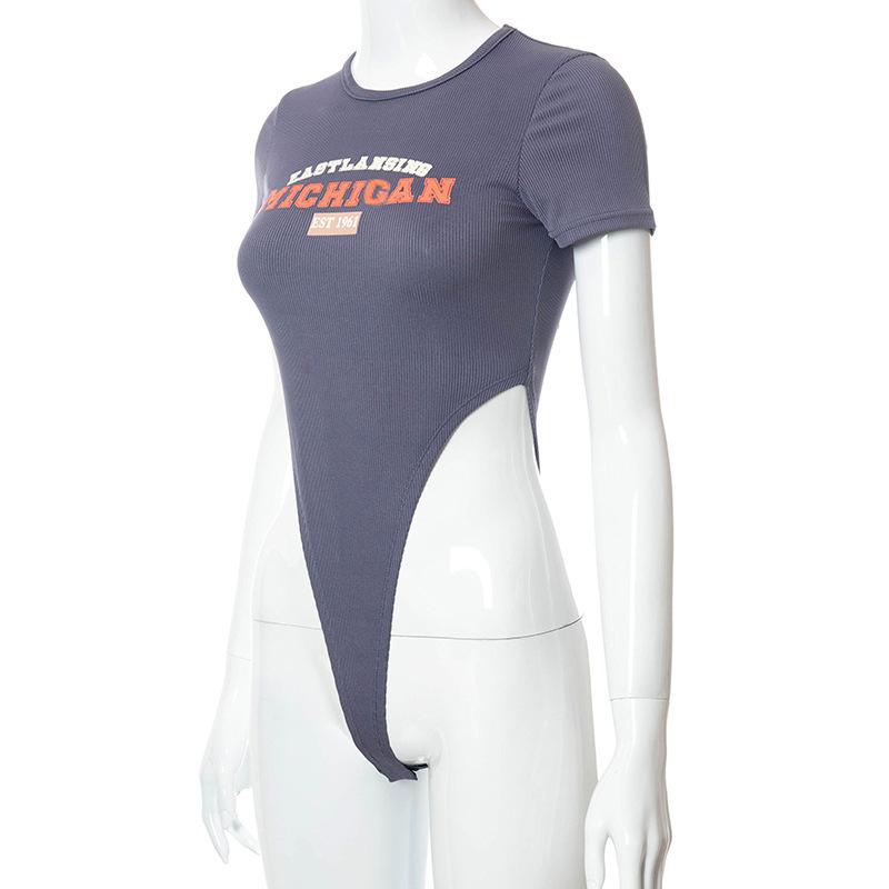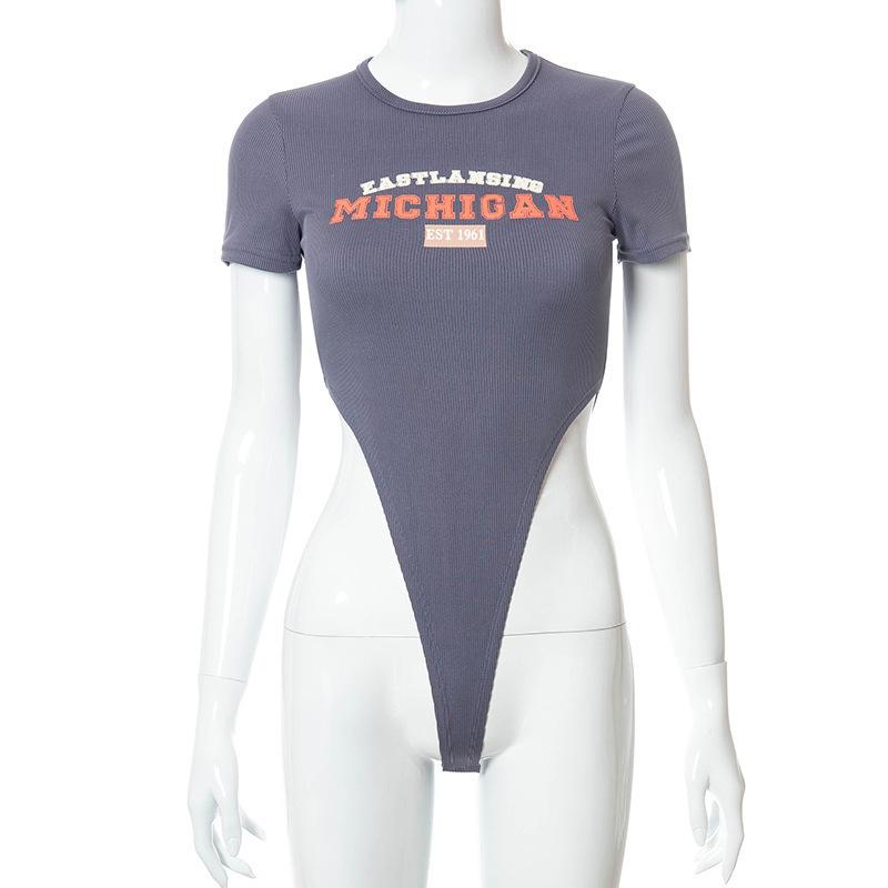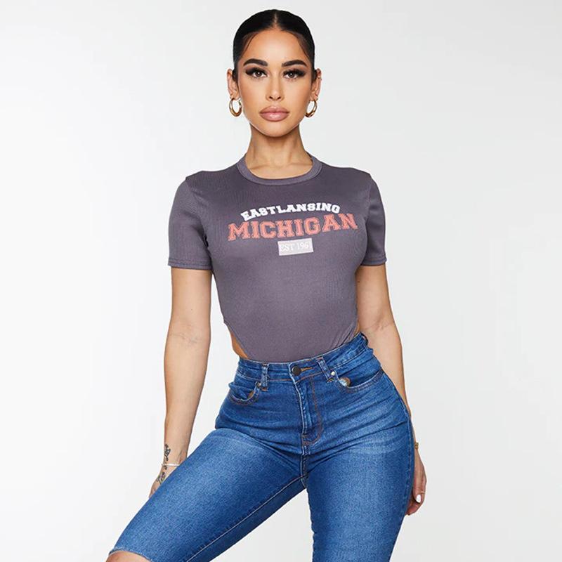 Y2K Transfronterizo Primavera y Verano Nuevo para Mujer Contraste Letras Estampadas Cuello Redondo Sexy Ajustado Jayshirt para Mujer