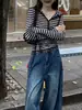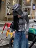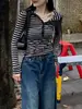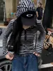 Camiseta de Manga Larga con Capucha a Rayas Americanas para Mujer Otoño 2025 Diseño Slim Fit Top Básico