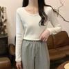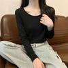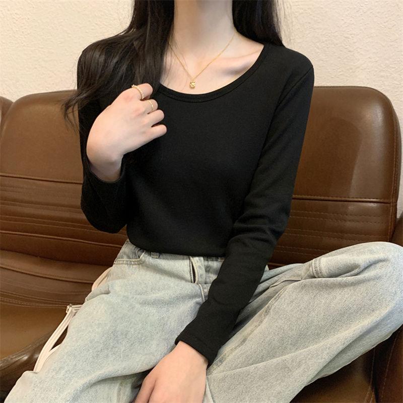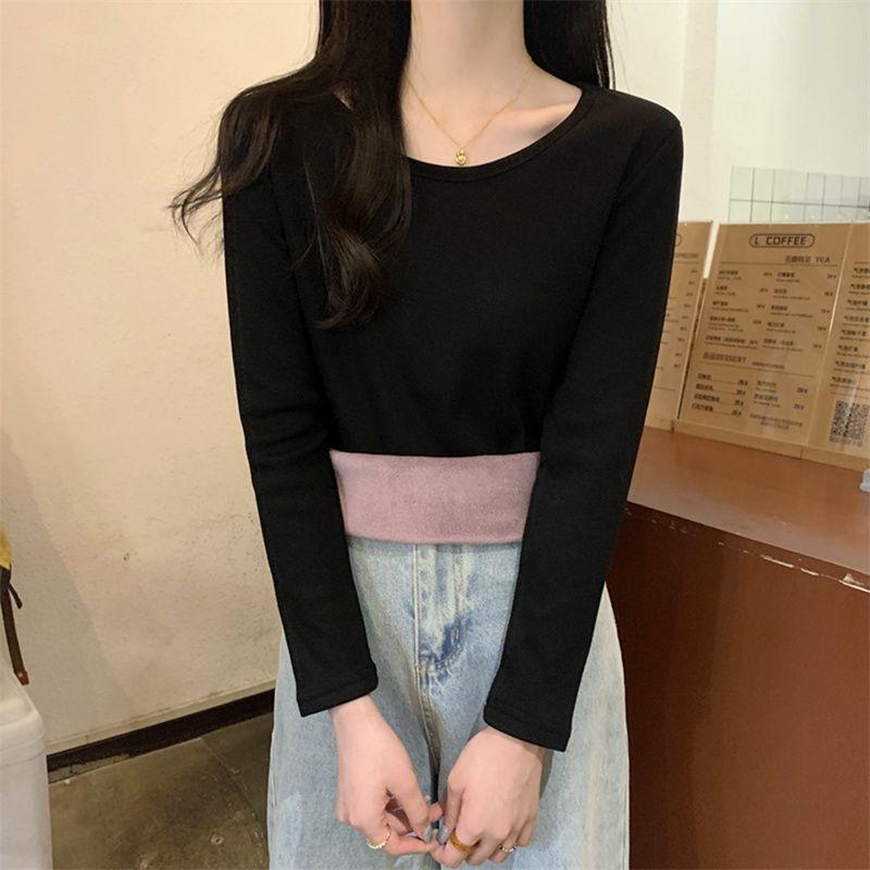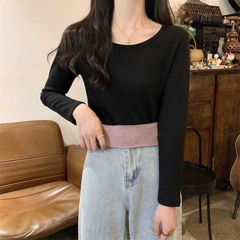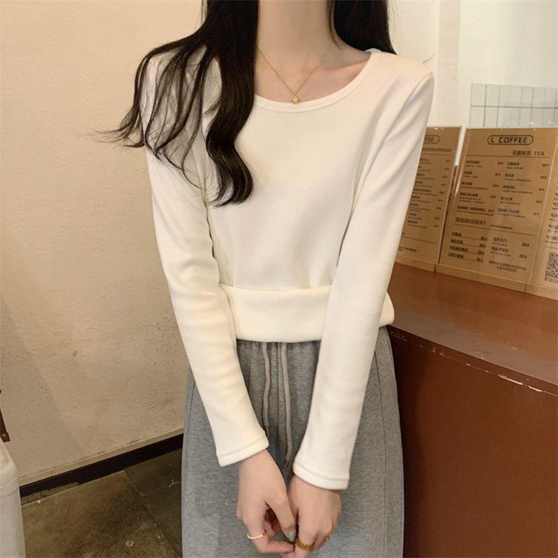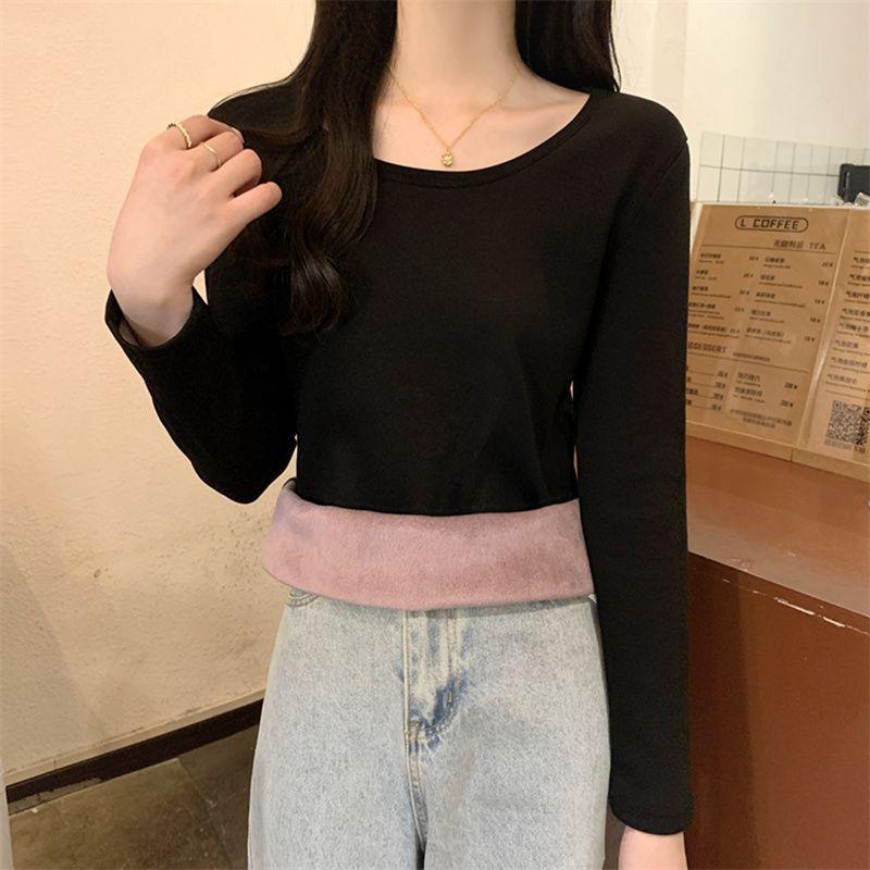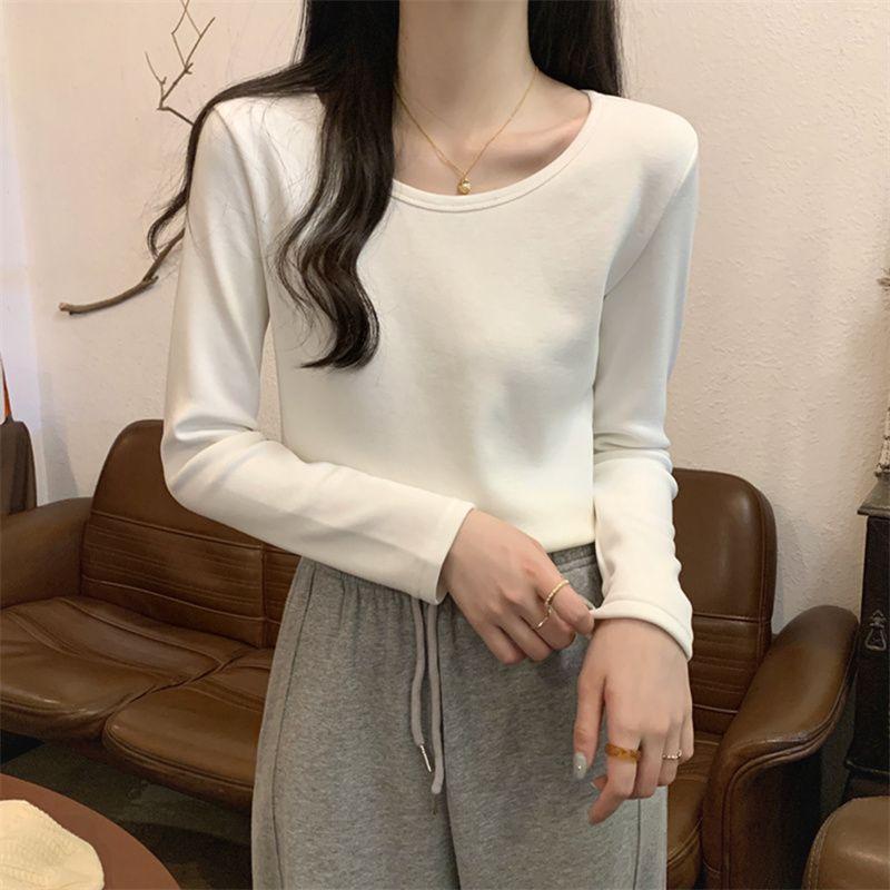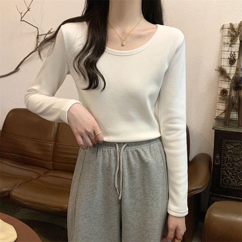 Otoño e Invierno básico camiseta de manga larga gruesa con forro polar para mujer color sólido simple top camiseta interior 2024 Nuevo
