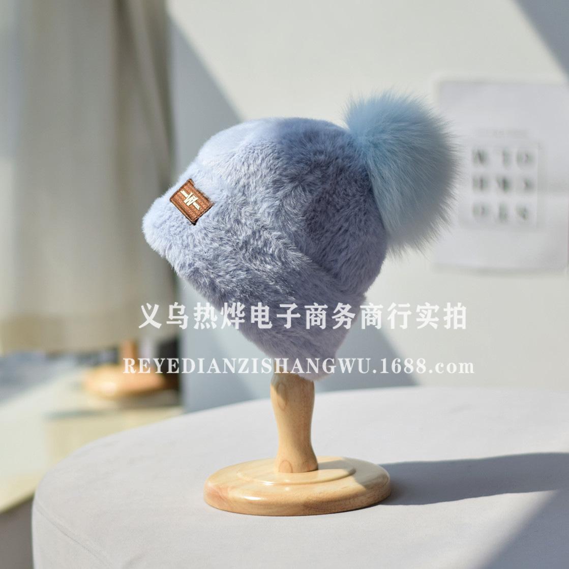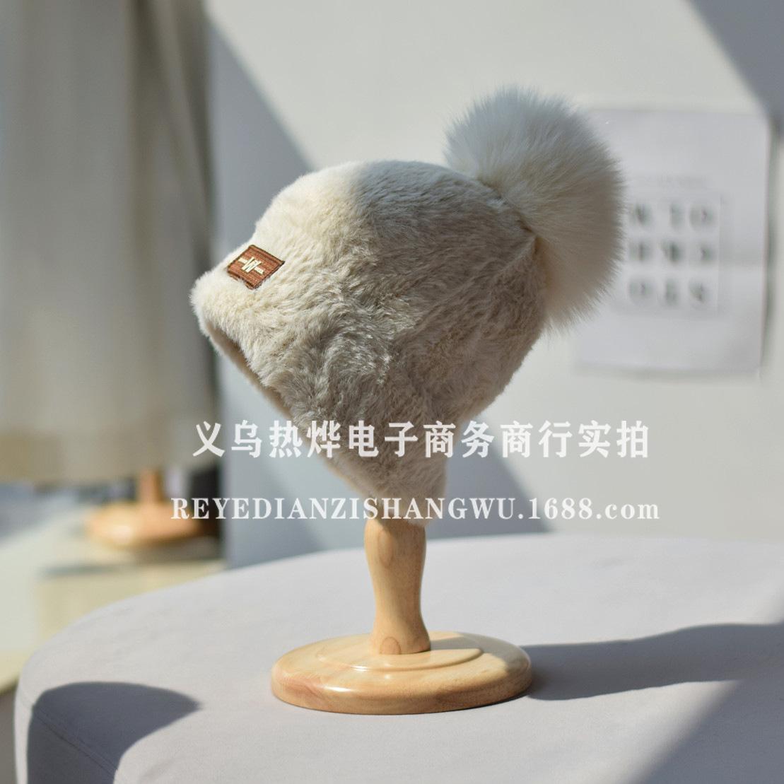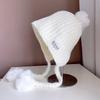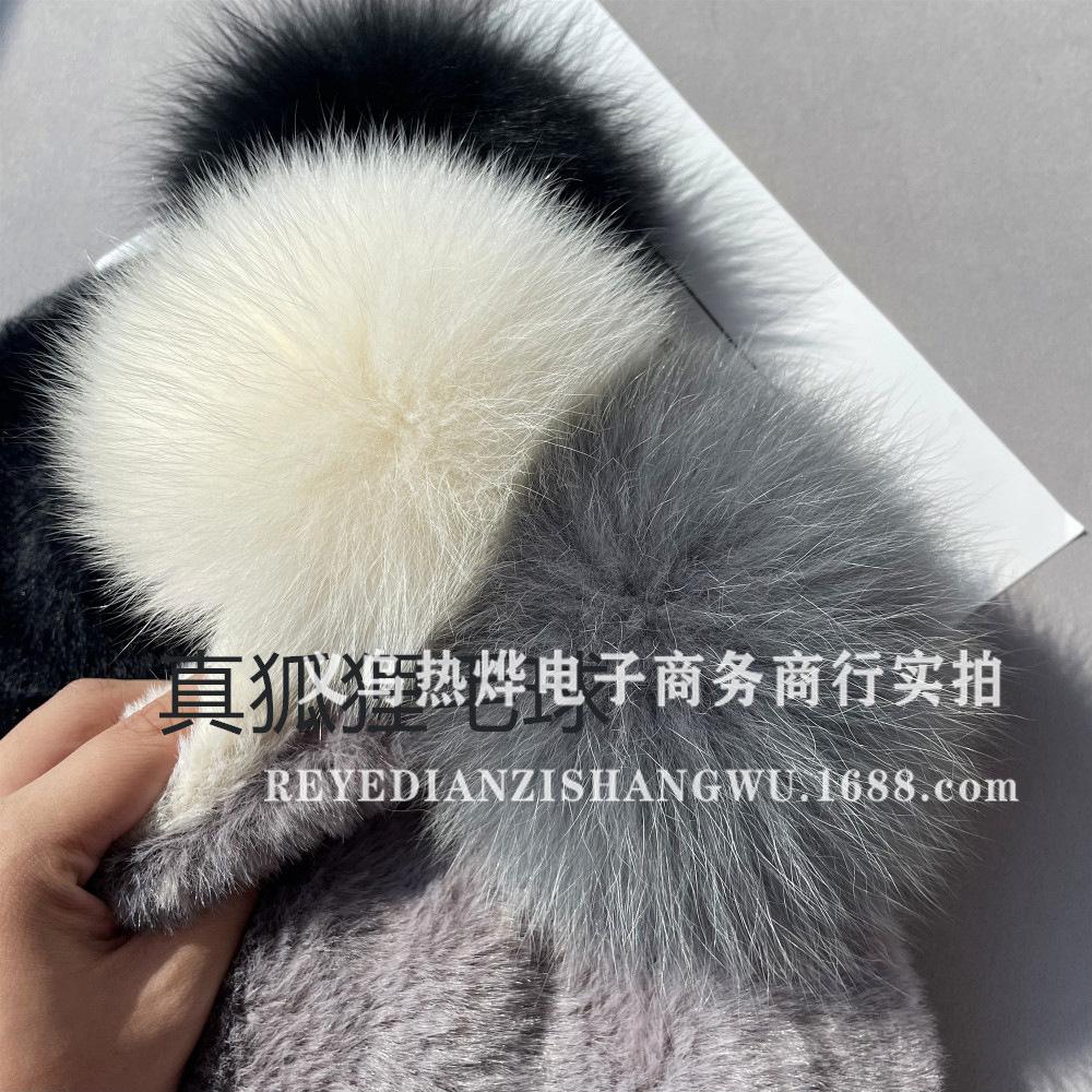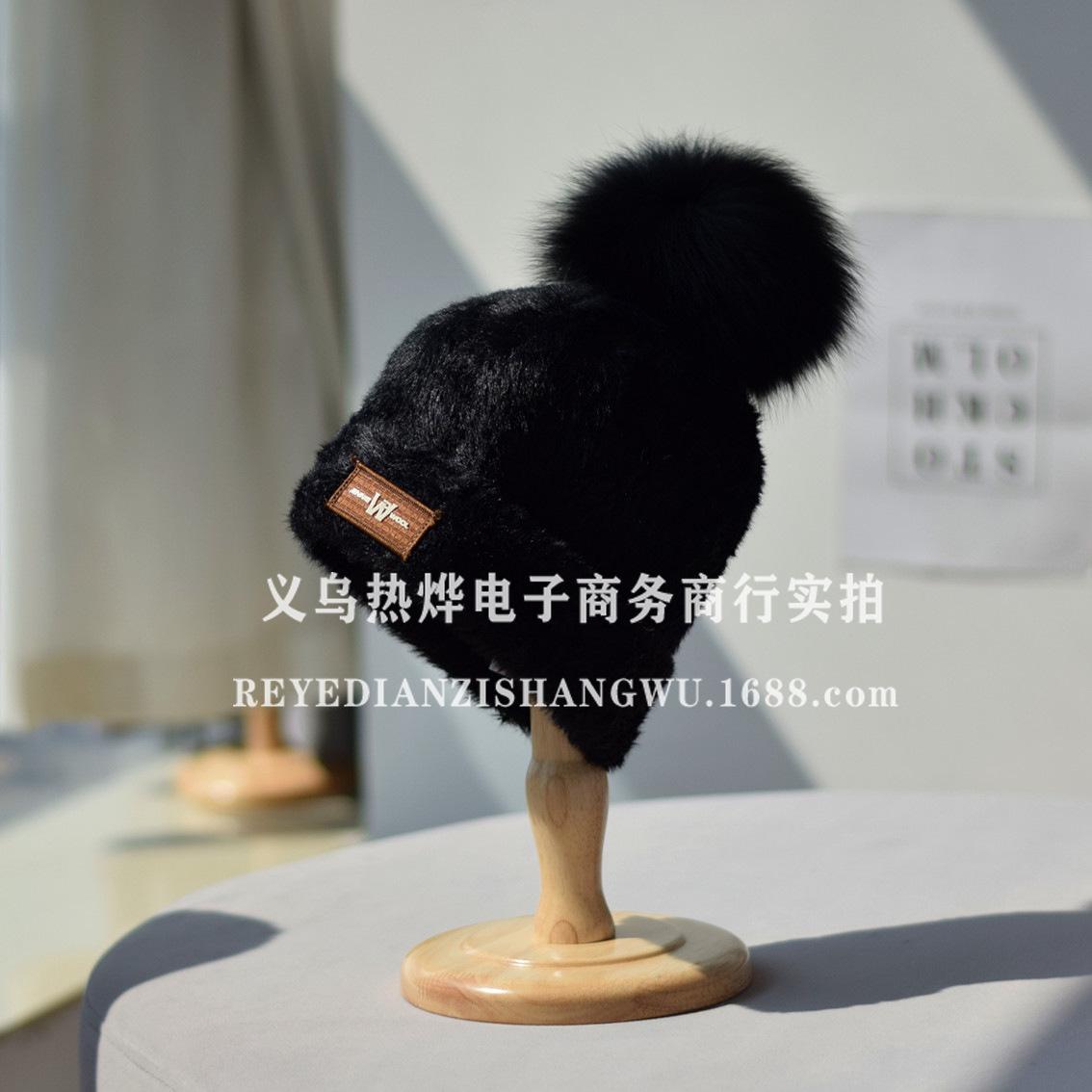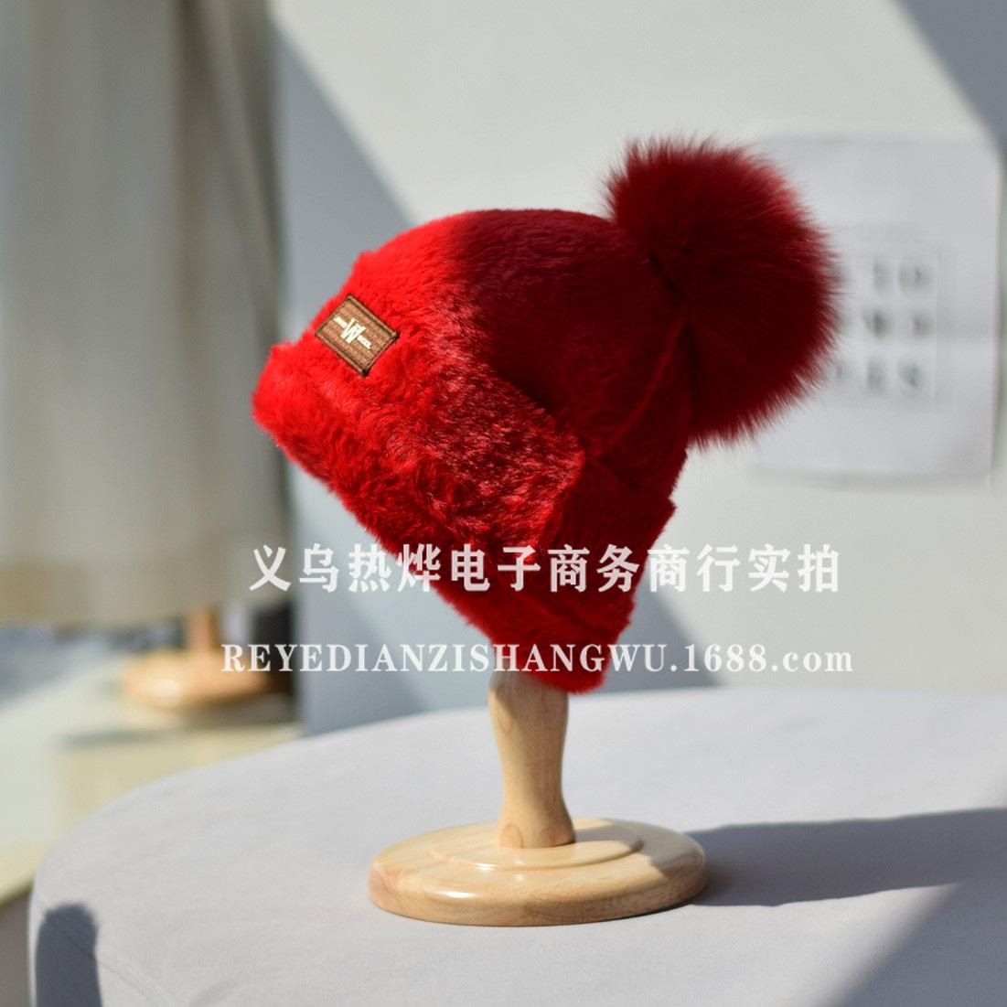 Gorro de punto rizado japonés para otoño e invierno, gorro de bola de pelo de zorro para niños, gorro de lana a juego, gorro de cabeza grande para el frío.
