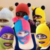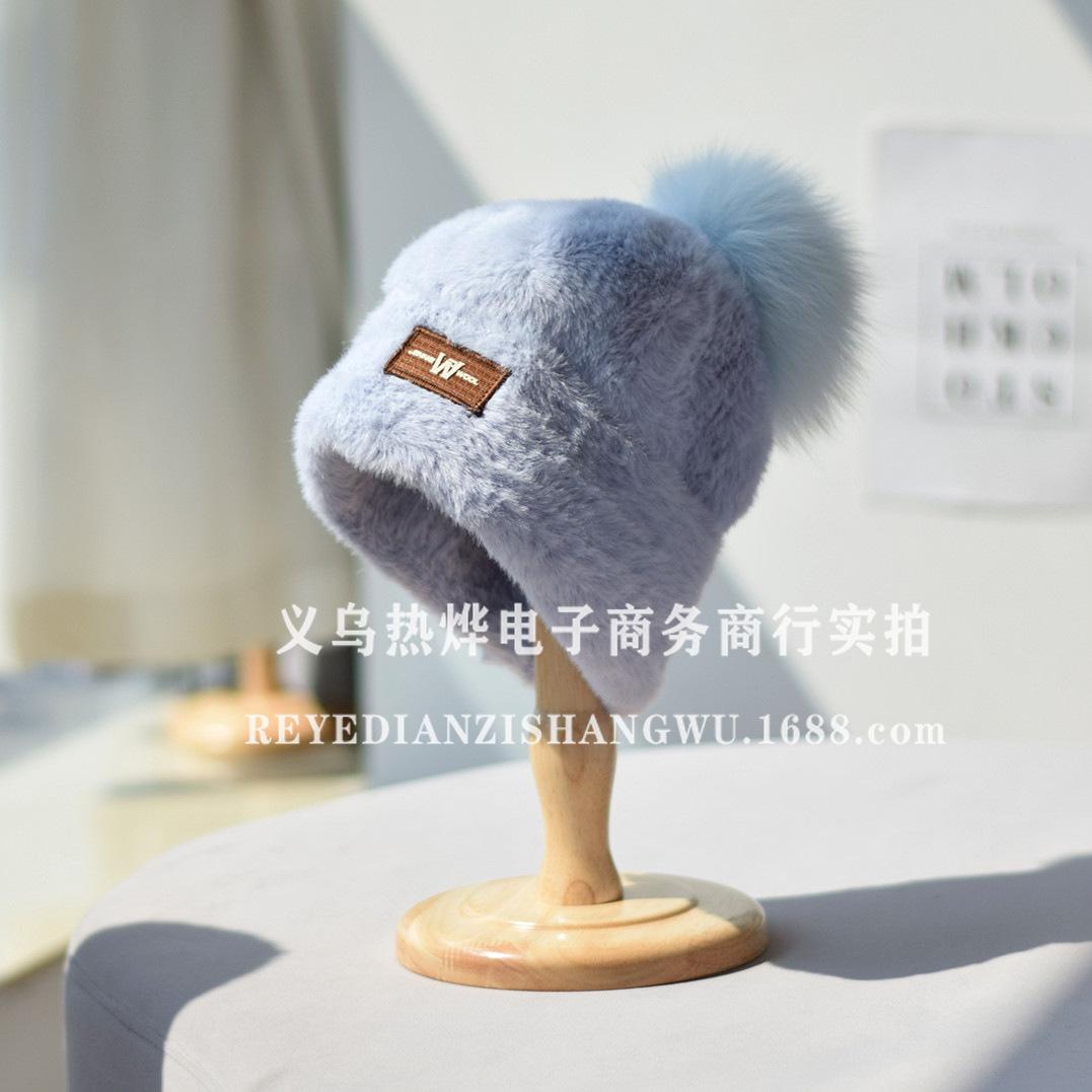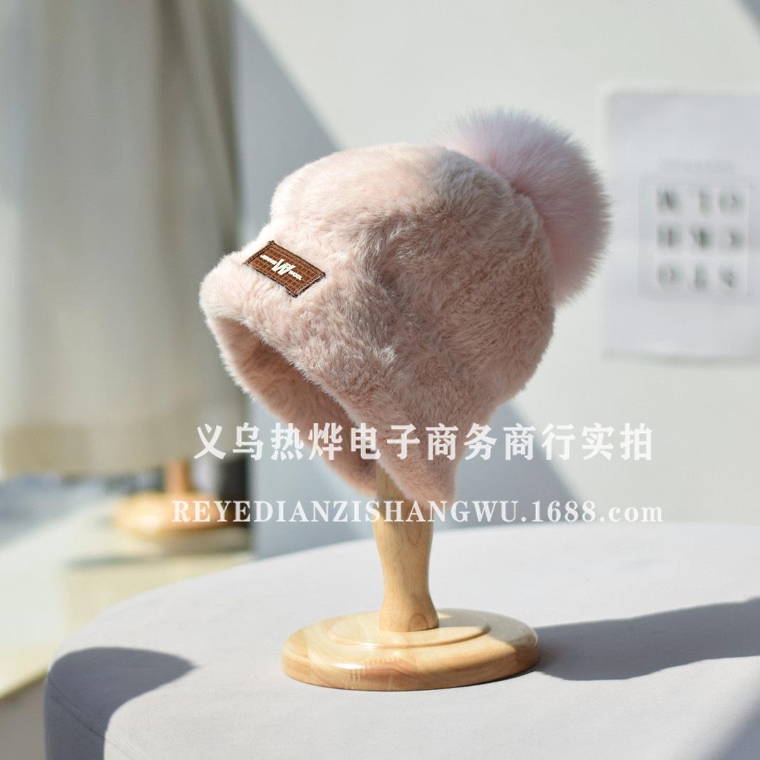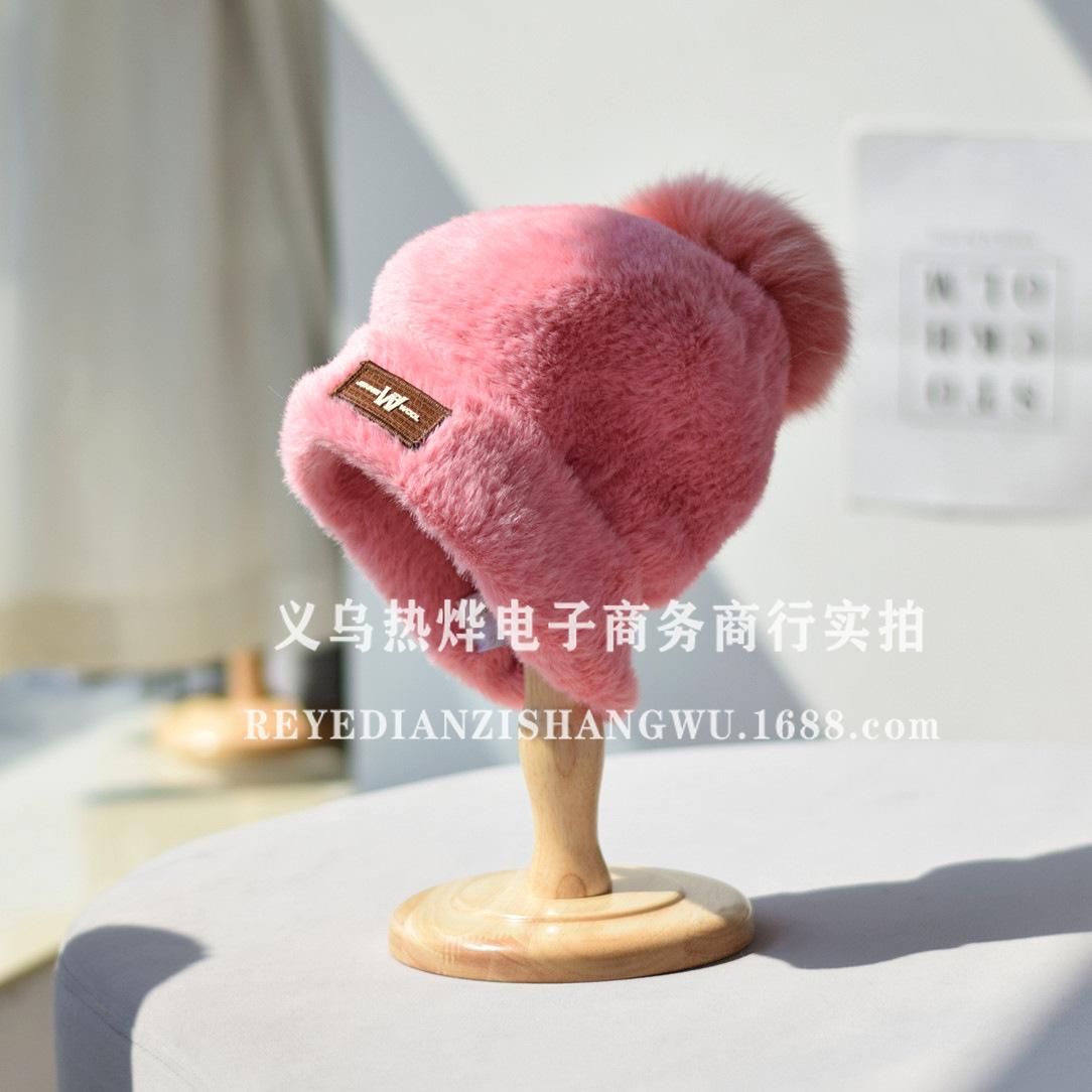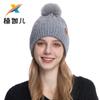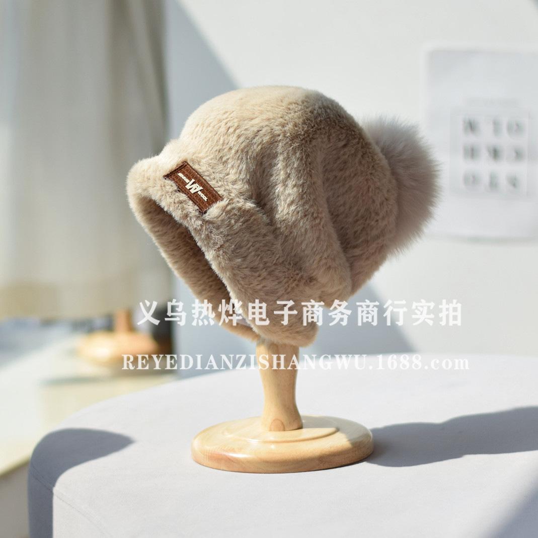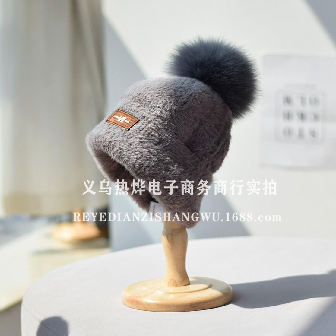 Gorro de punto rizado japonés para otoño e invierno, gorro de bola de pelo de zorro para niños, gorro de lana a juego, gorro de cabeza grande para el frío.