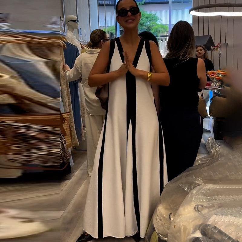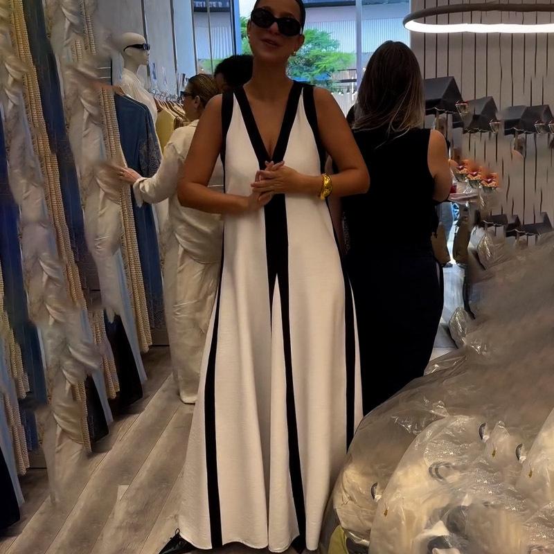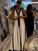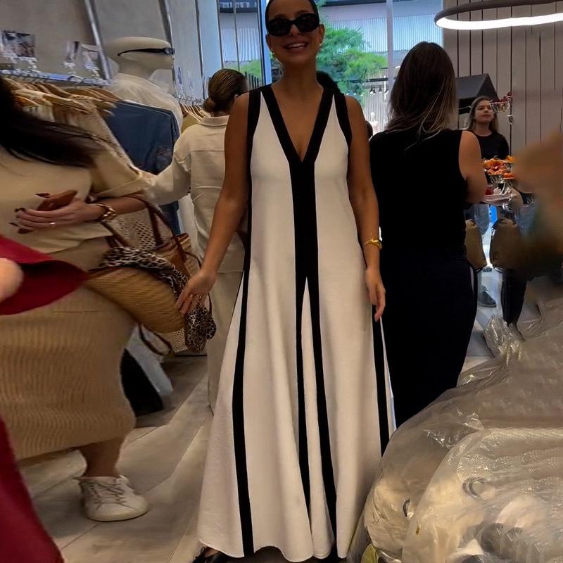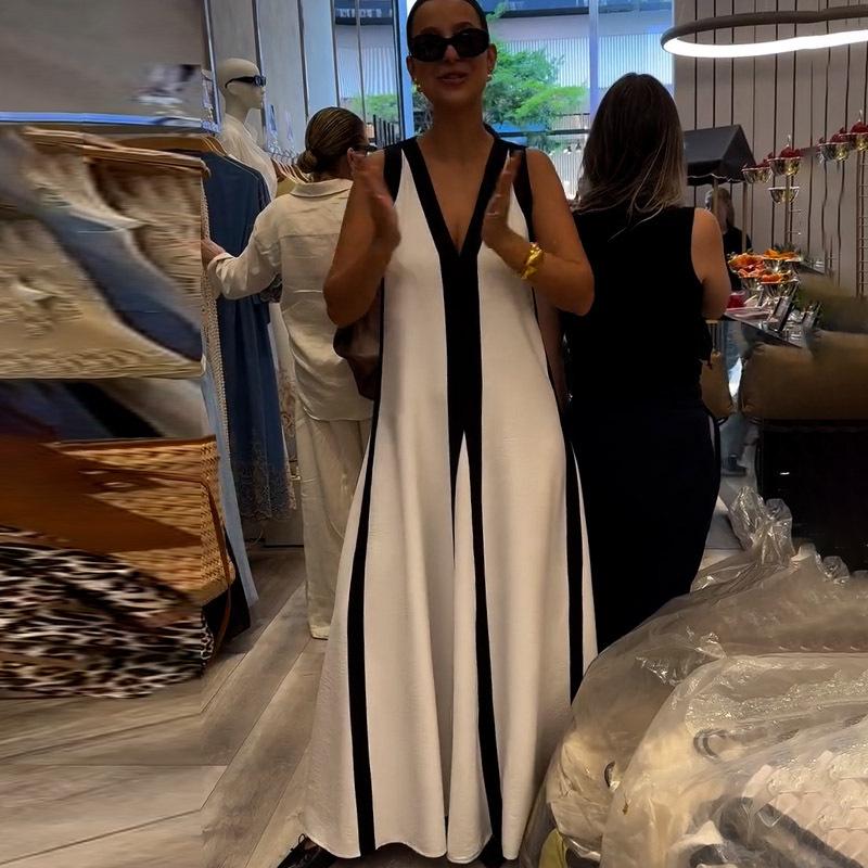 Primavera 2025 Nuevo vestido casual sexy de cintura alta con escote en V y contraste de doble cara para mujer de Amazon, estilo europeo y americano