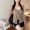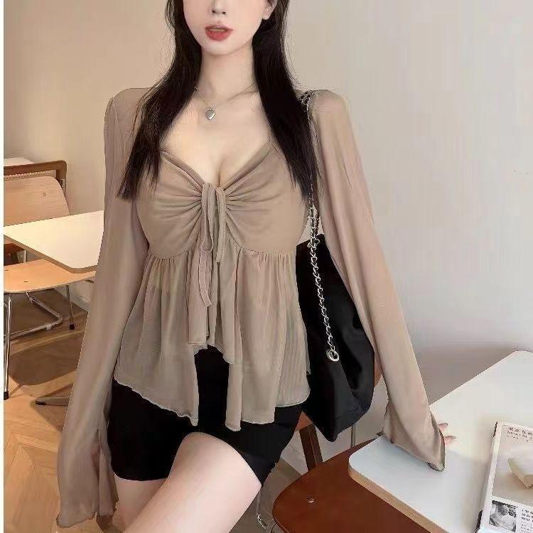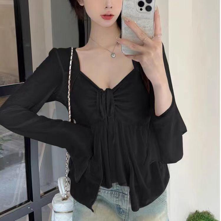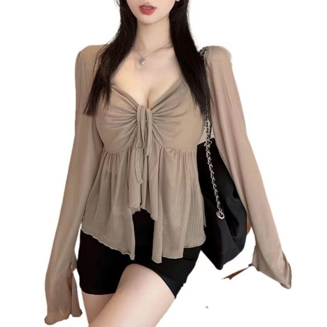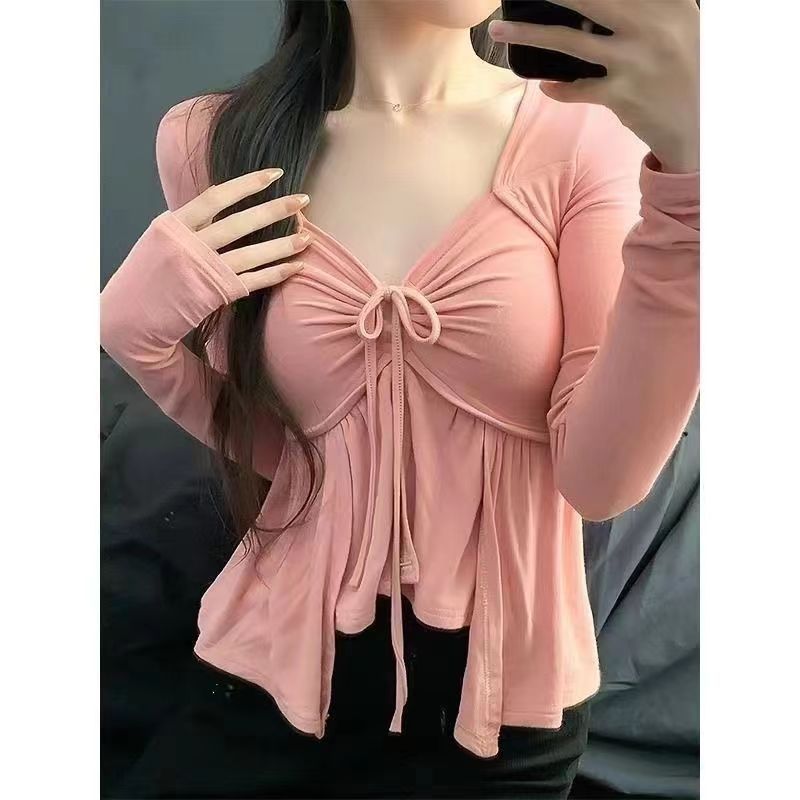 Camisa Primavera y Otoño 2024 Estilo Deseo Puro Top talla grande Spice Girls chica gordita Corte Slim Manga Larga Gordita Irregular Ropa Francesa para Mujer