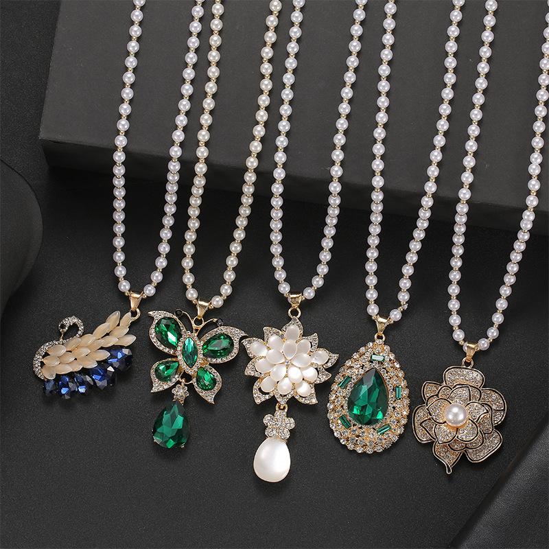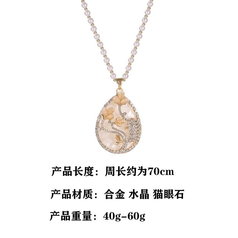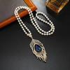 Collar Largo de Perlas Colgante de Cristal para Mujer, Colgante Versátil y de Alta Gama, Accesorios Simples y de Alta Gama para Cadena de Suéter