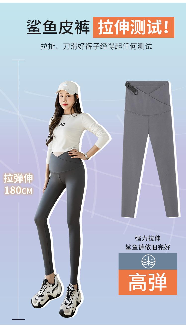 Leggings para Mujer Embarazada 2022 Outfit de Otoño Pantalones de Cuero de Tiburón Nueve Puntos Casual Yoga Adelgazantes Pantalones Barbie Cintura Baja Pantalones Abdominales